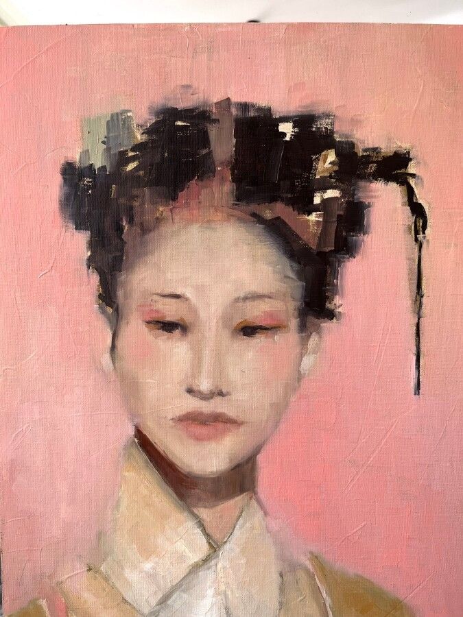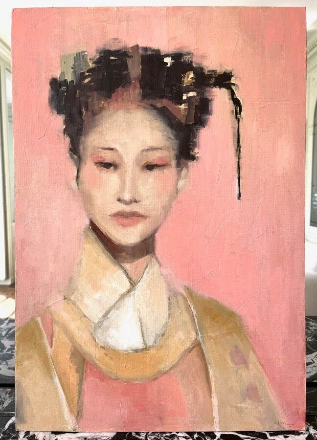 Dominique MESNAY (1957), "A l'intérieur" 2021, oil on canvas, signed lower right, countersigned, dated and titled on the back, 55 x 38 cm.
