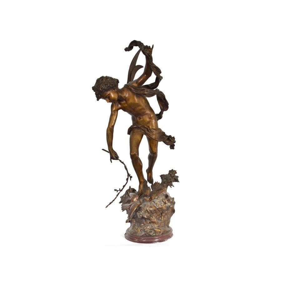 Luca MADRASSI (1848-1919), "Lutins des bois", bronze on marble base, signed, 103 x 38 cm (traces of wear on the bronze, chips on the base)