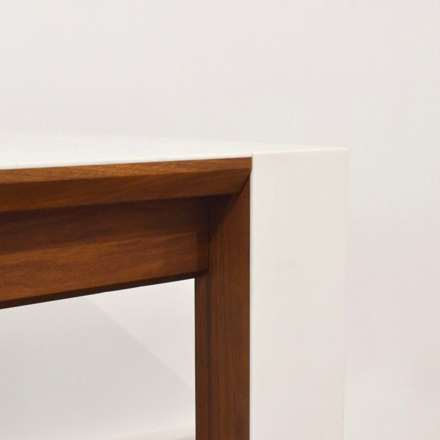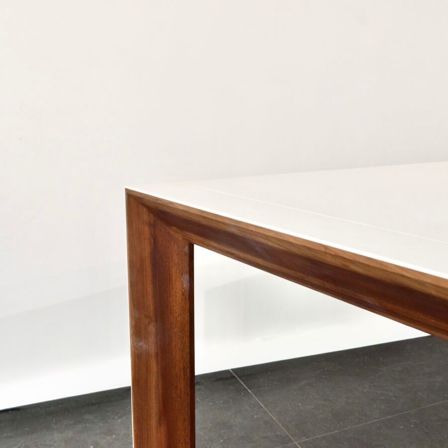 Søren NISSEN and Ebbe GEHL for Naver Collection: "GM 7700" single-extension table in corian and walnut, 174 x 220 x 92 cm.