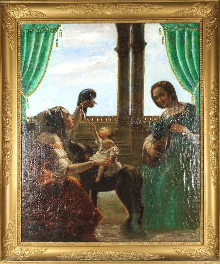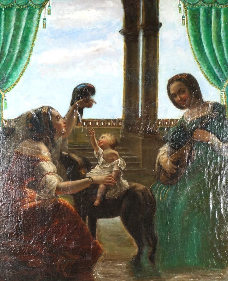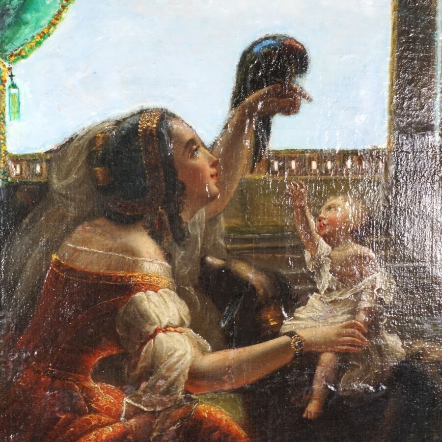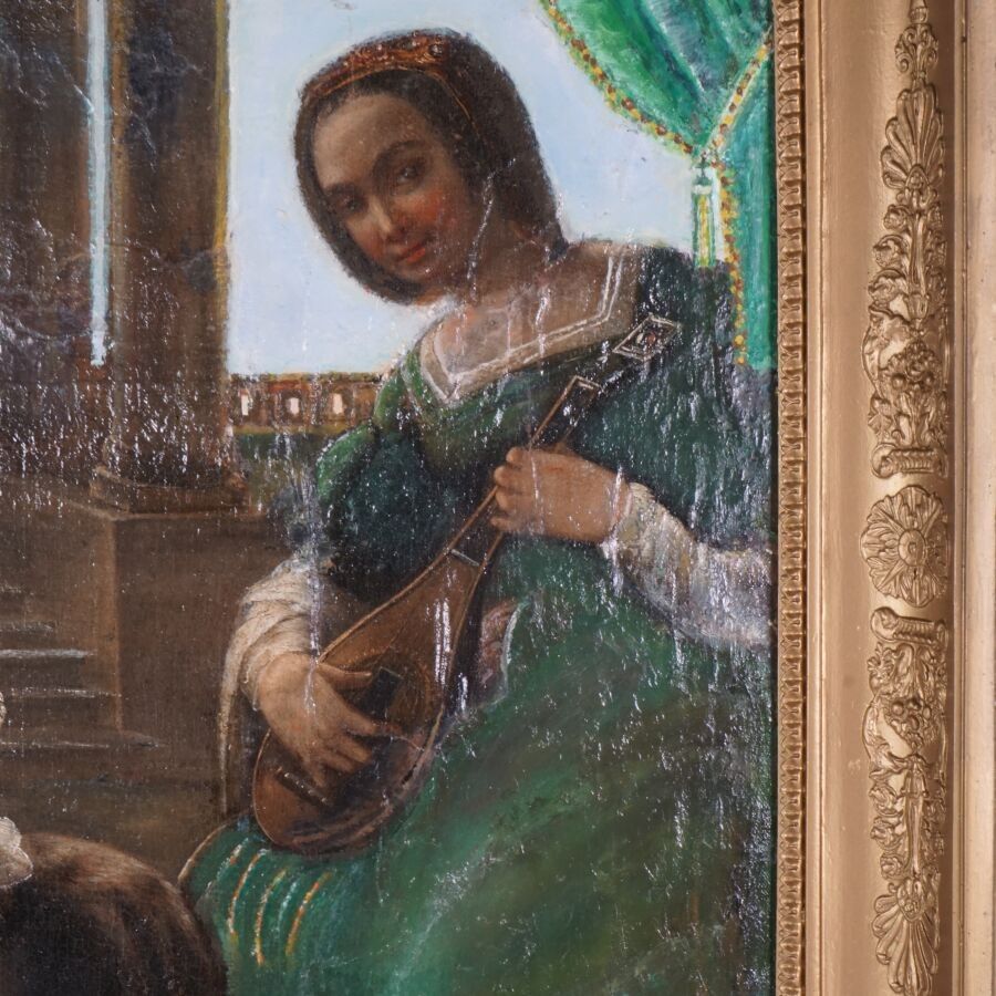 Attributed to Ernest Antoine HÉBERT (1817-1908), "Dans la loggia" circa 1900, oil on parquet panel unsigned, 80 x 65 cm.