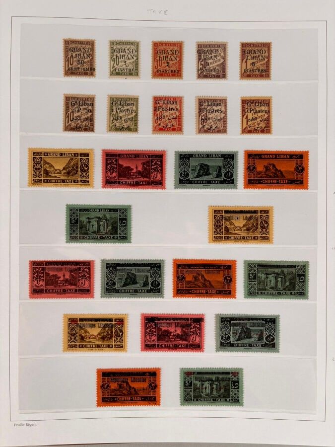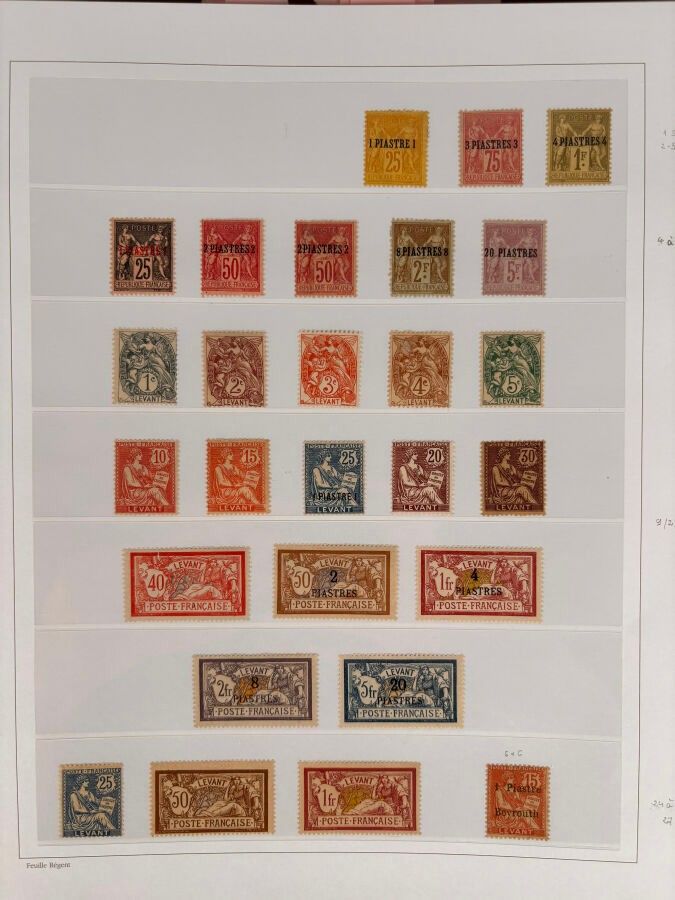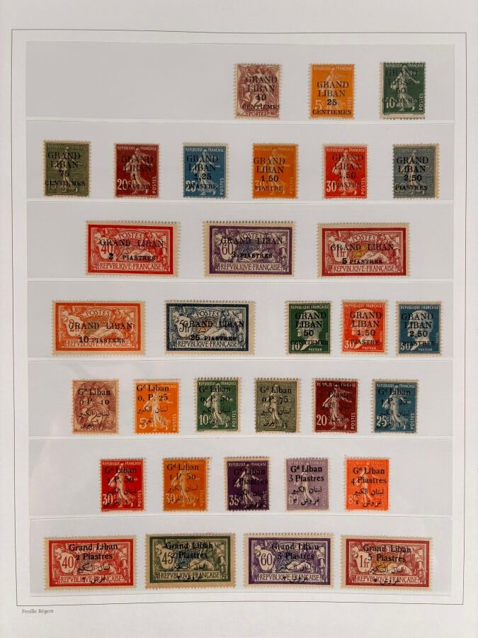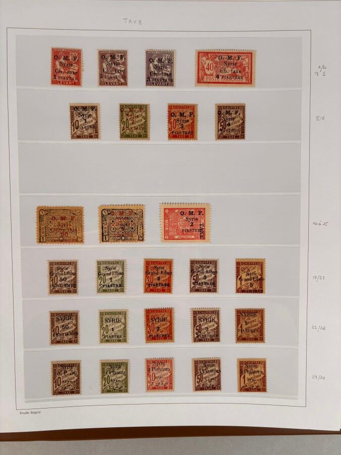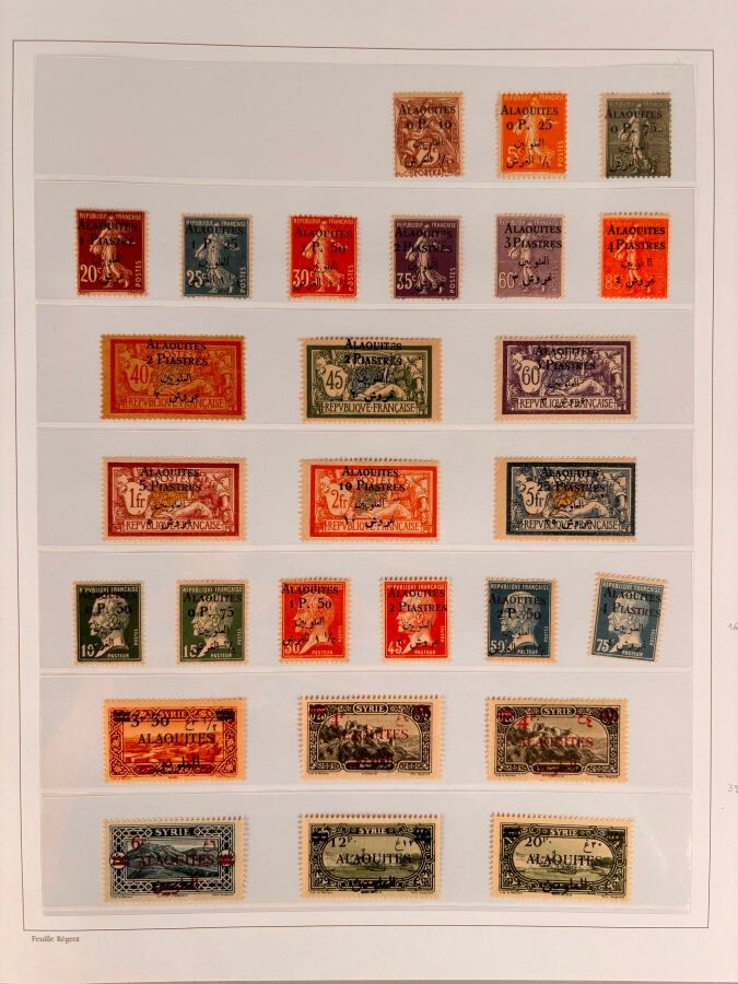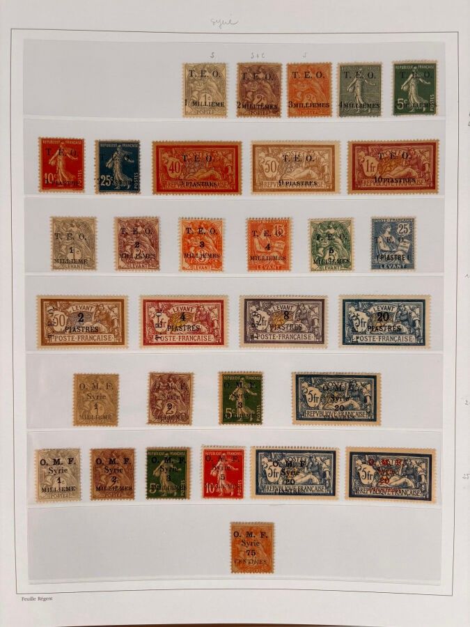 ALAOUITES - ALEXANDRETTE - CASTELLORIZO - CAVALLE - CILICIA - CRETE - DEDEAGH - GREAT LEBANON - LEVANT - PORT LAGOS - ROUAD - SYRIA - VATHY: In YVERT album, beautiful collection of TP N**, N*, good values, some facsimiles, important rating.