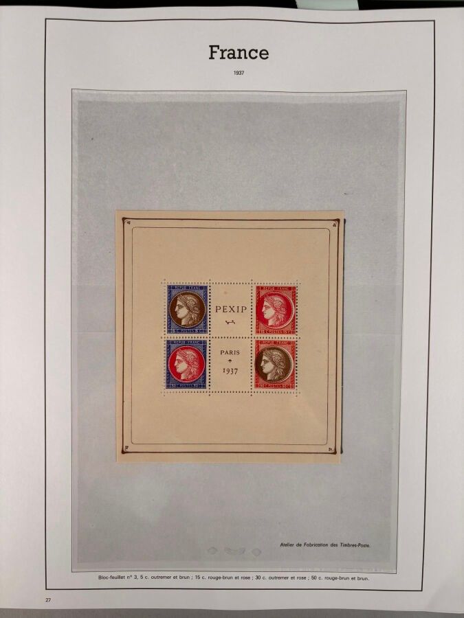 FRANCE (1900 to 1955): In YVERT album with sleeves, collection of TP N** with exceptions including N°122 N*, 148/55, 182, 188A, blocks 1 and 2, complete CA complete CA 257A, 262, 321 etc, very high value.