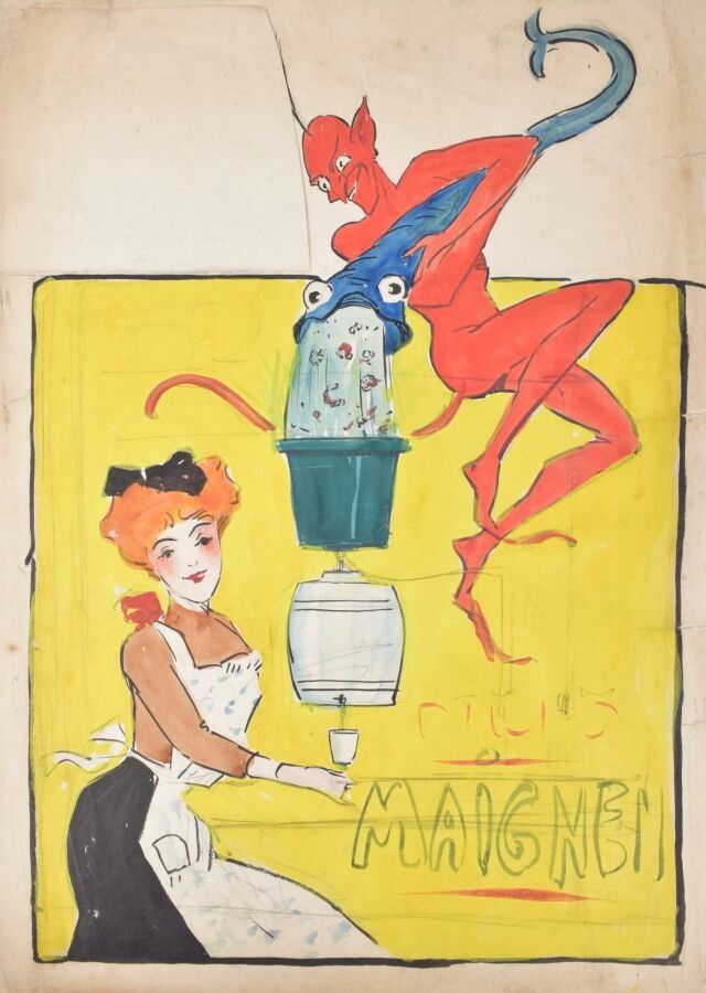 Edouard SAUNIER (1885-1918), "MAIGNEM", drawing, gouache and…