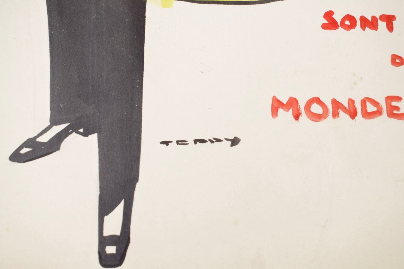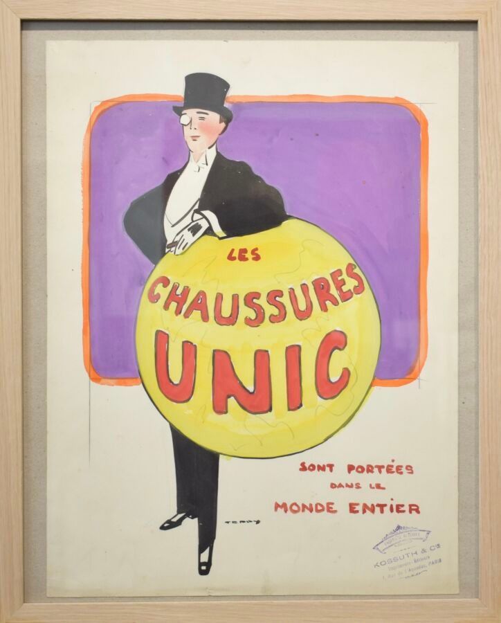 Edouard SAUNIER (1885-1918), "Les Chausseurs UNIC", gouache on paper, signed lower centre, framed, 40 x 30 cm.