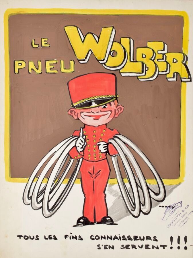 Edouard SAUNIER (1885-1918), "Le Pneu Wolber", watercolour a…