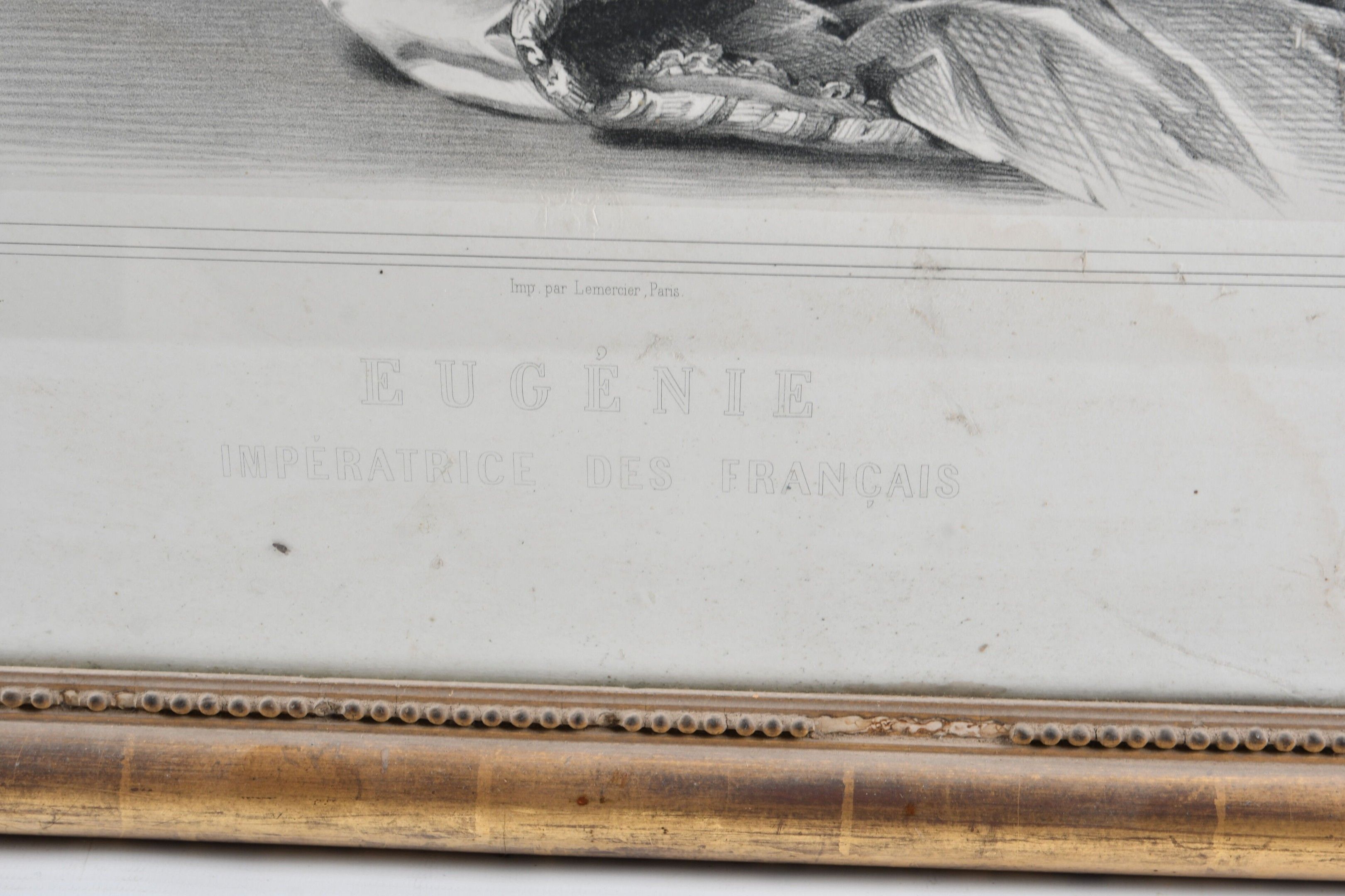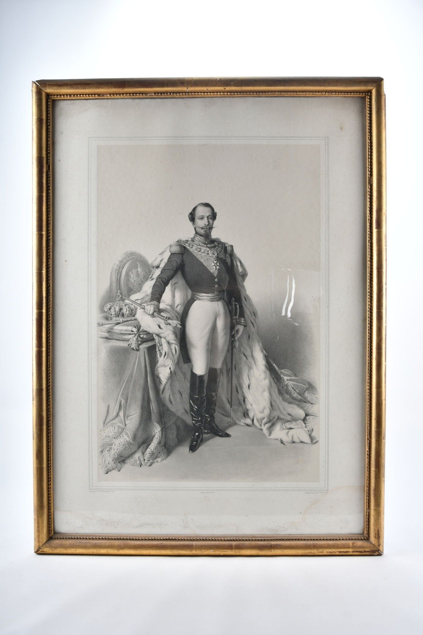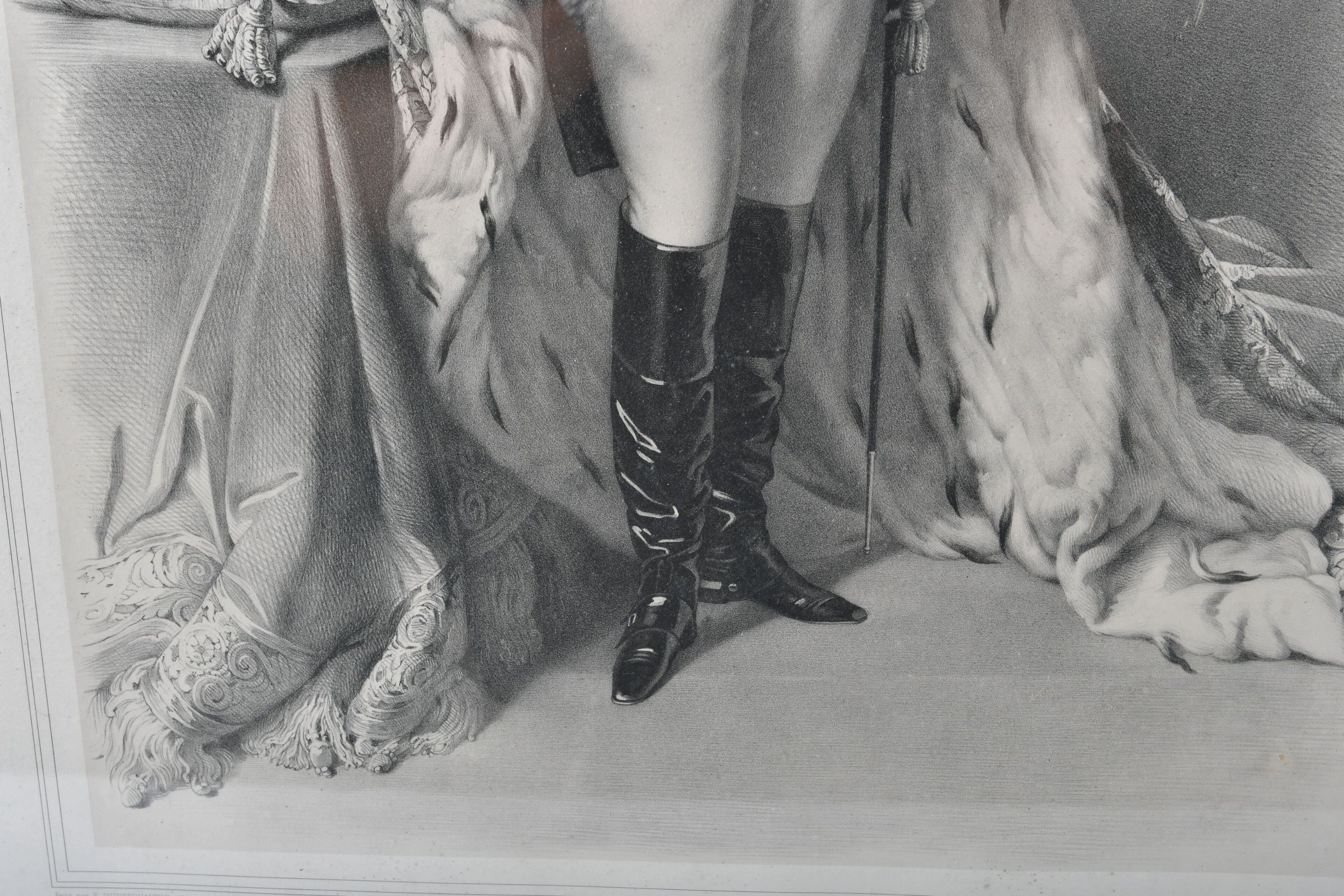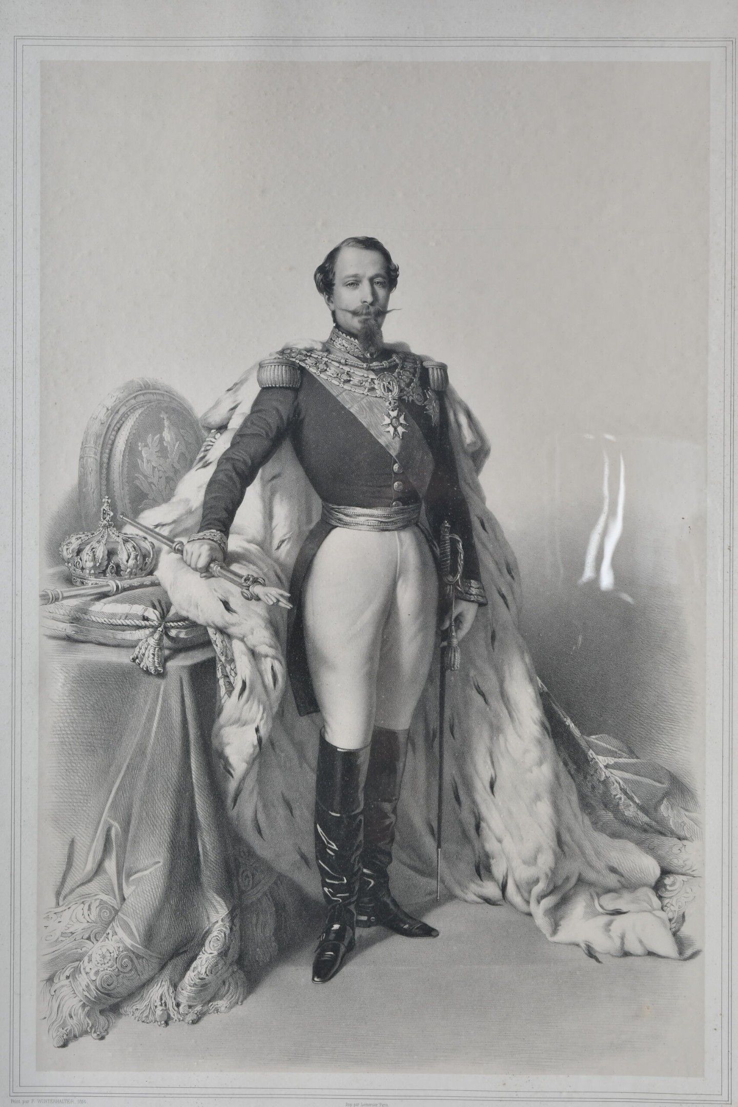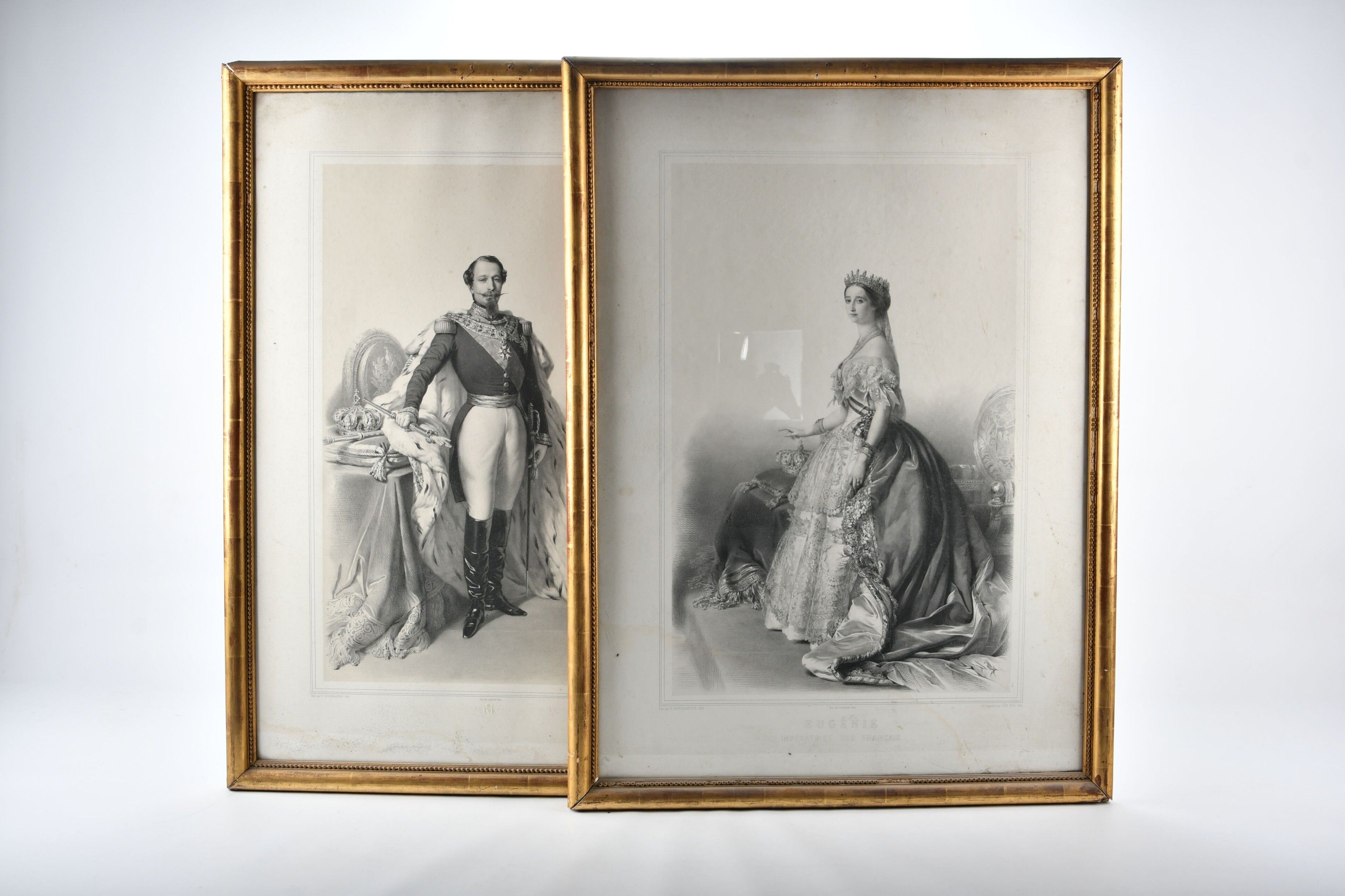 Emperor Napoleon III and Empress Eugenie full-length. Pair of black lithographs. View. 89 x 64 cm (wetness in the lower part).