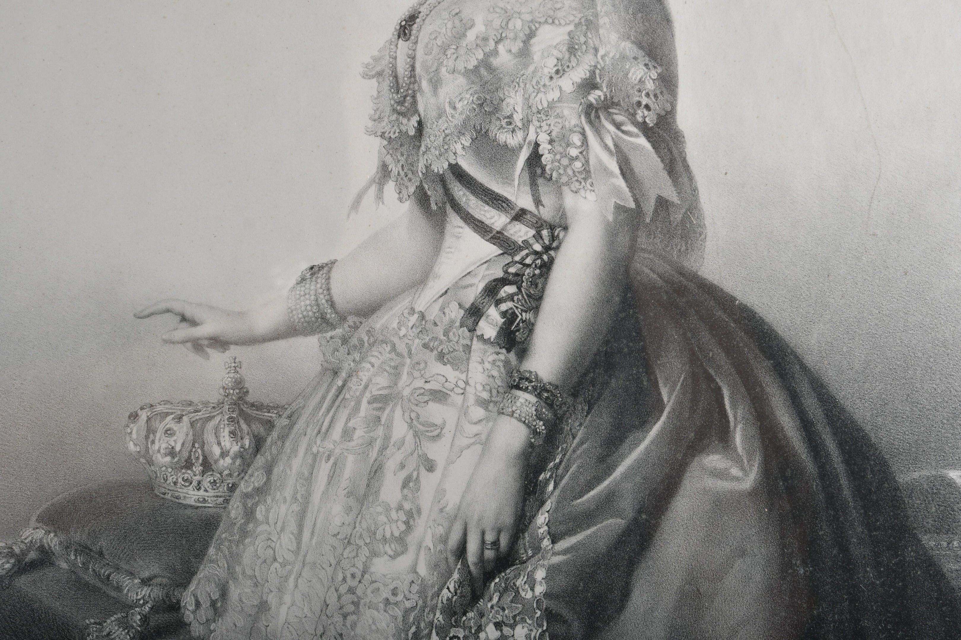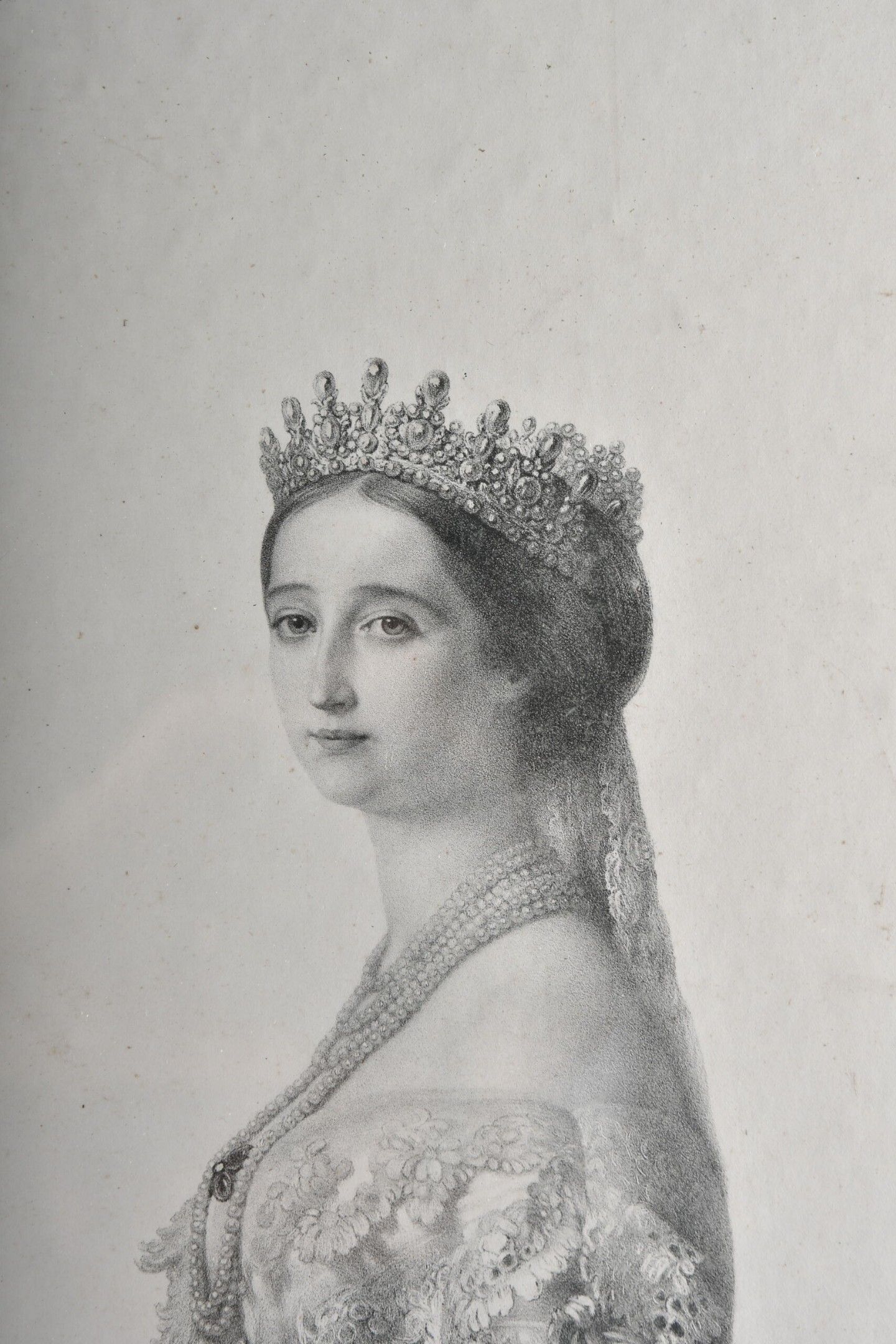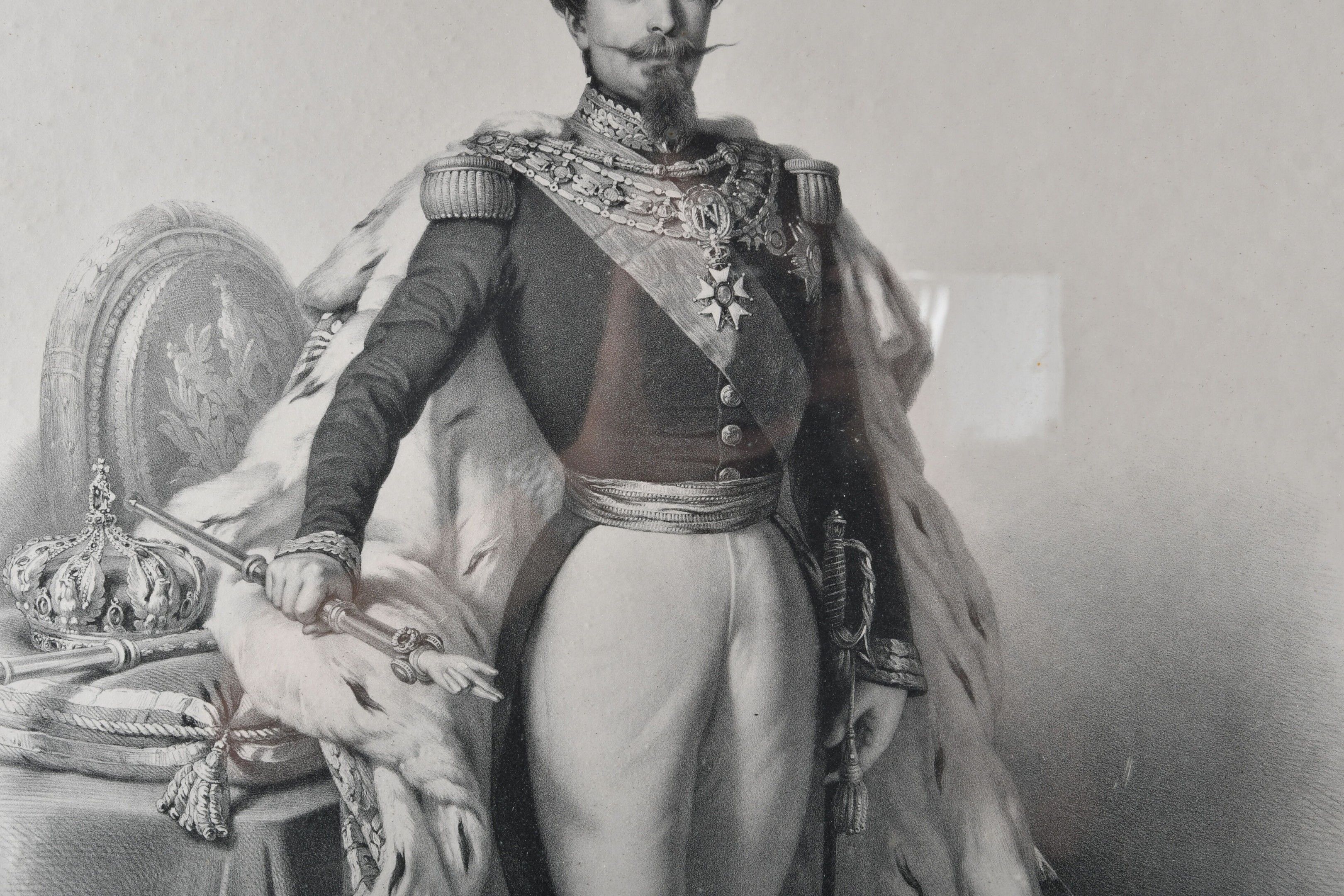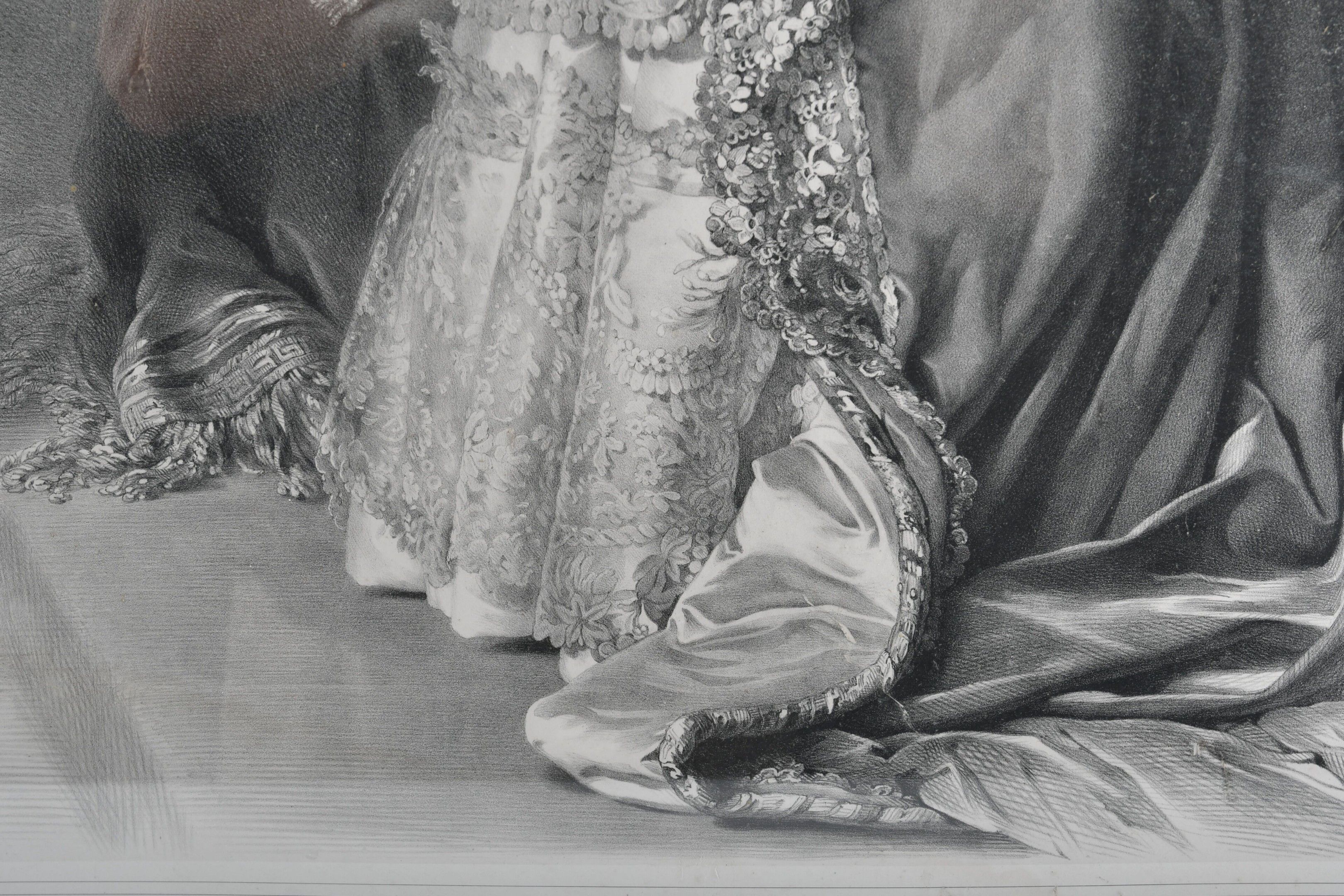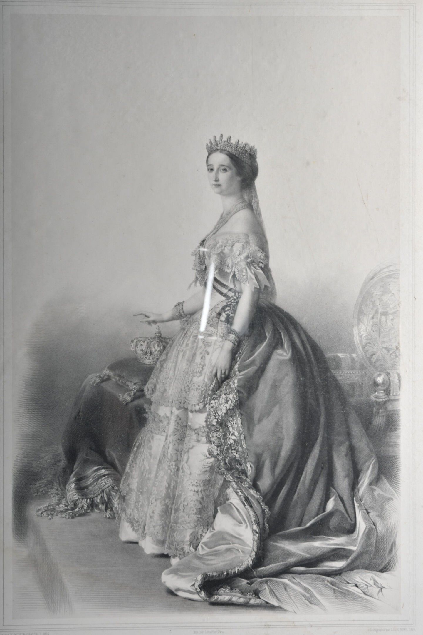 Emperor Napoleon III and Empress Eugenie full-length. Pair of black lithographs. View. 89 x 64 cm (wetness in the lower part).