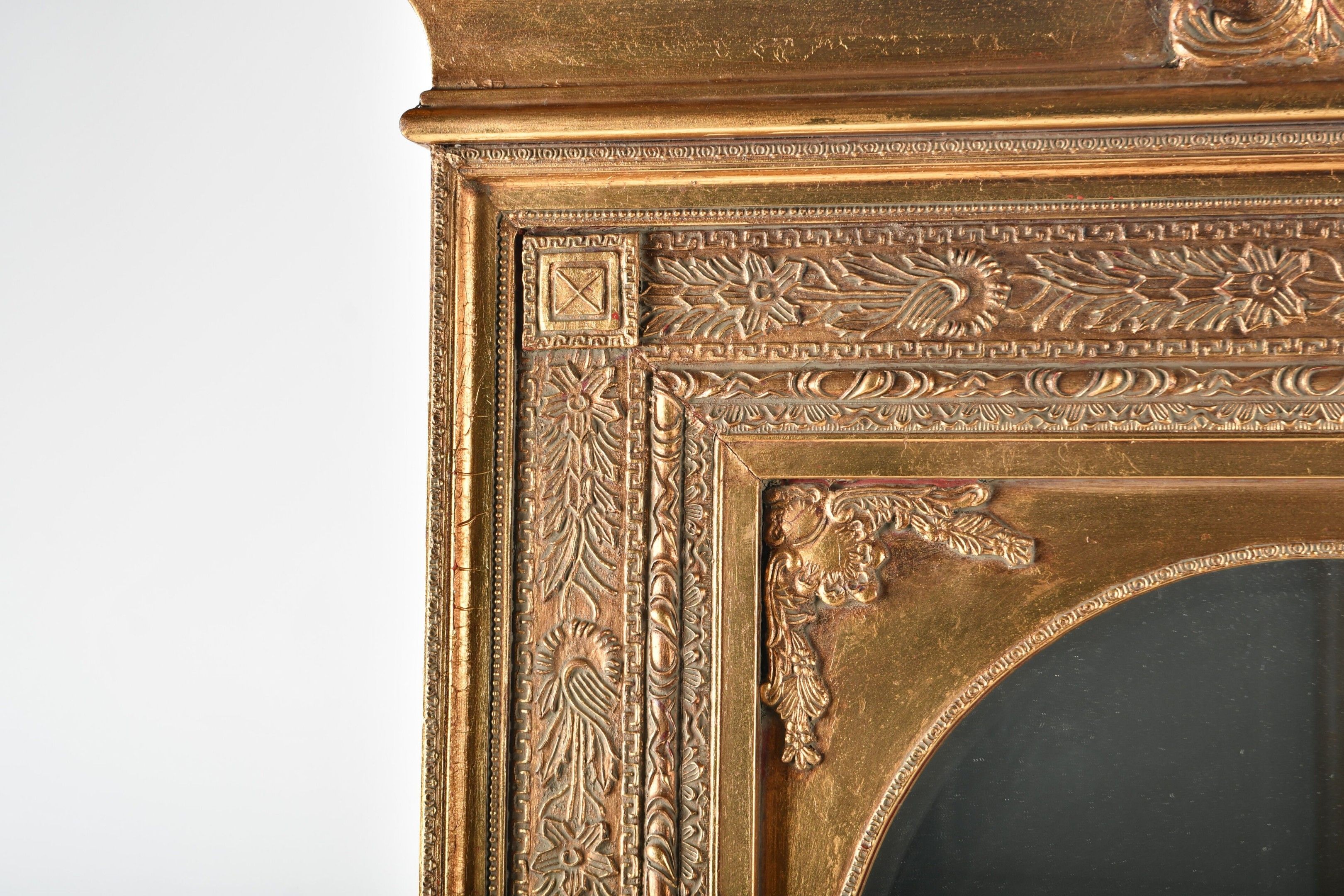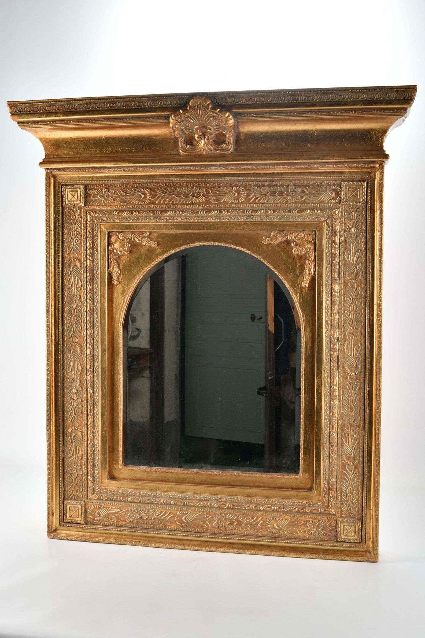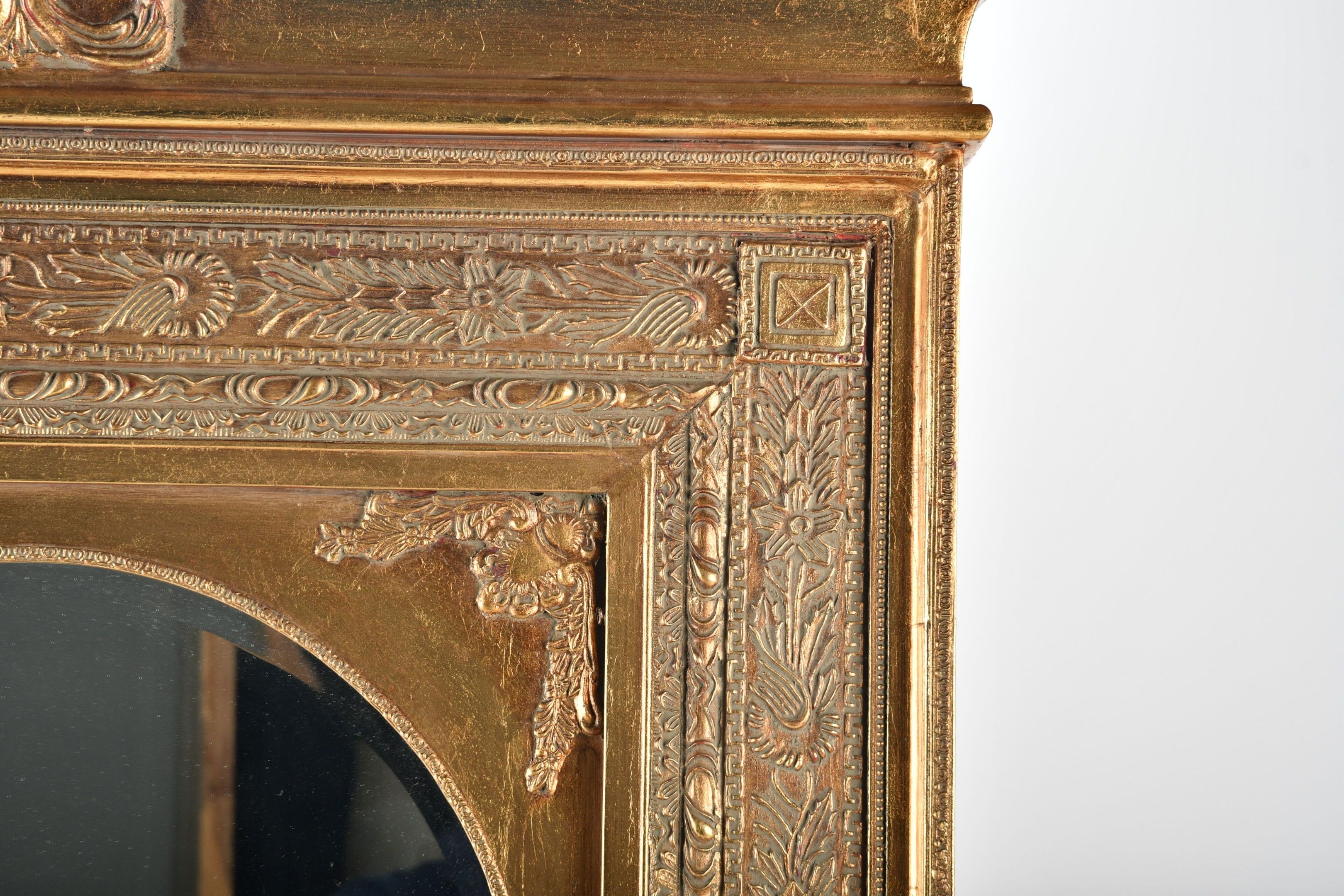 Wood and gilded composition rectangular TRUMEAU with a large cornice and a curved pediment mirror. Empire style, 20th century. H. 105 cm - W. 93 cm - D. 16 cm