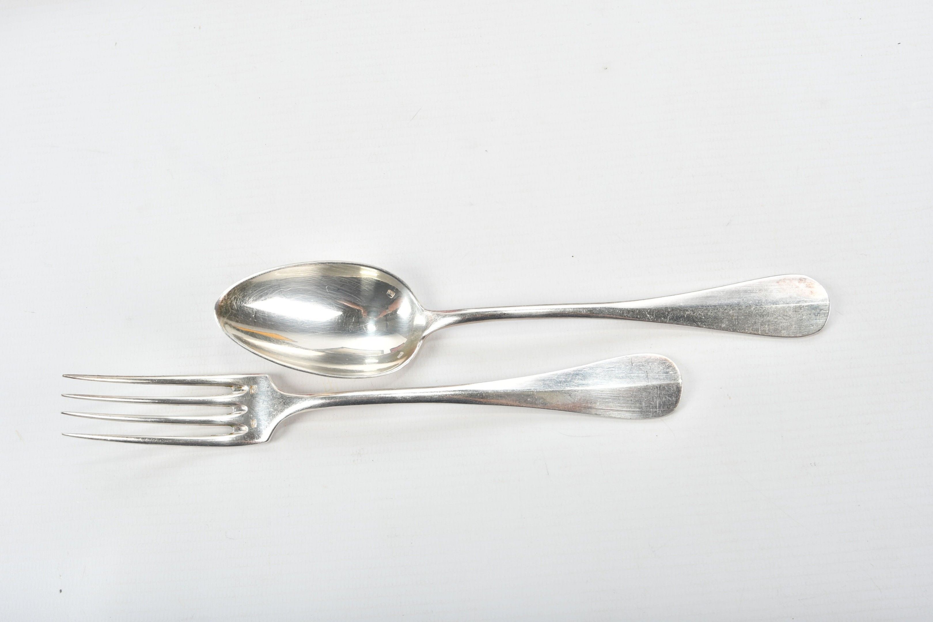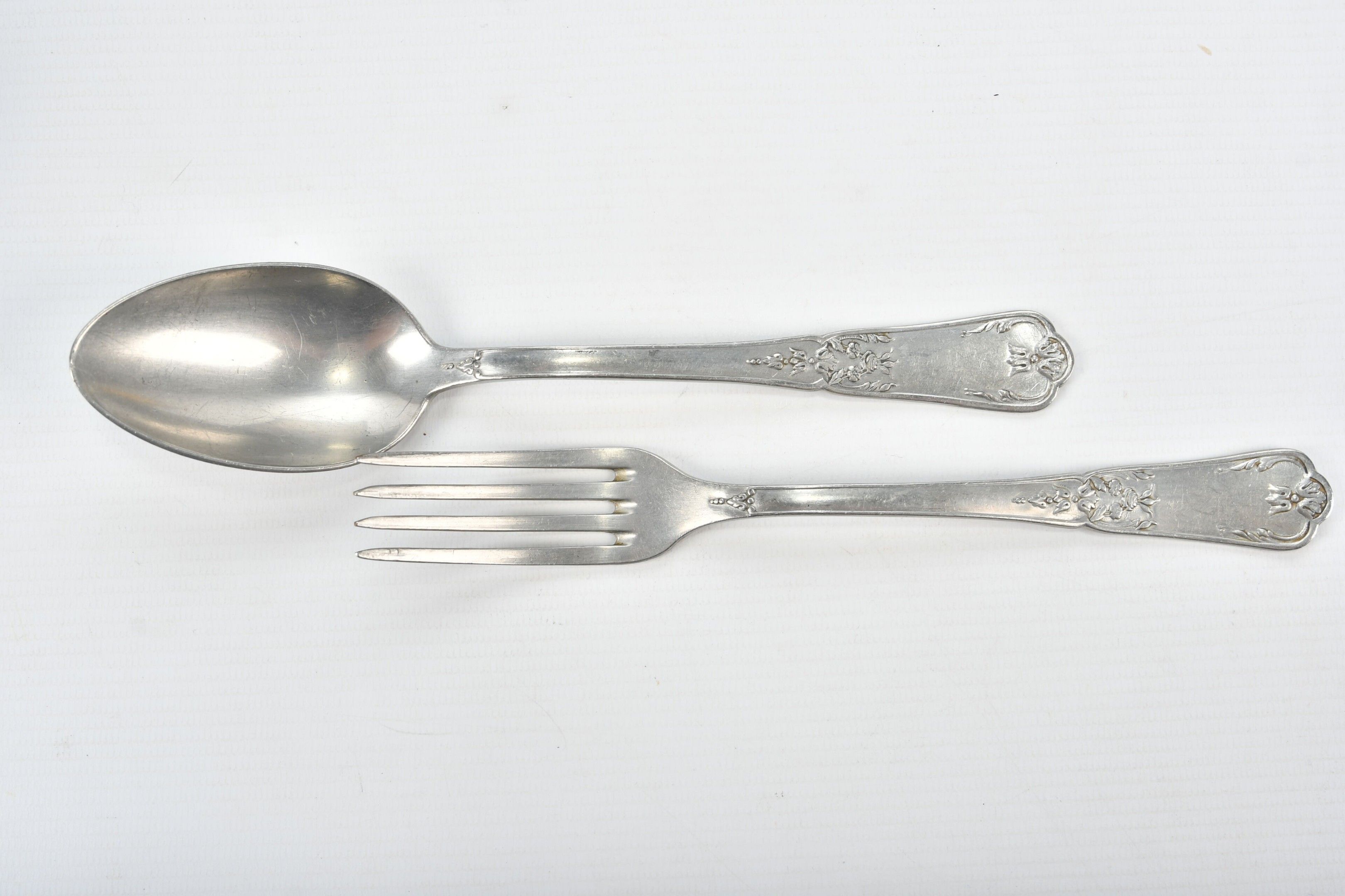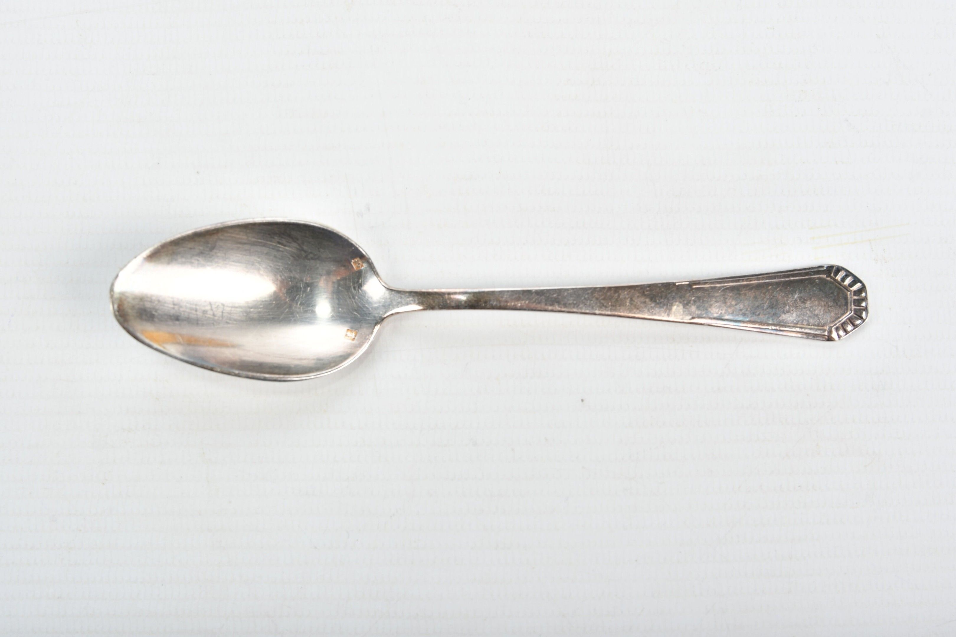 SILVER METAL (lot of) comprising: twelve large spatulated pattern cutlery sets; twelve Art Deco teaspoons and twelve large leafy white metal cutlery sets.
