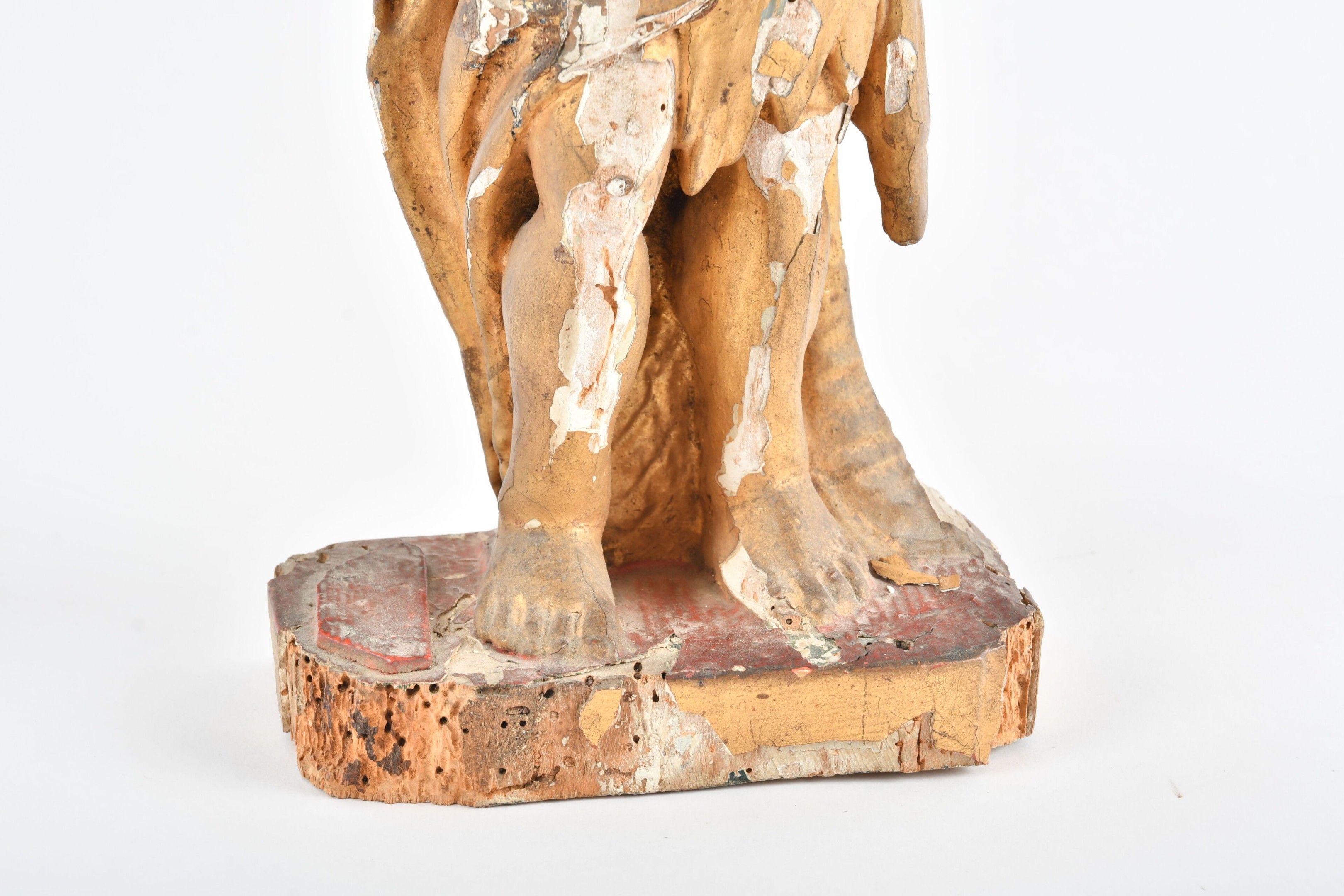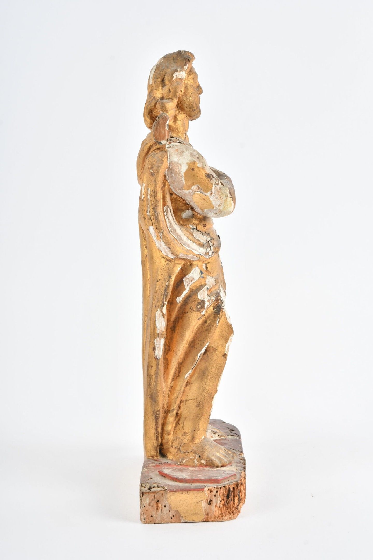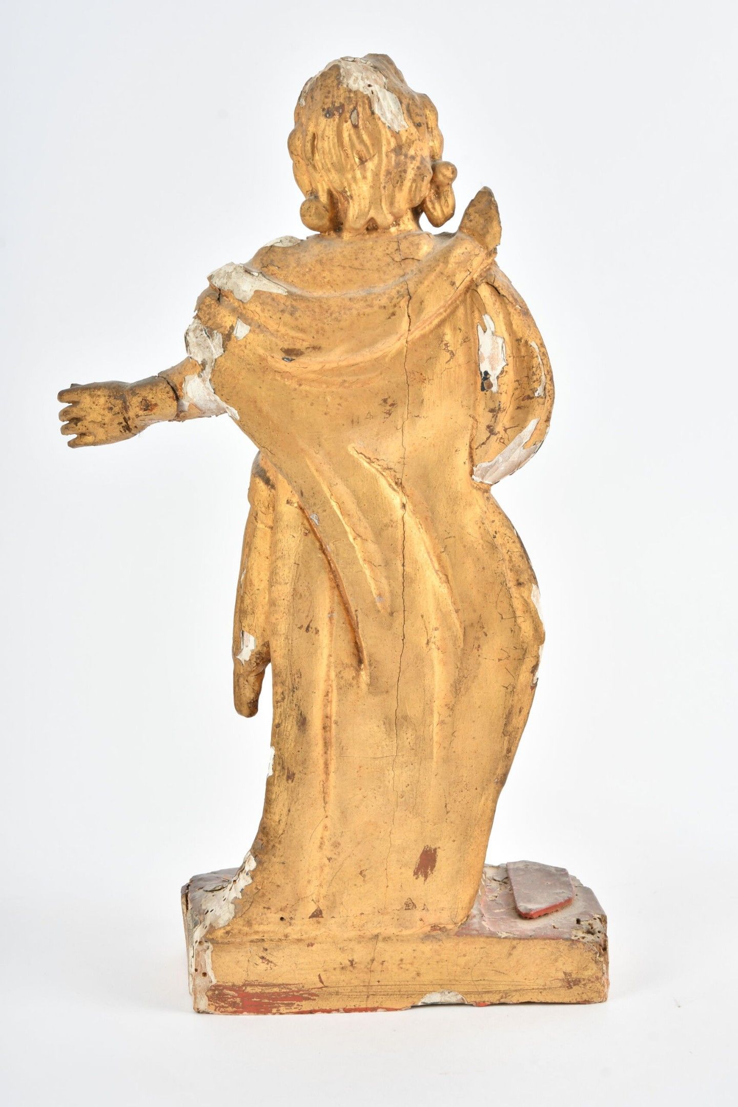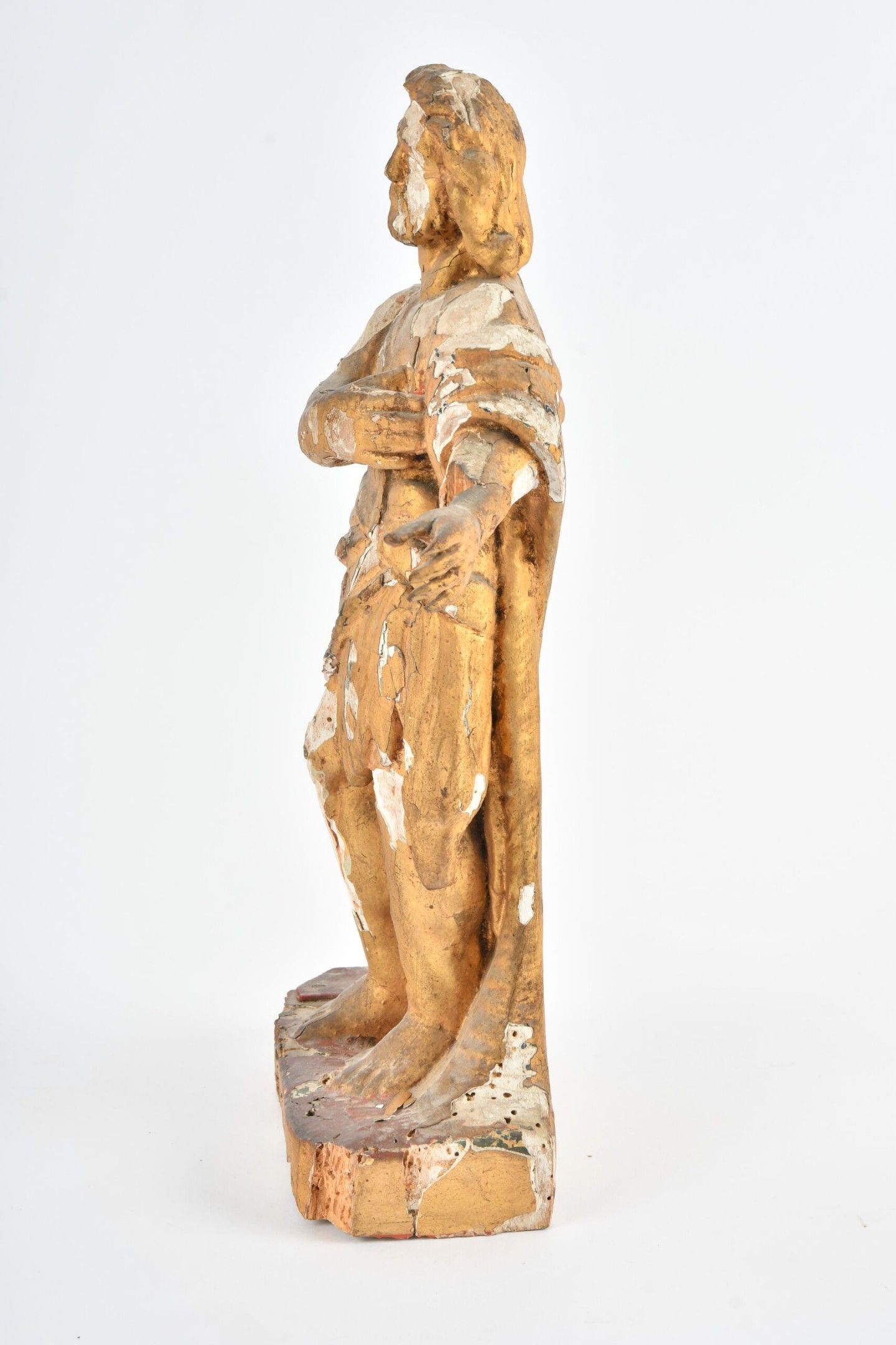 A carved and gilded wooden STATUE depicting a saint dressed …