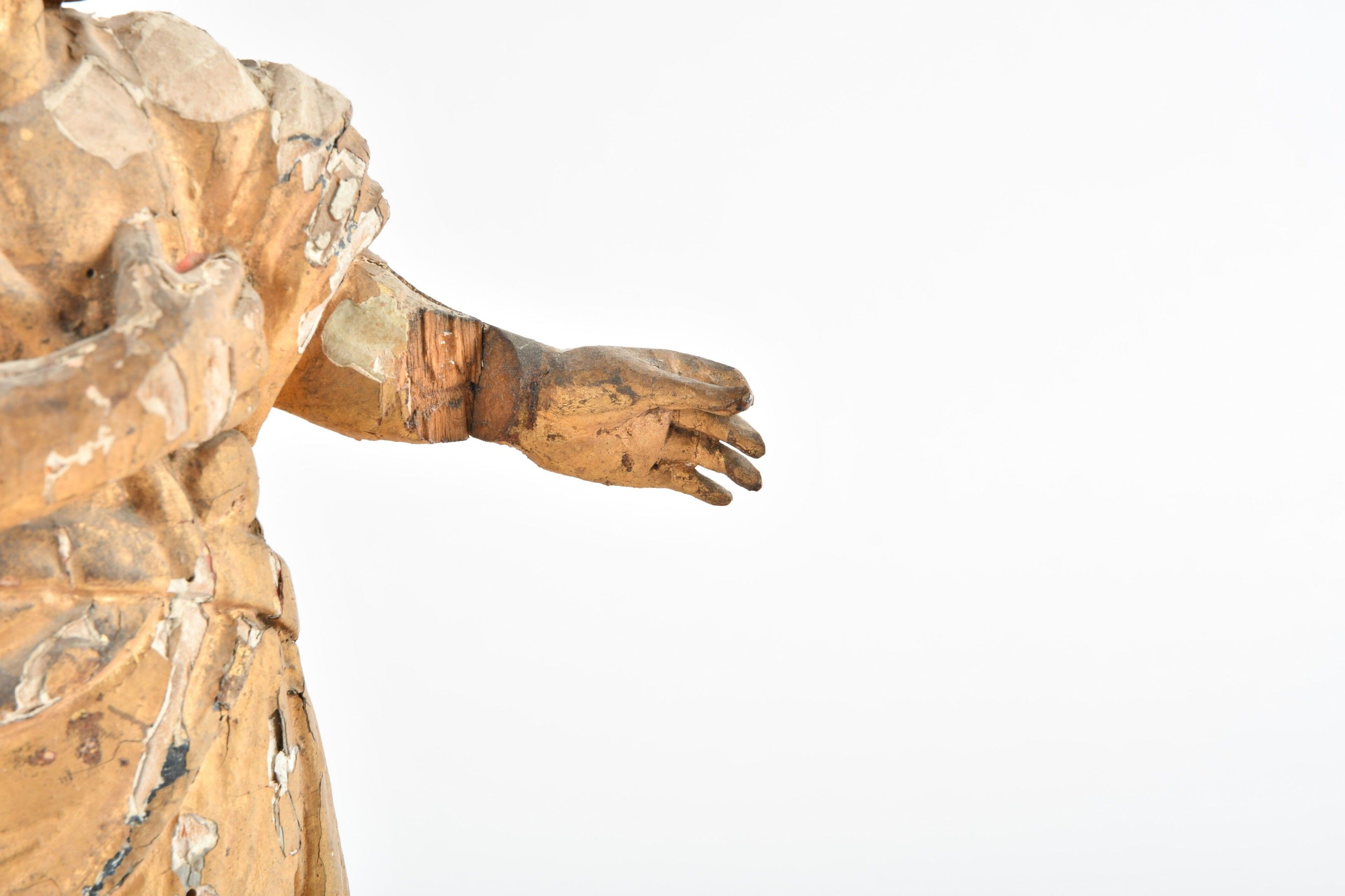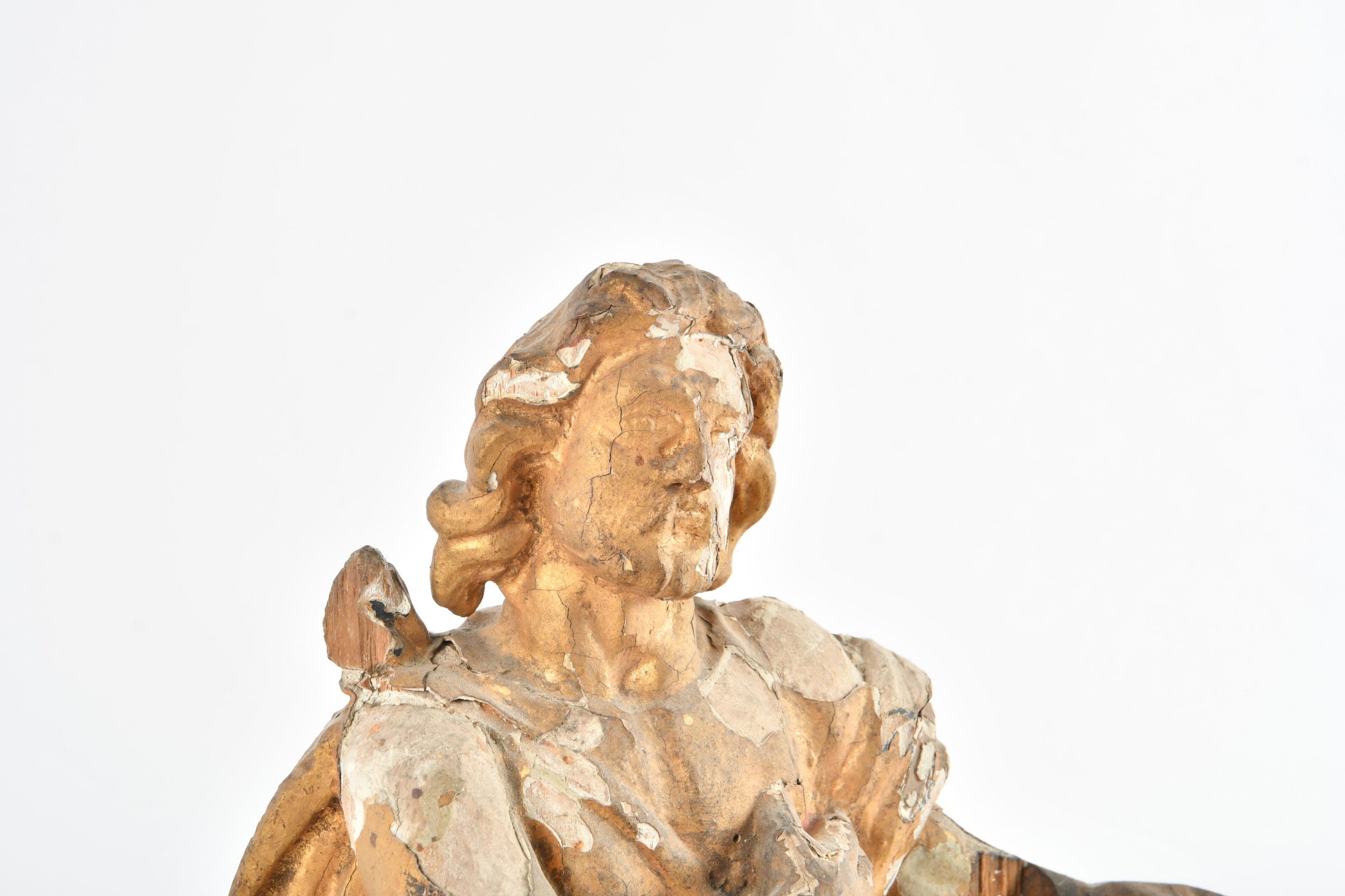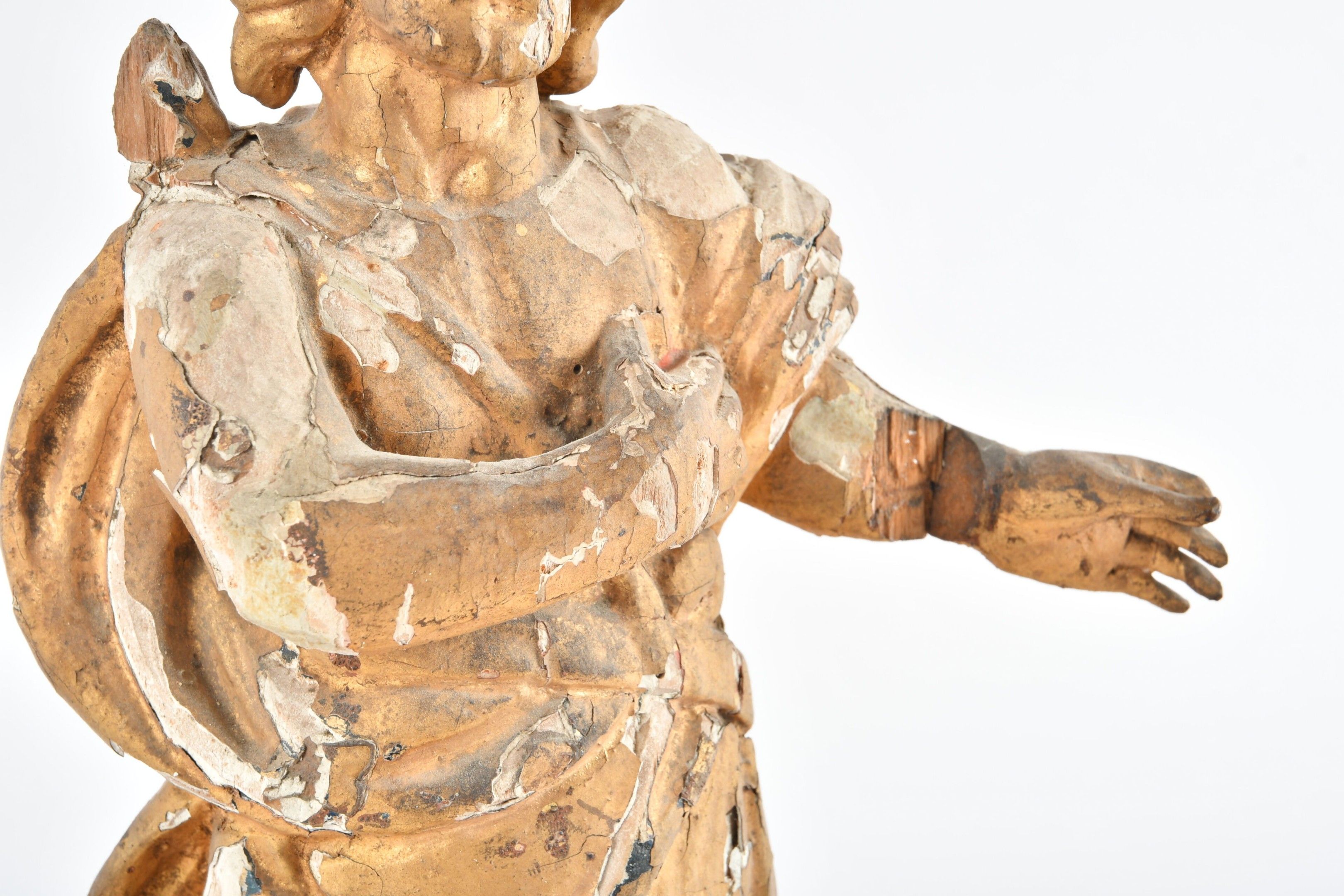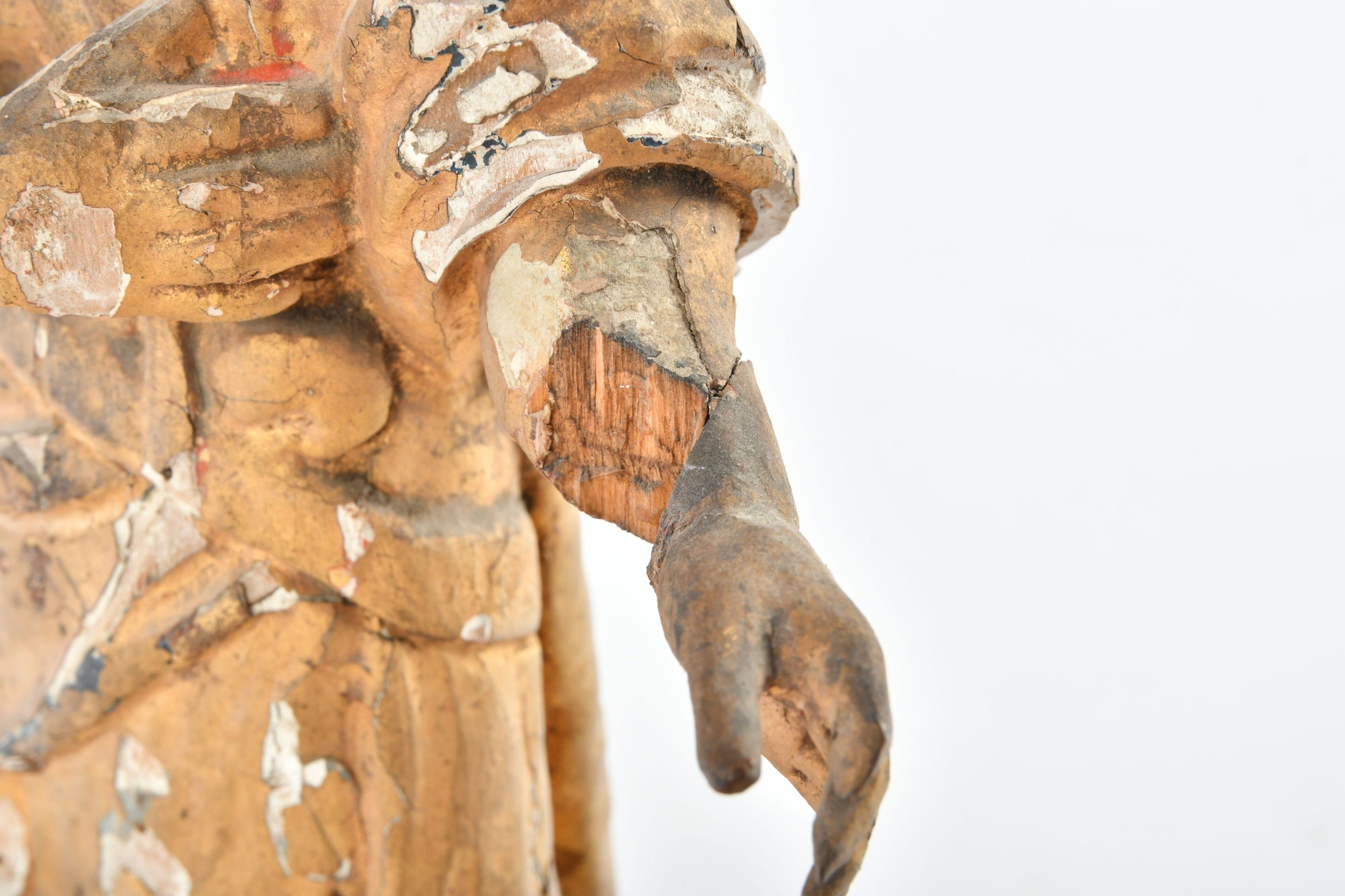 A carved and gilded wooden STATUE depicting a saint dressed …