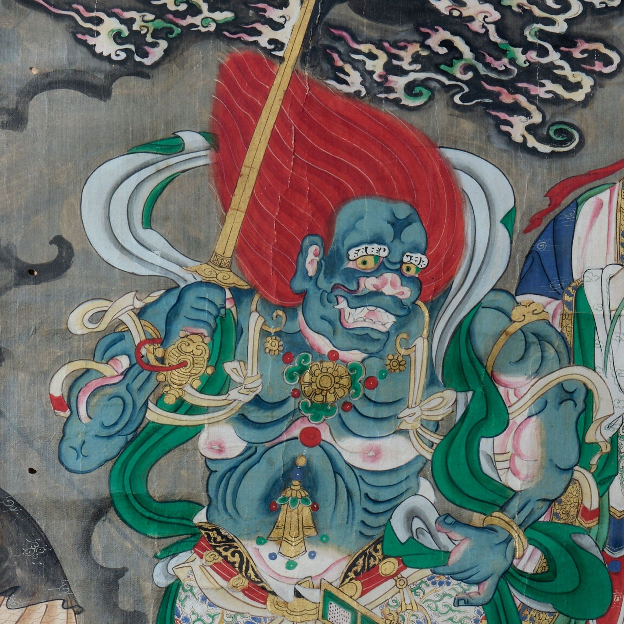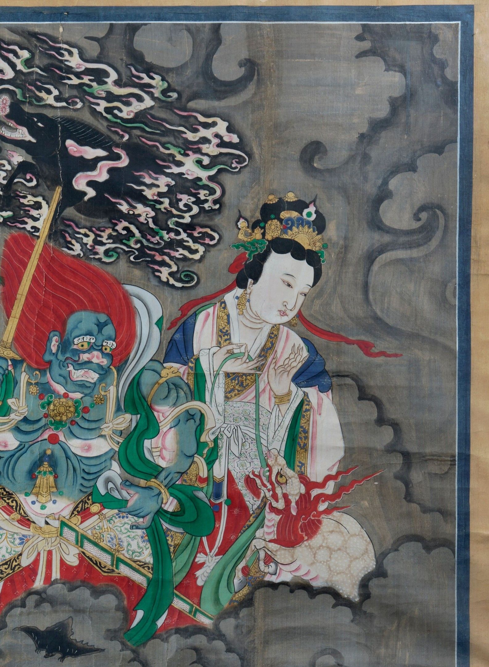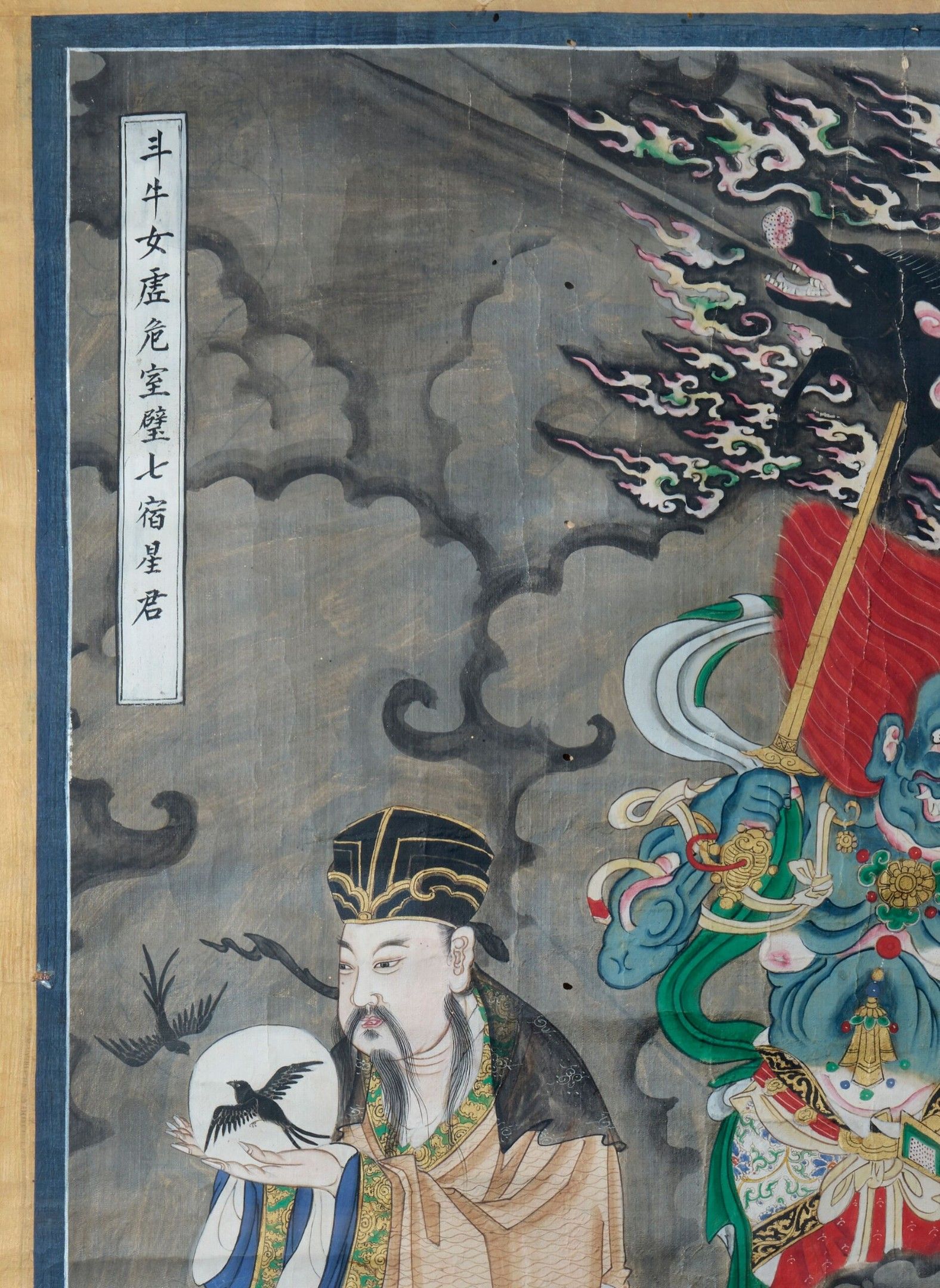 In this painting, the seven deities represented embody the seven constellations of the "Palace of the North" (symbol of winter): Dou, Niu, Nü, Xu, Wei, Shi and Bi.