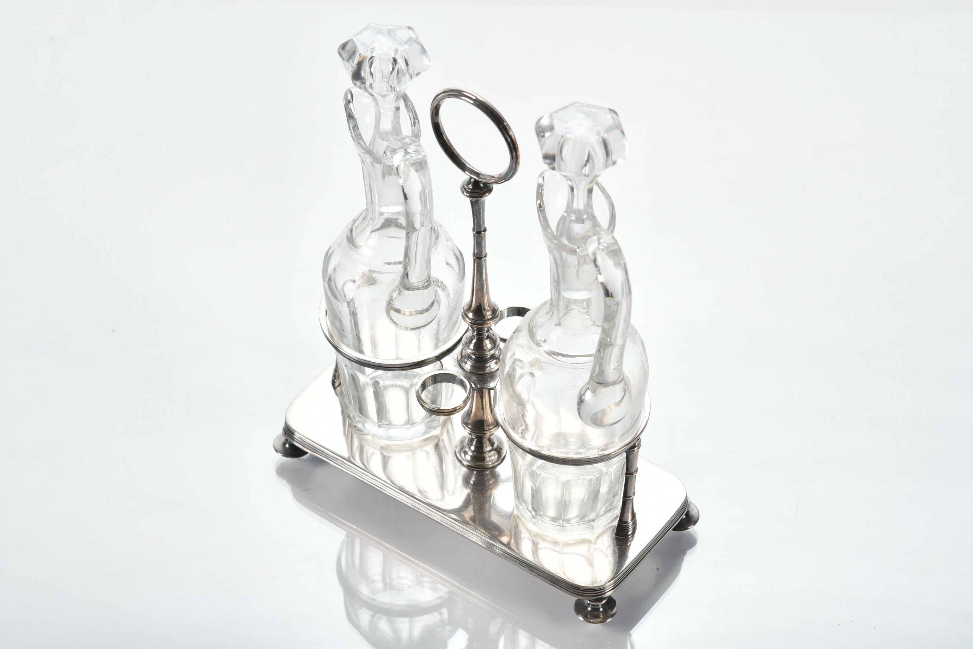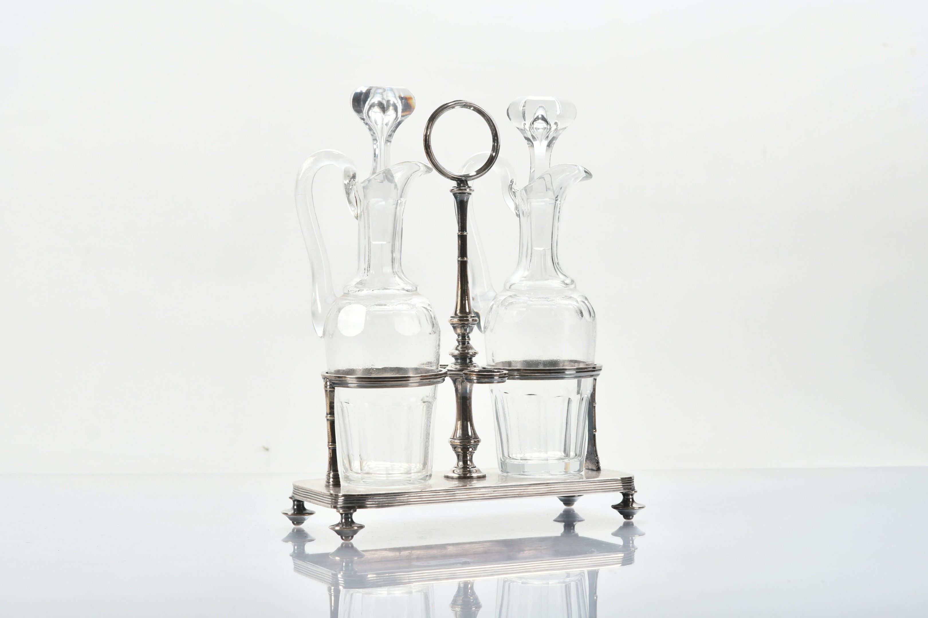 OIL VINEGAR HOLDER, in silver-plated metal, with crystal bot…