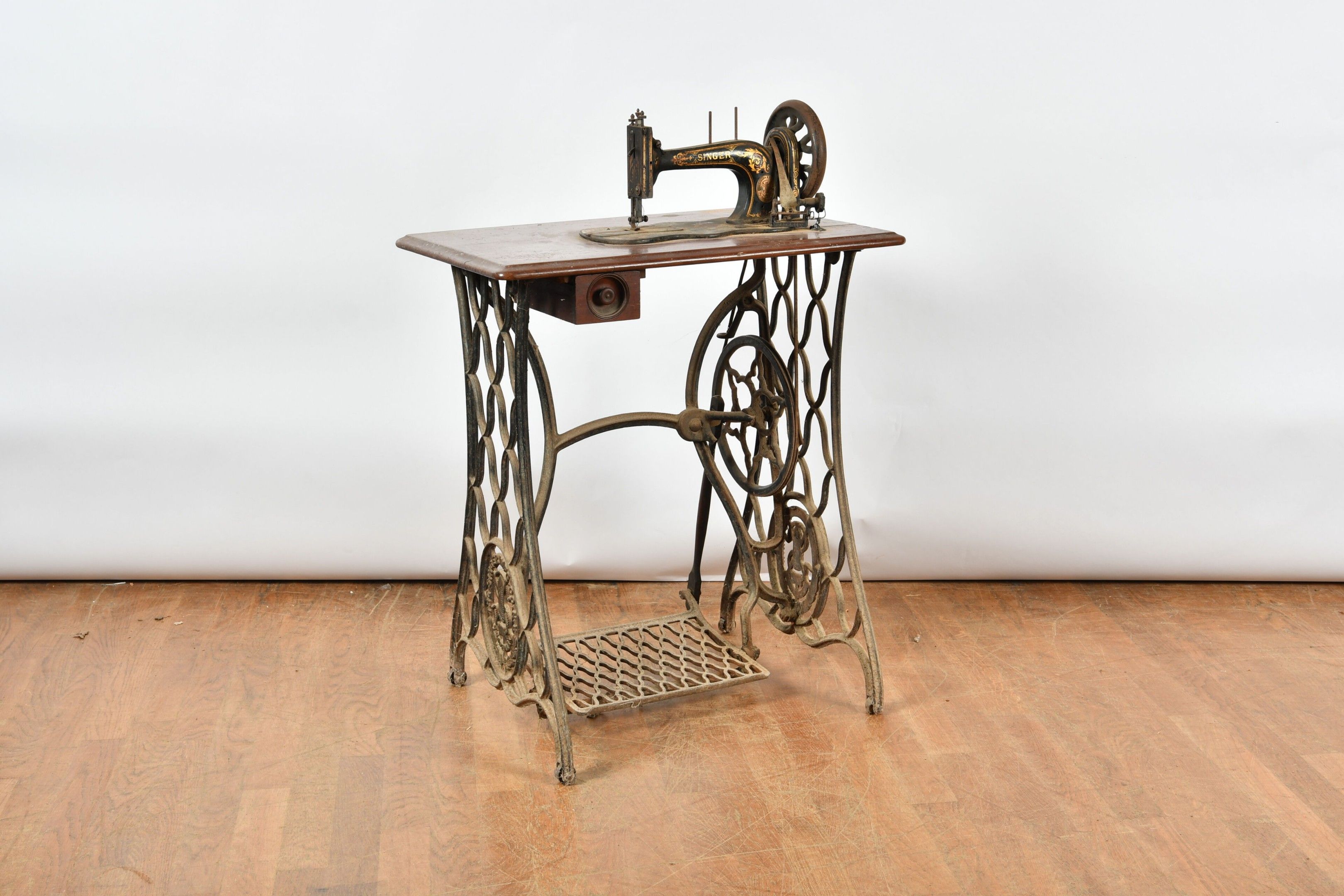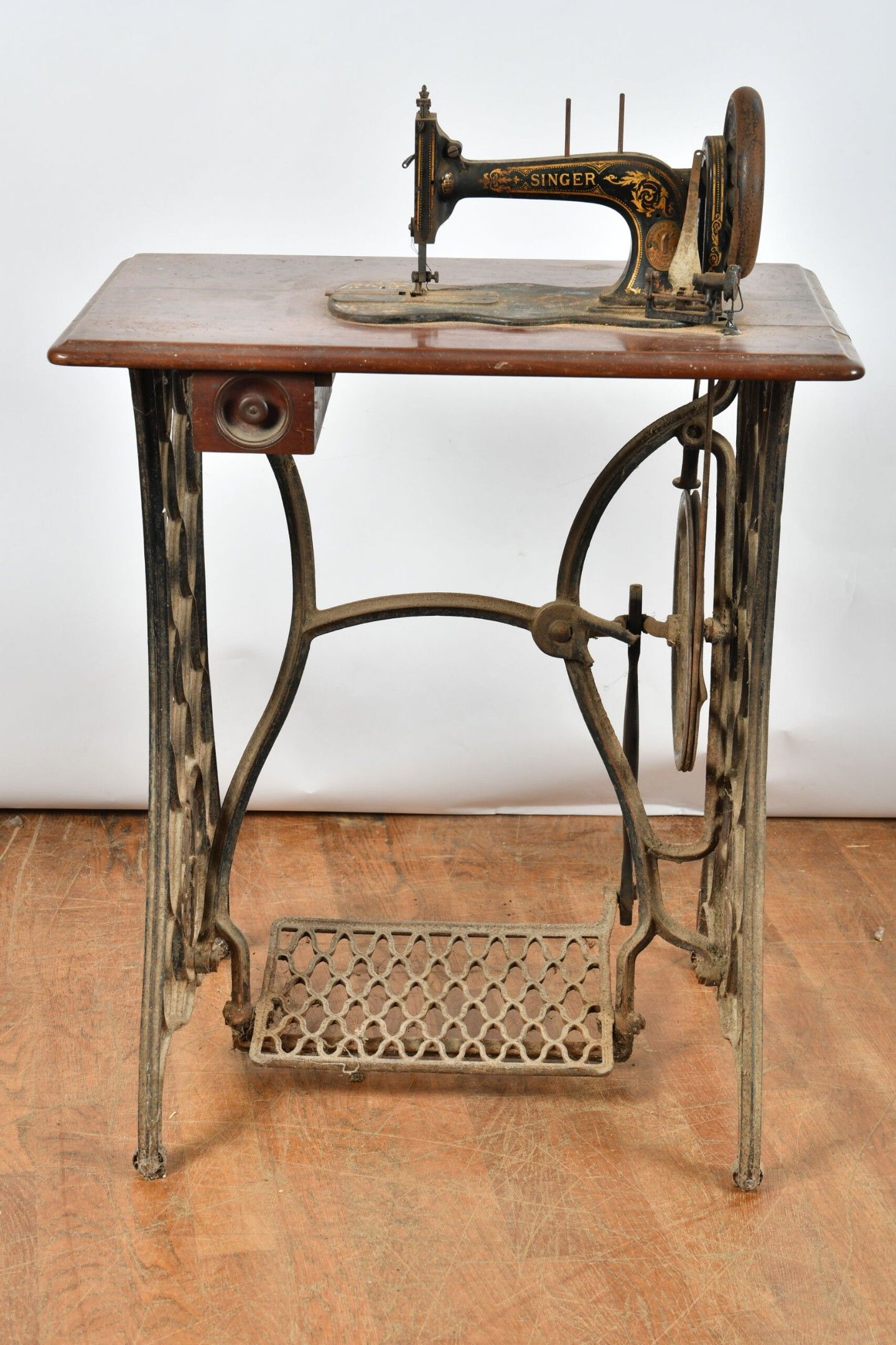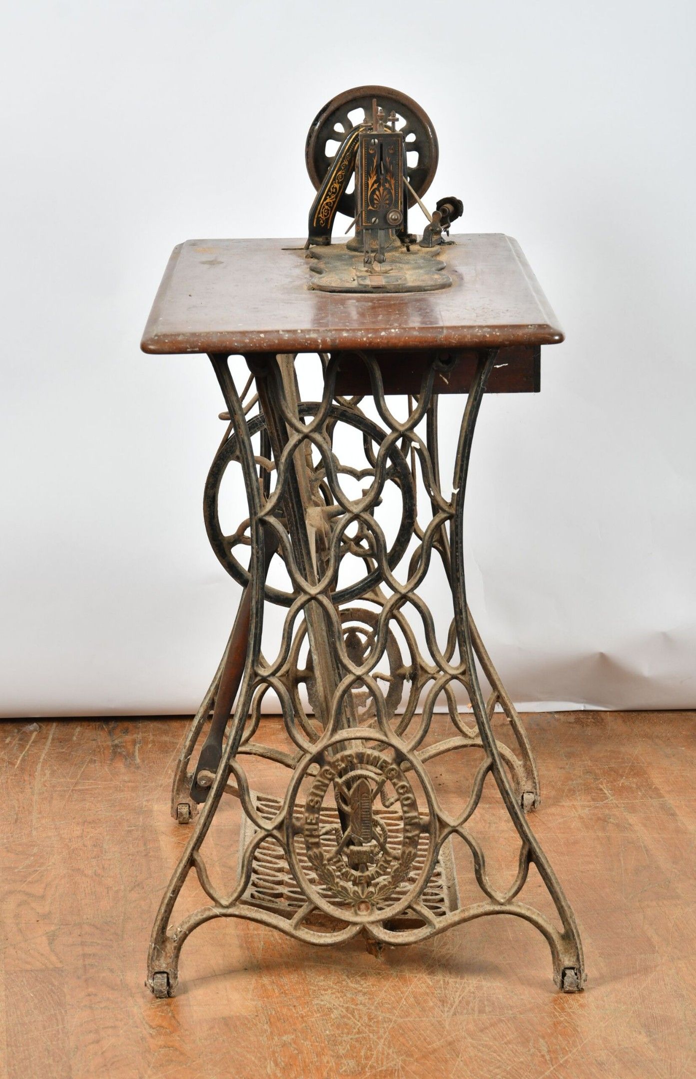 SINGER. Sewing machine on cast iron table base. Late 19th century