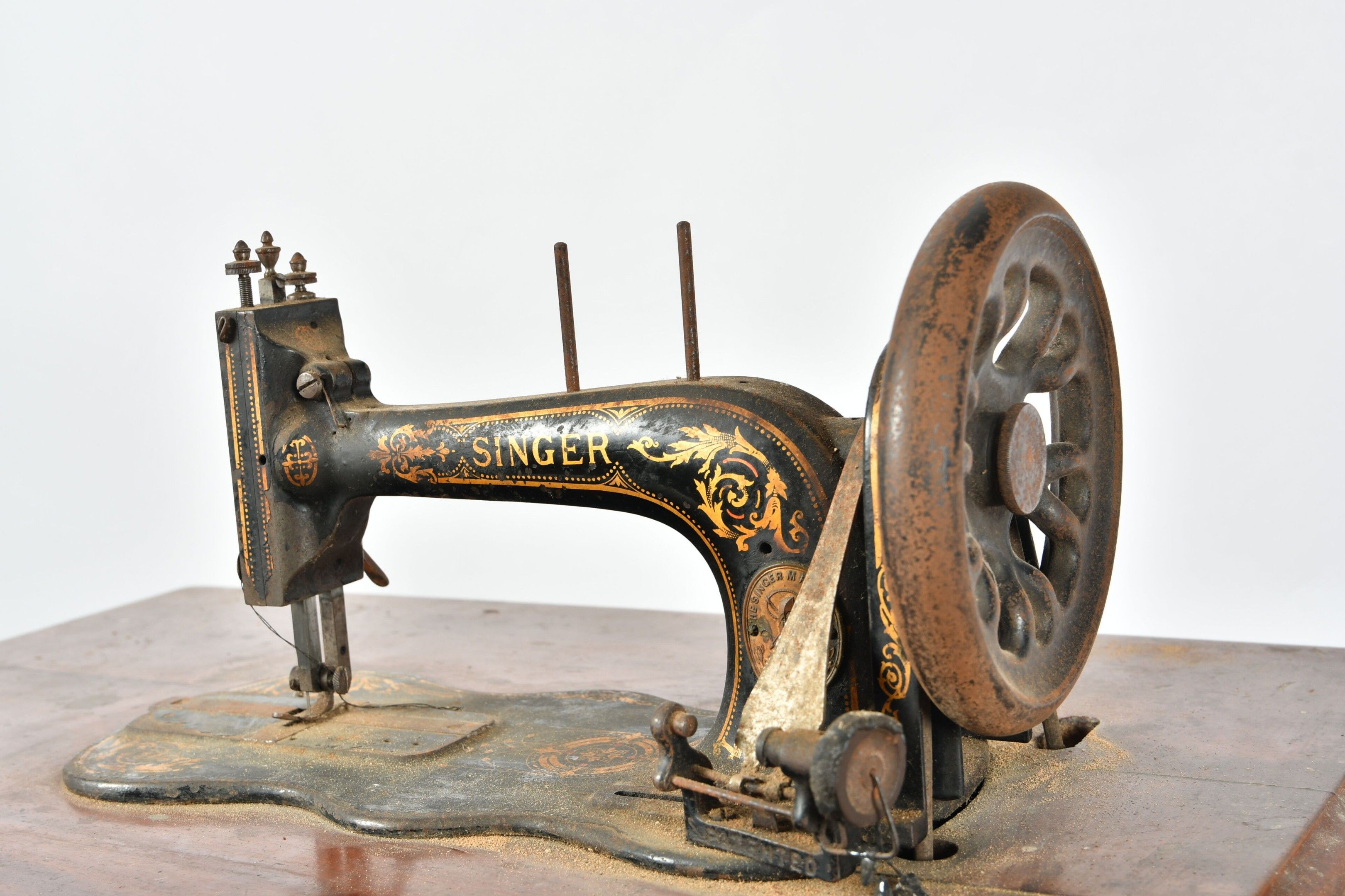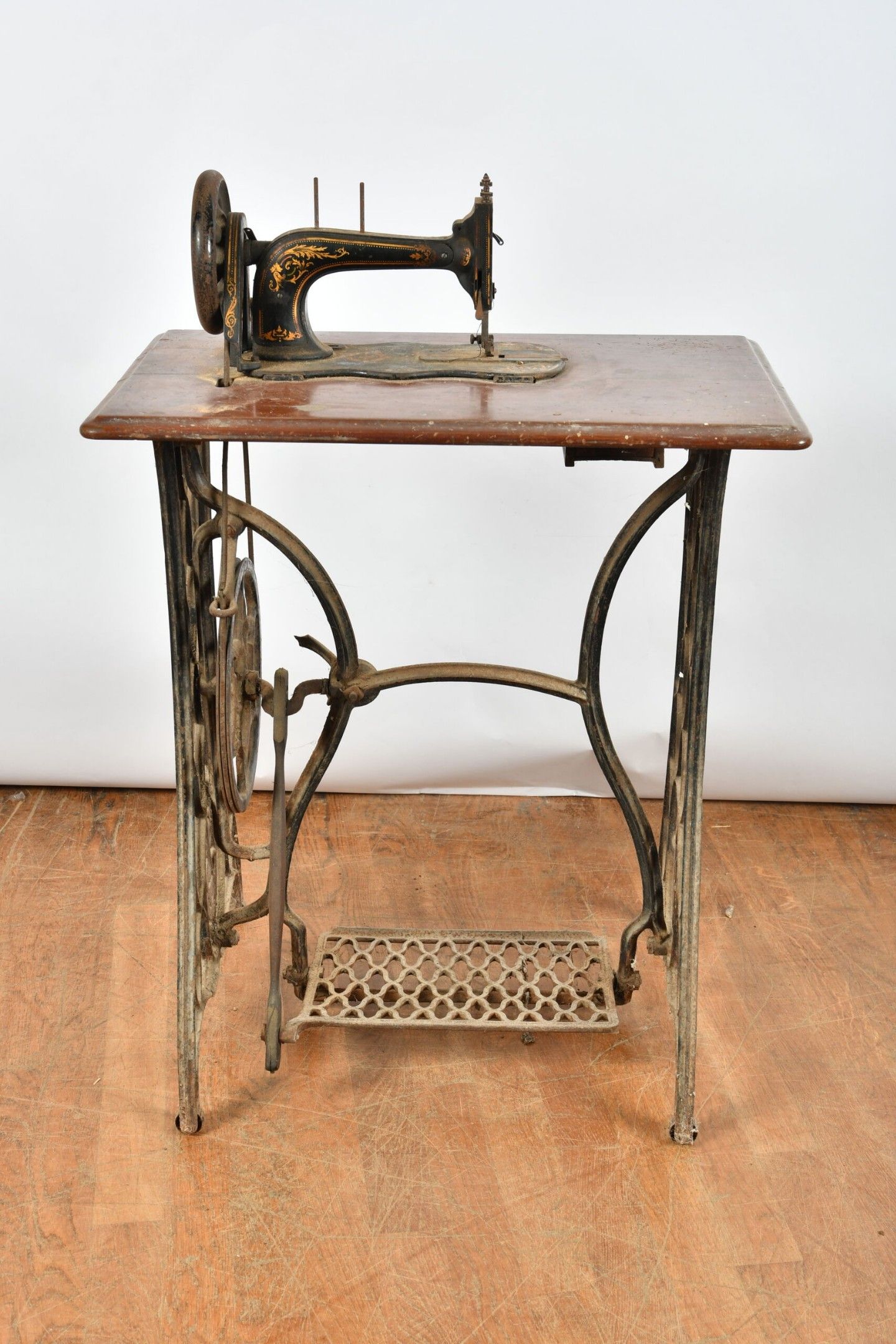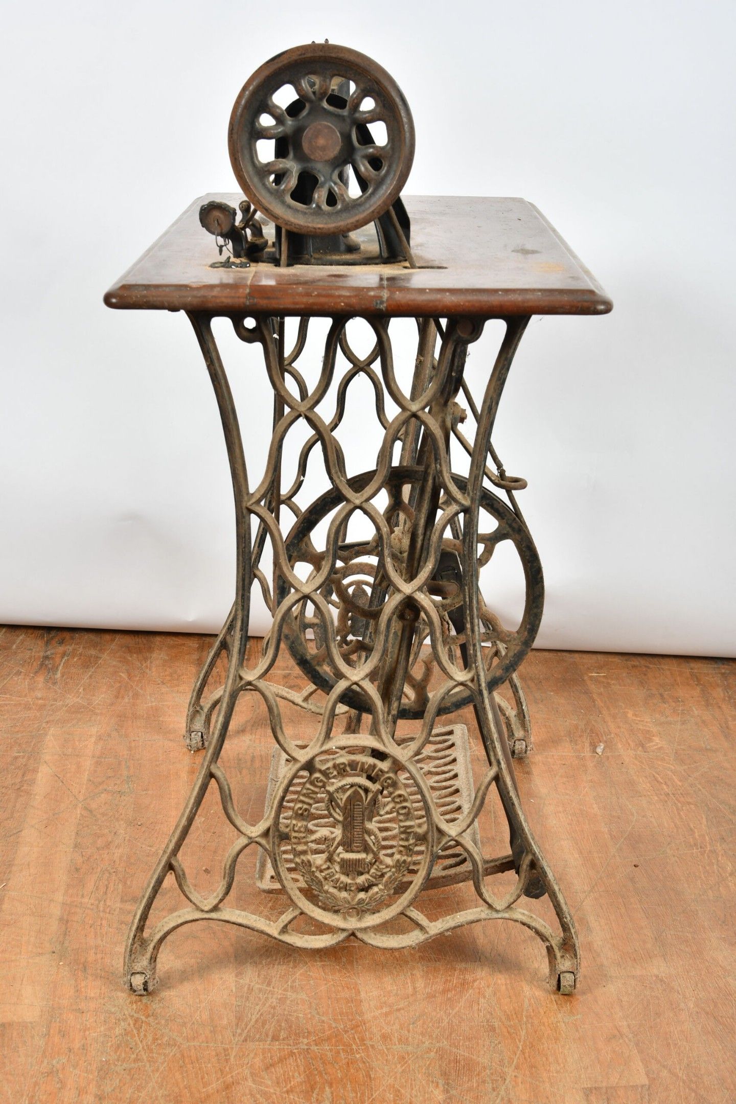 SINGER. Sewing machine on cast iron table base. Late 19th century