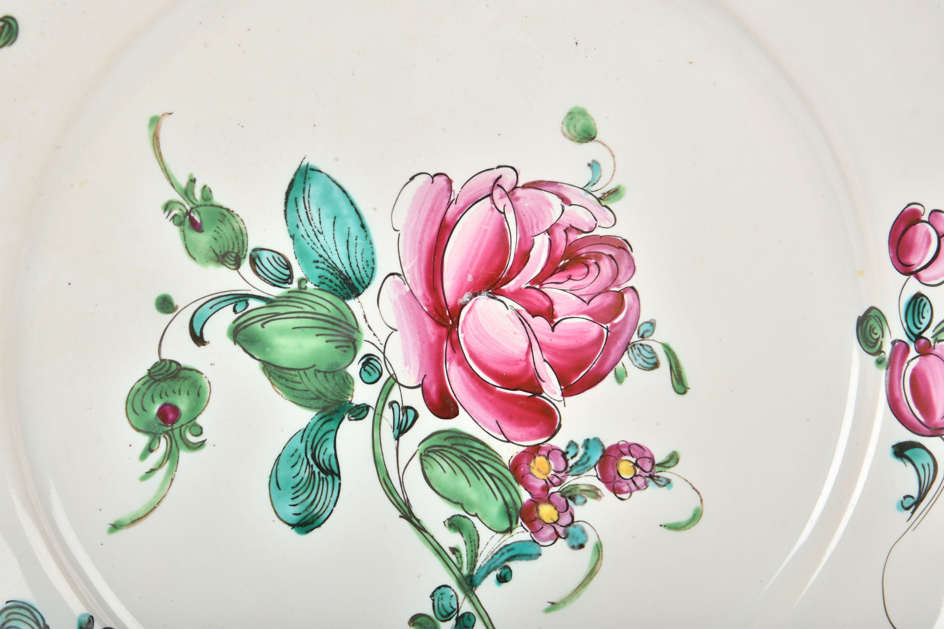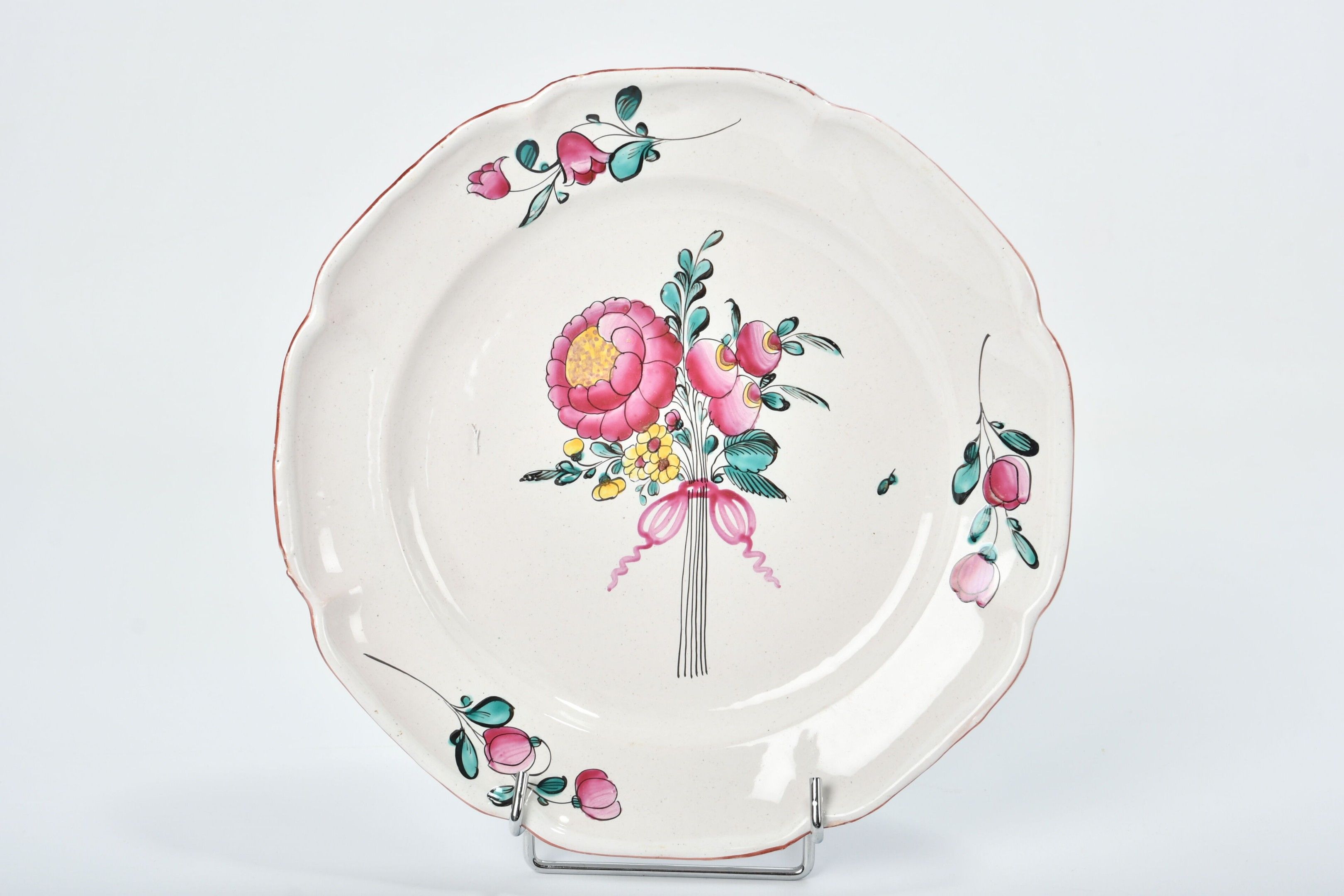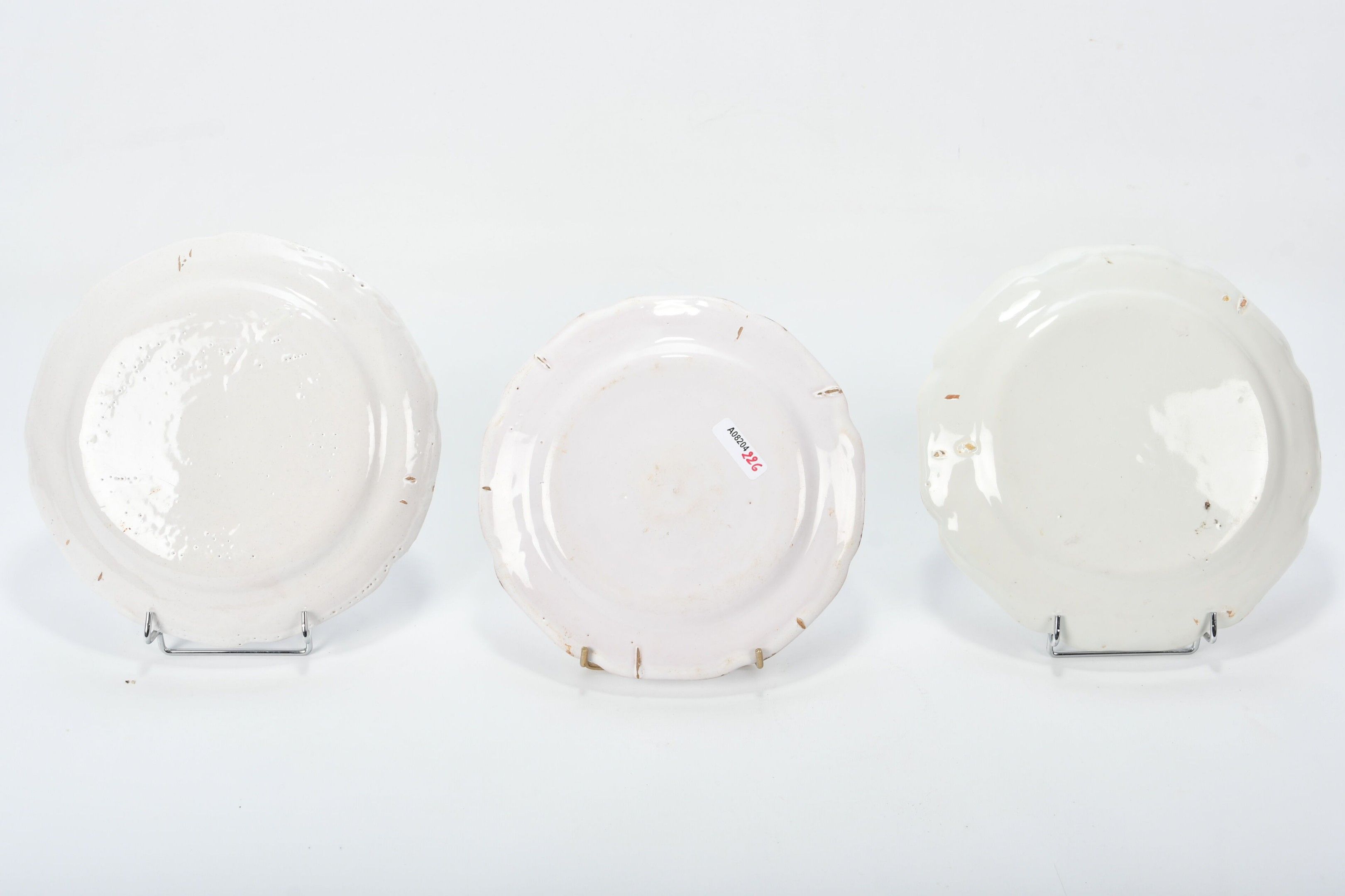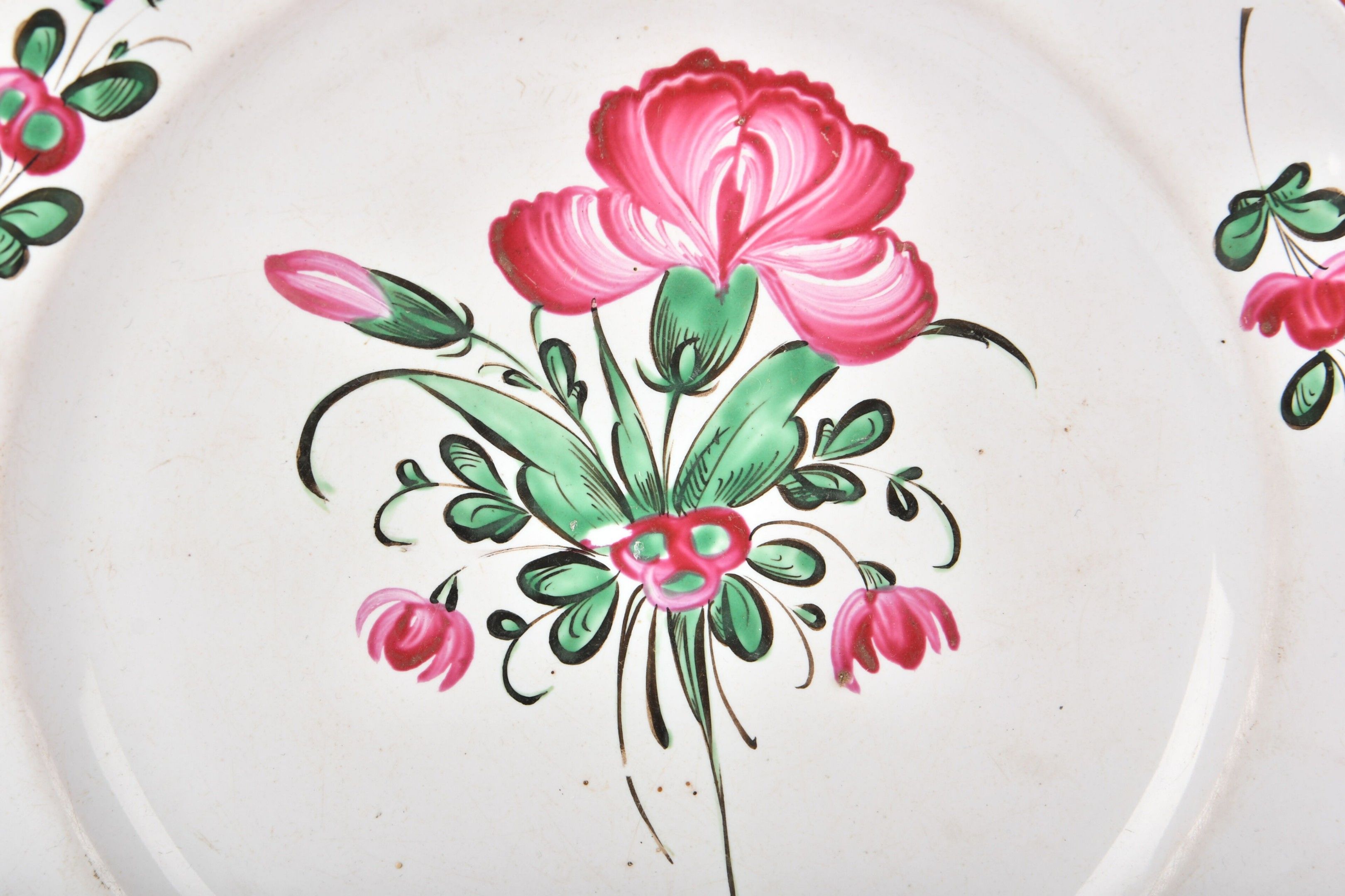 EASTERN earthenware. Earthenware plates (set of three) with contoured rim and polychrome flowers and fillet decoration. Early 19th century. Diam. 24 cm. and Diam. 23 cm. Small glaze chips to the set