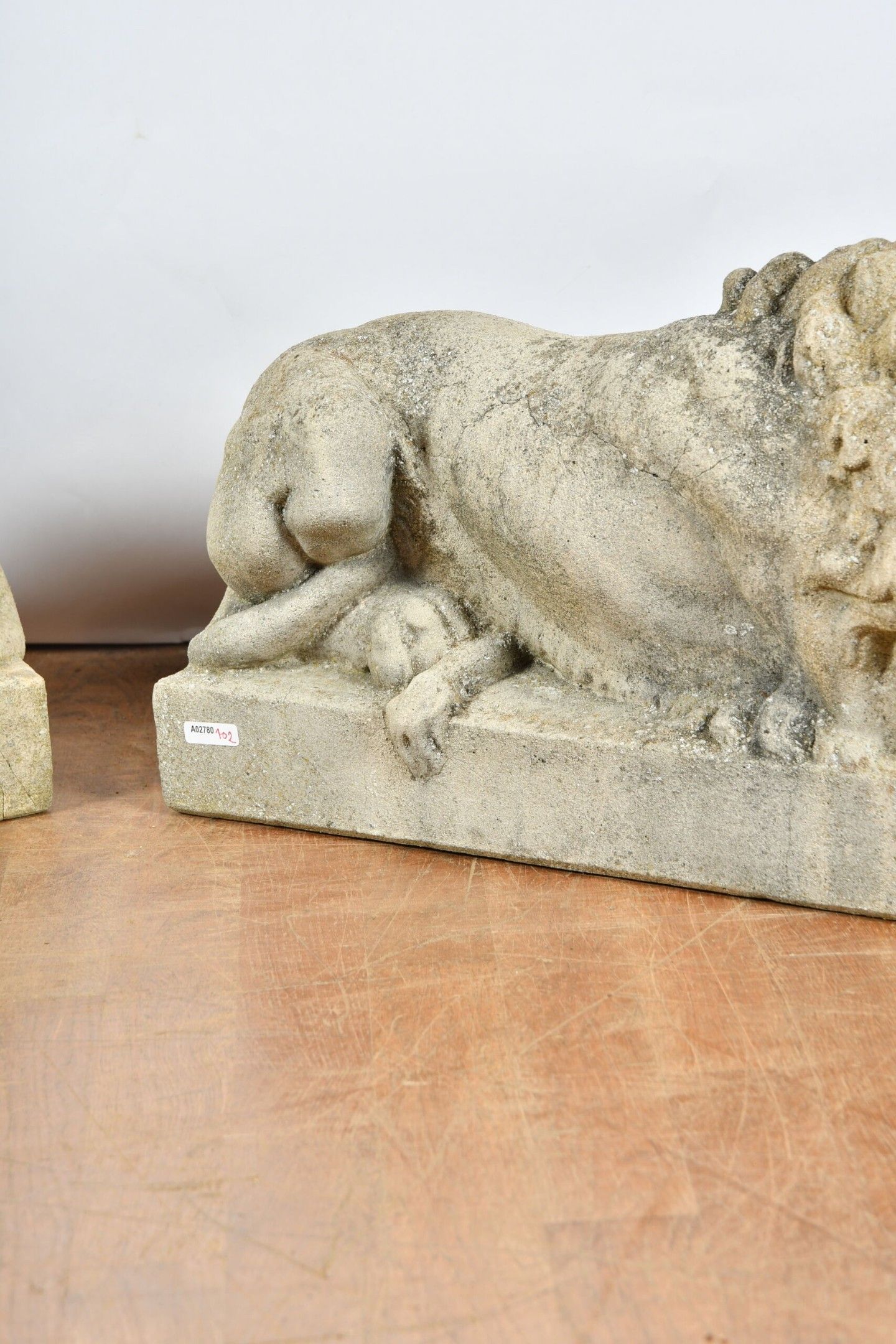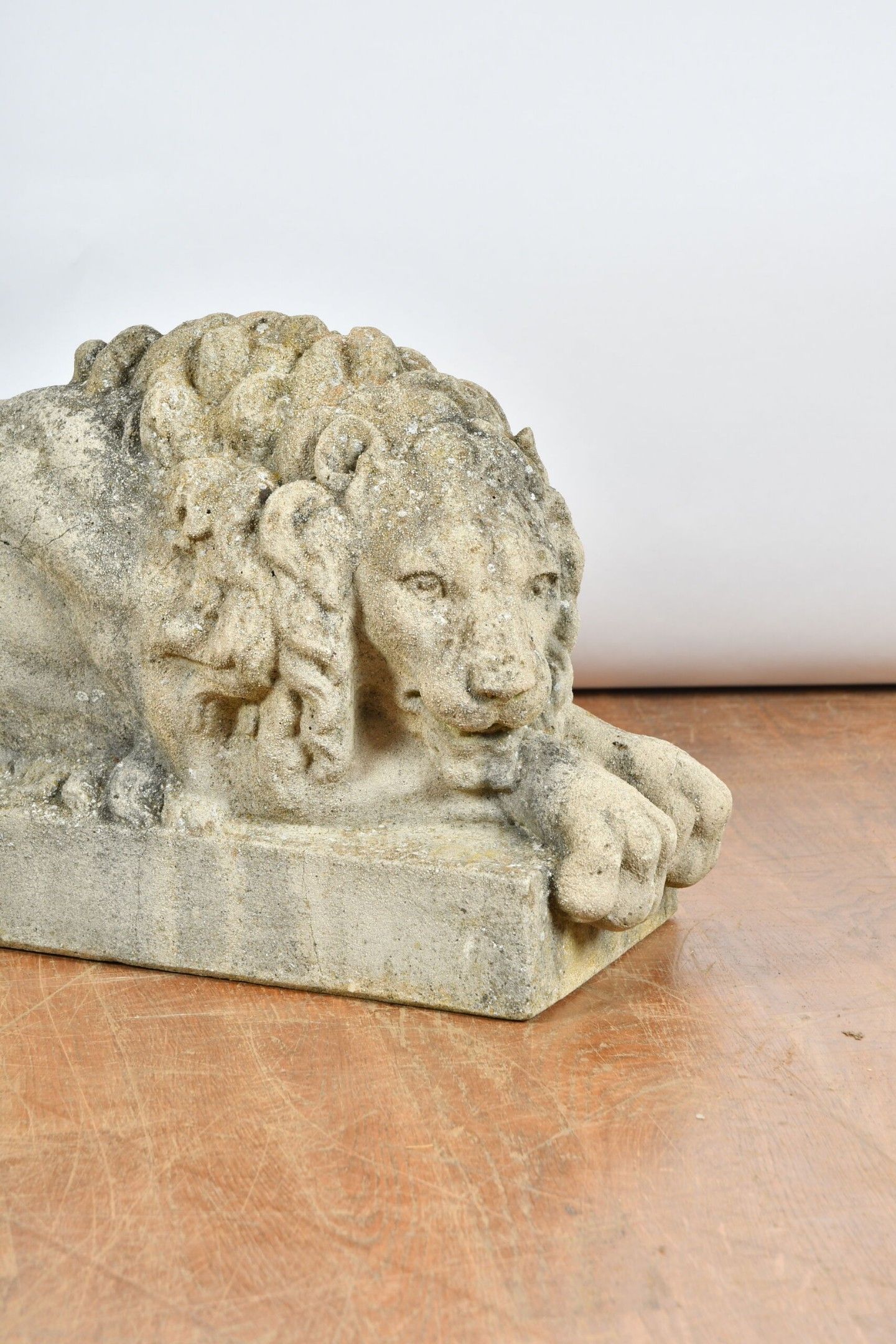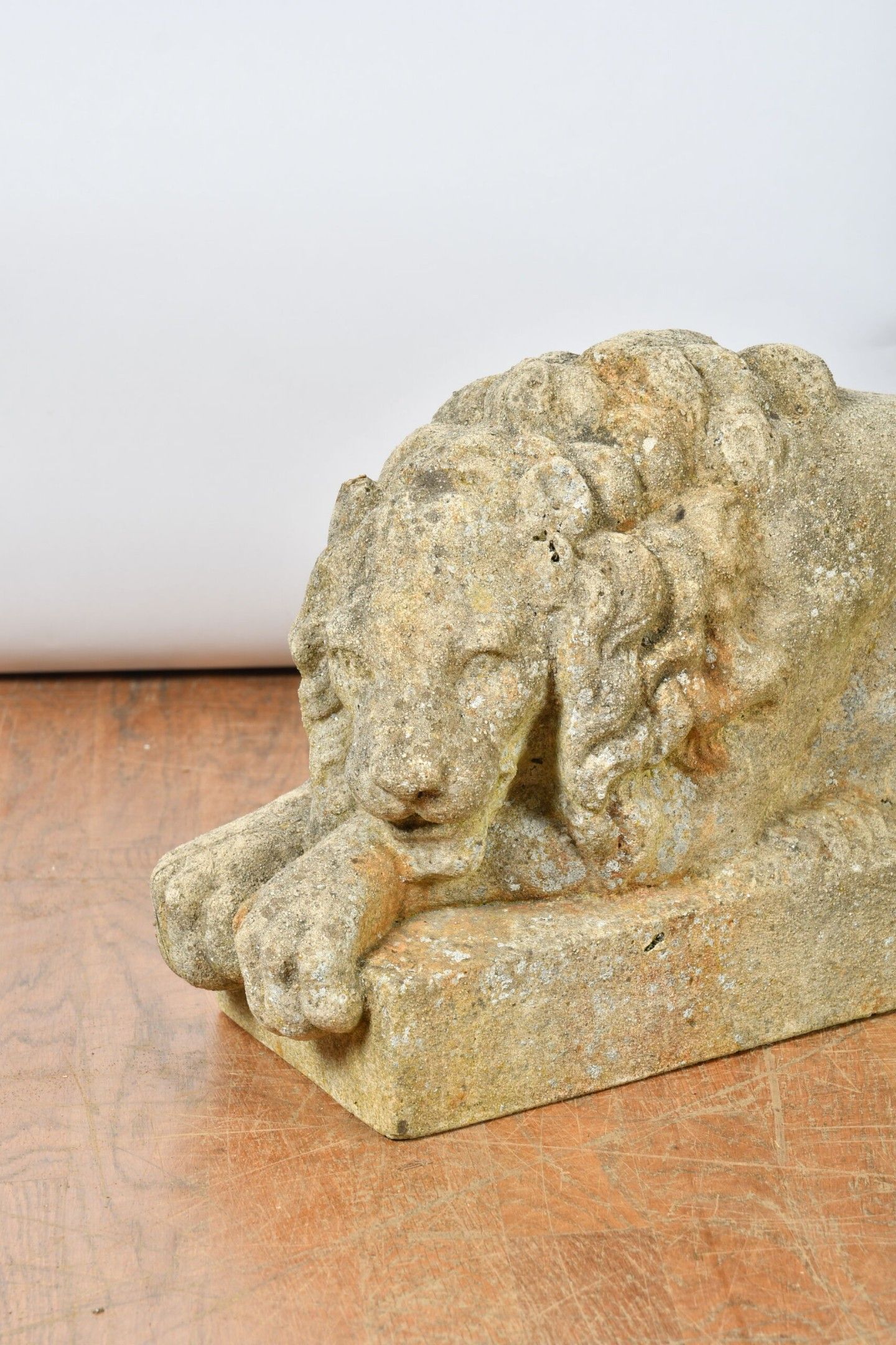 LION STATUES in reconstituted stone (pair of) featuring recl…