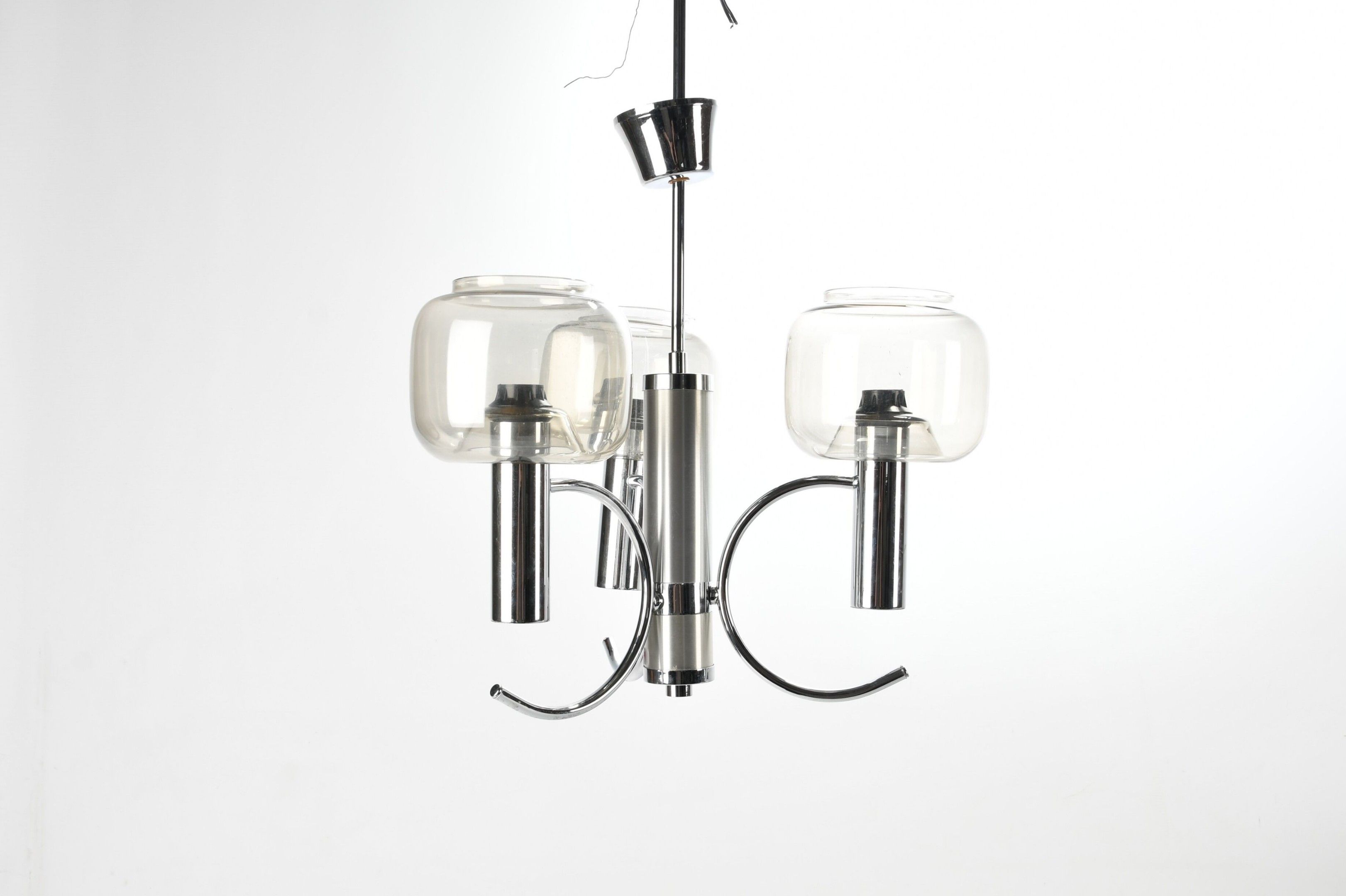 DELMAS circa 1970. Three-light chrome-plated suspension chan…