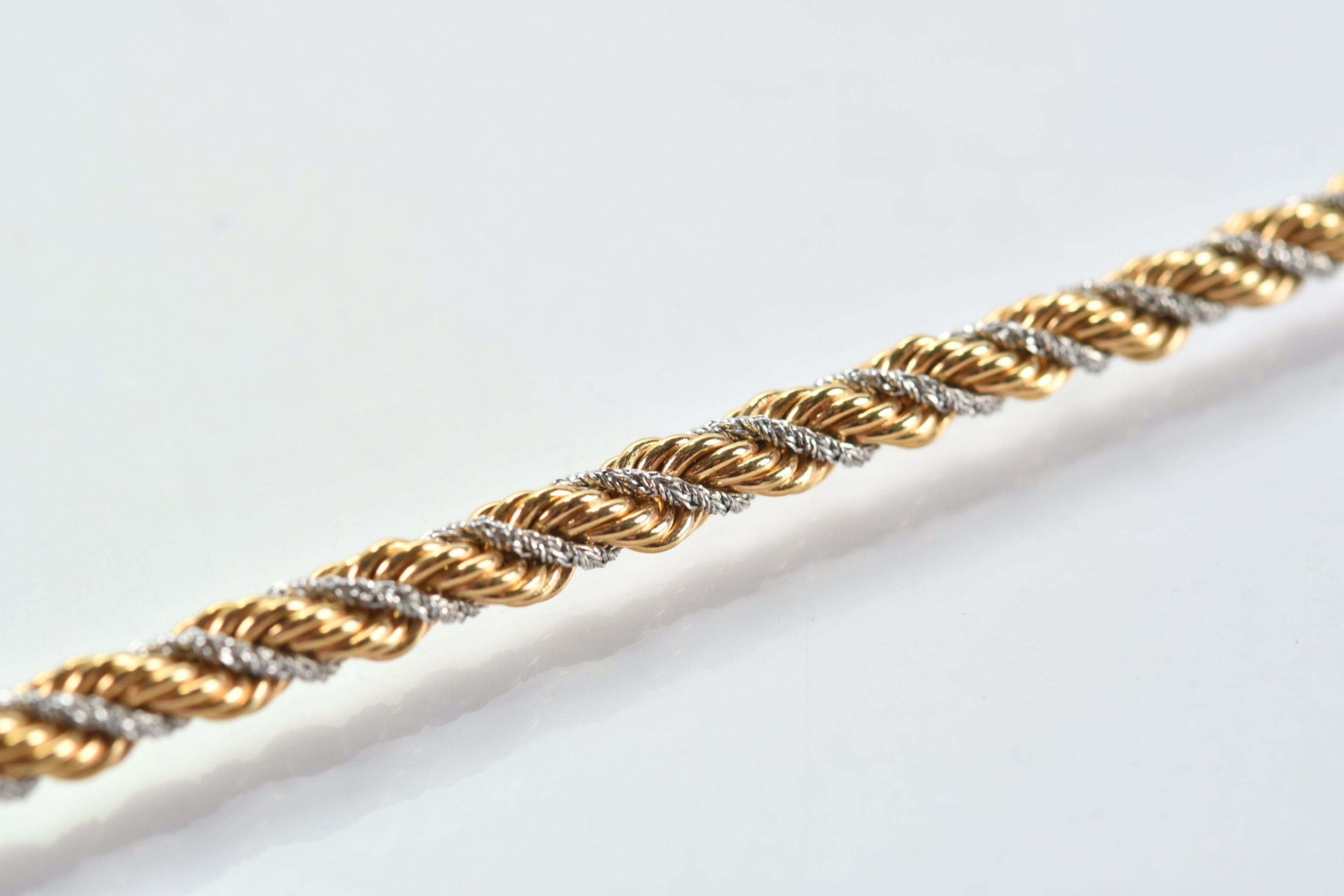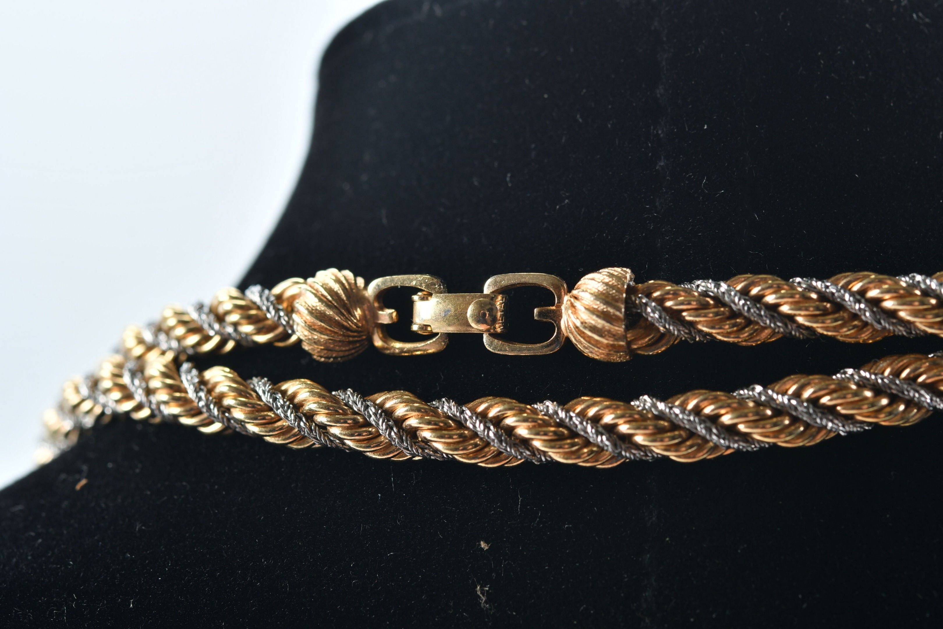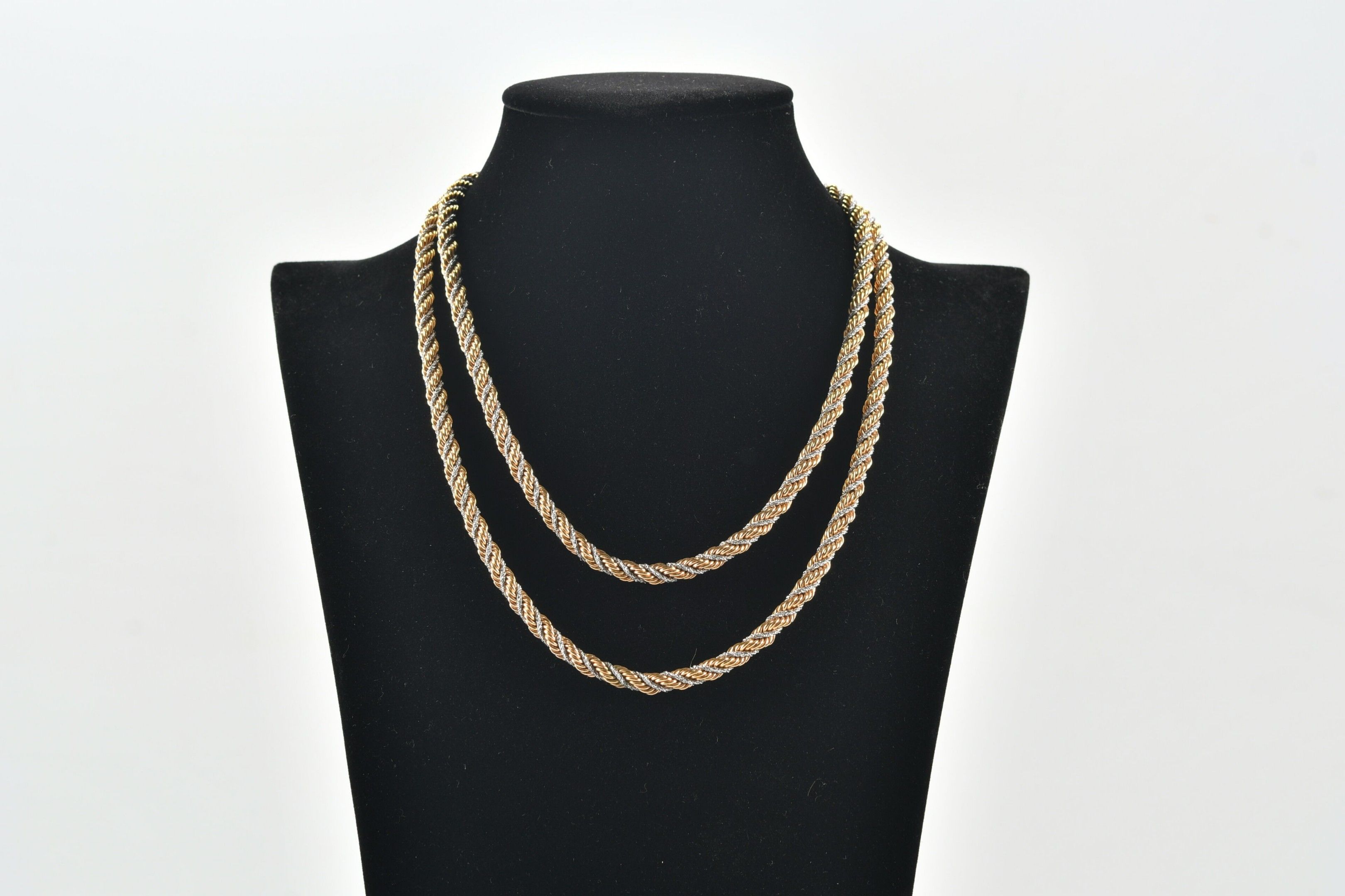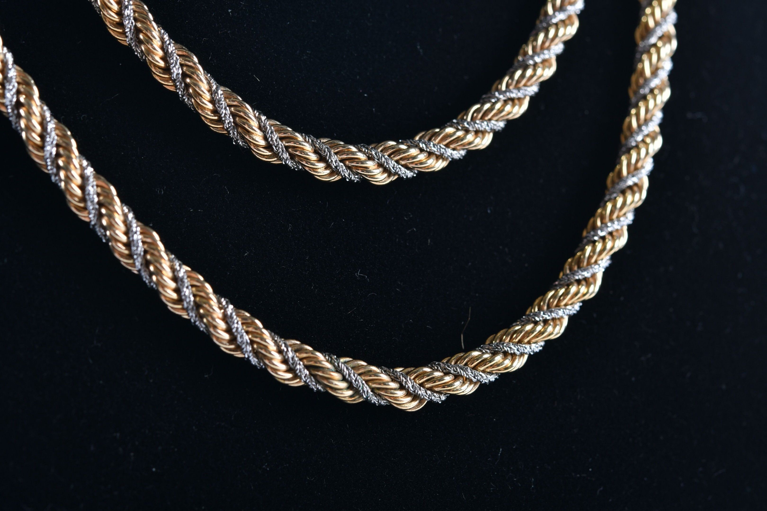 BIG. Twisted necklace in two-tone gold and silver metal. Length 90 cm