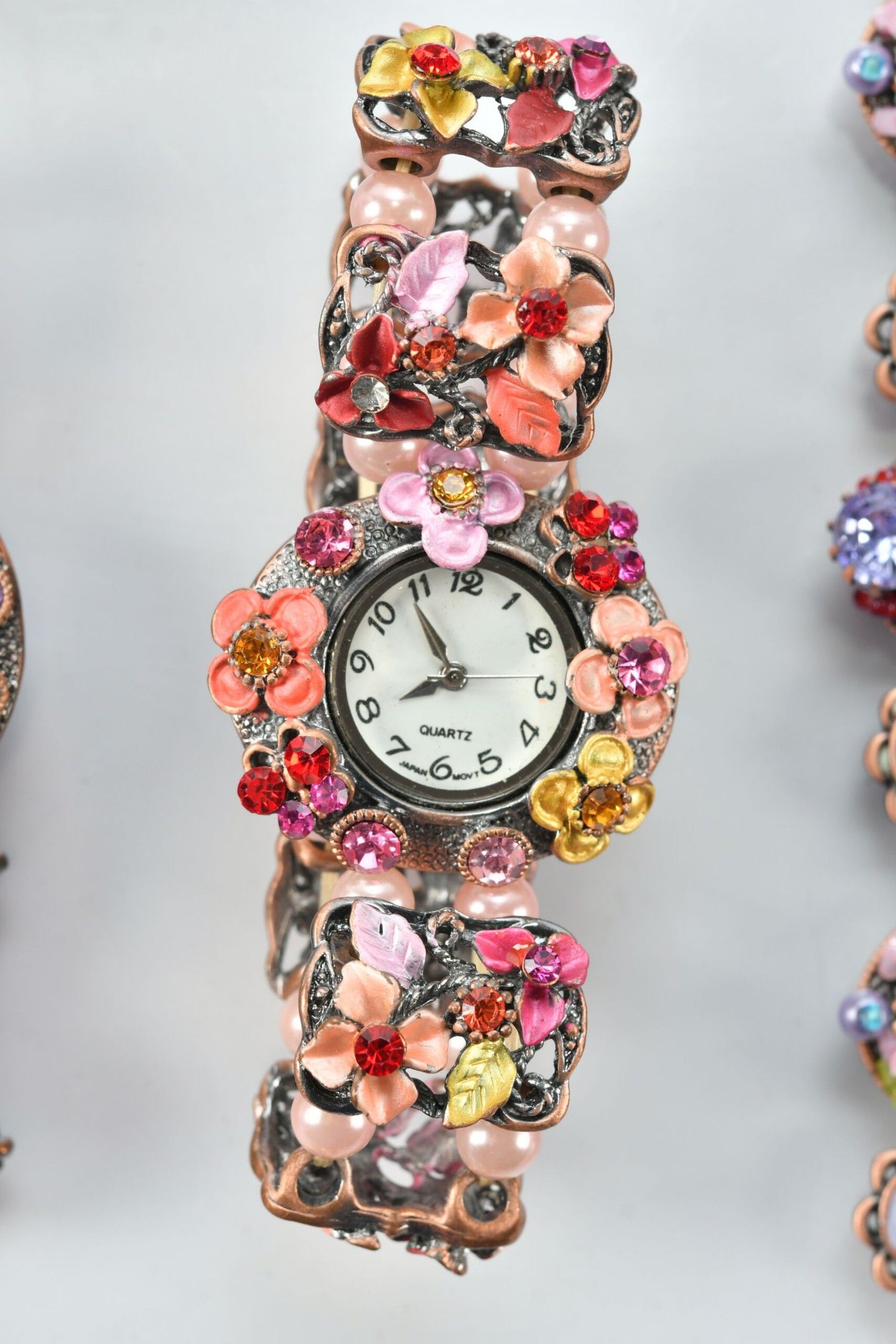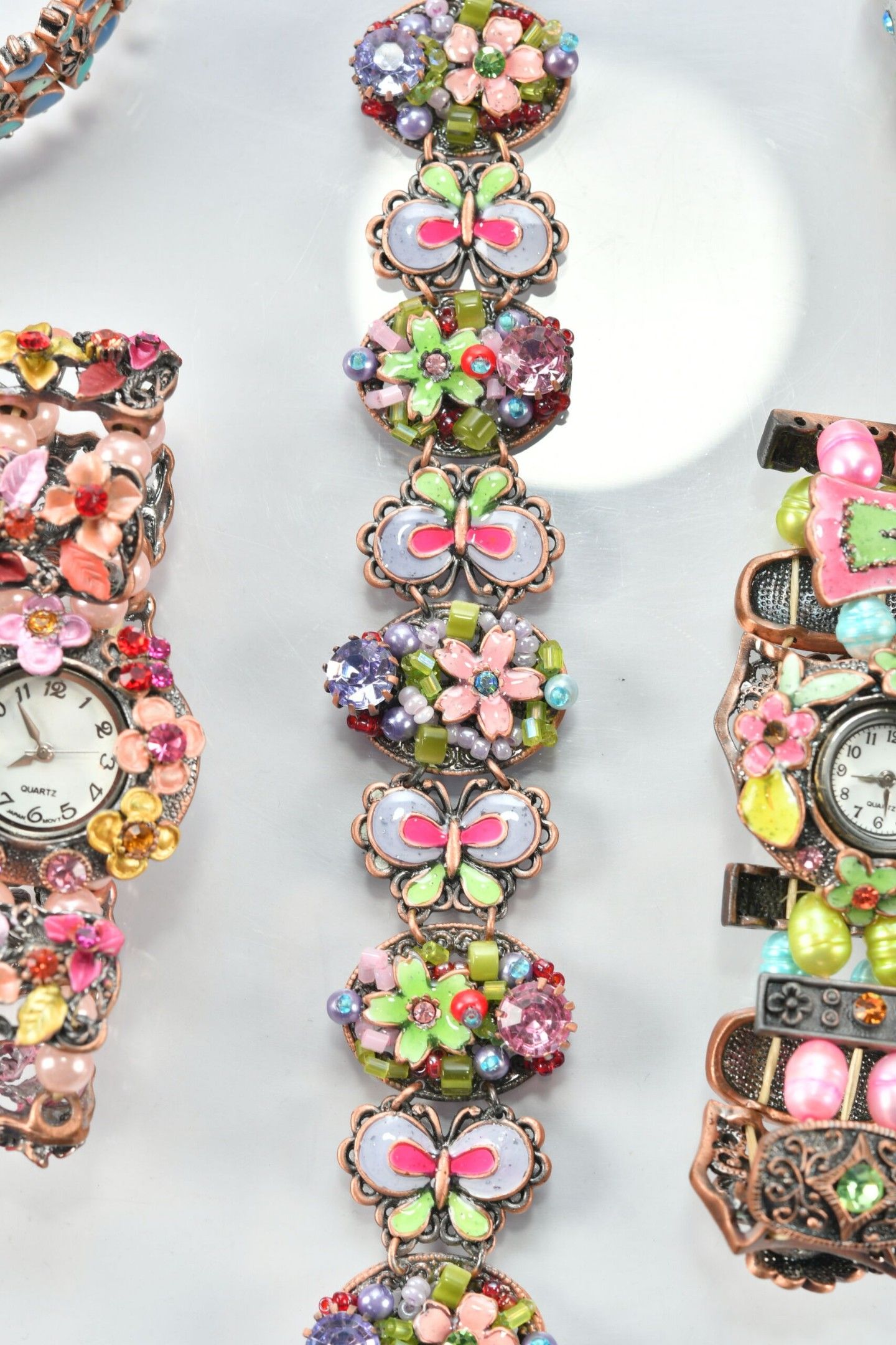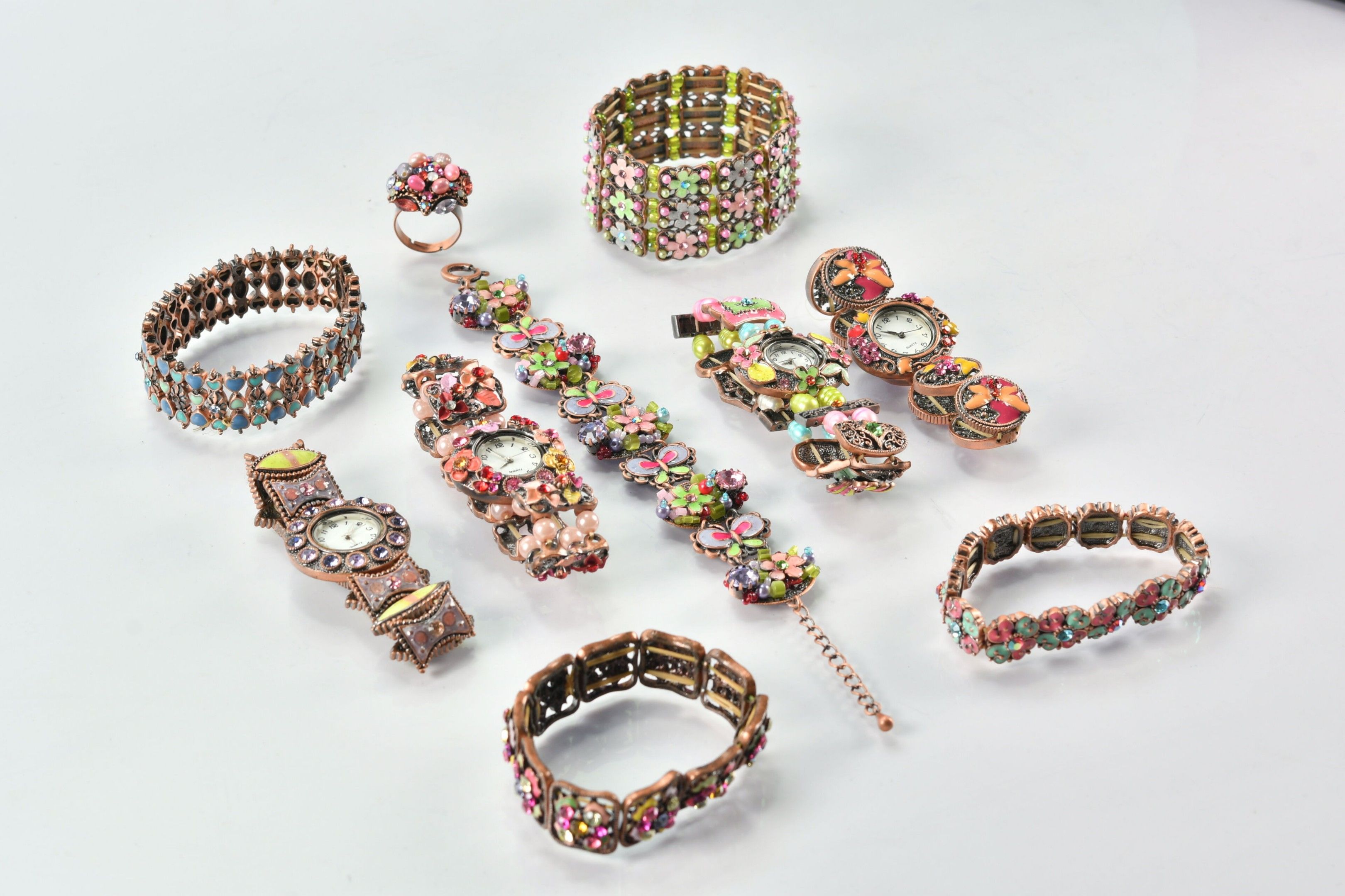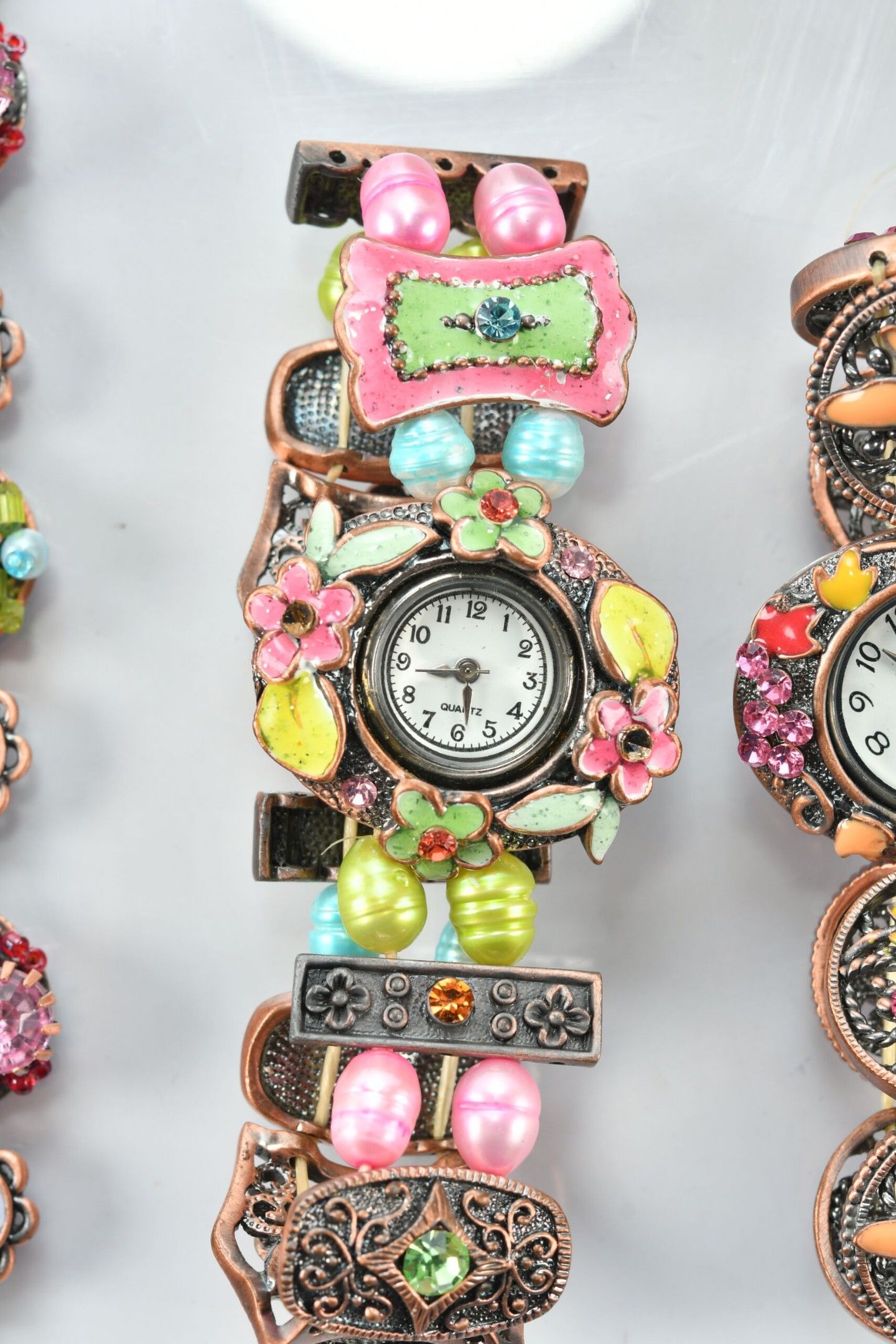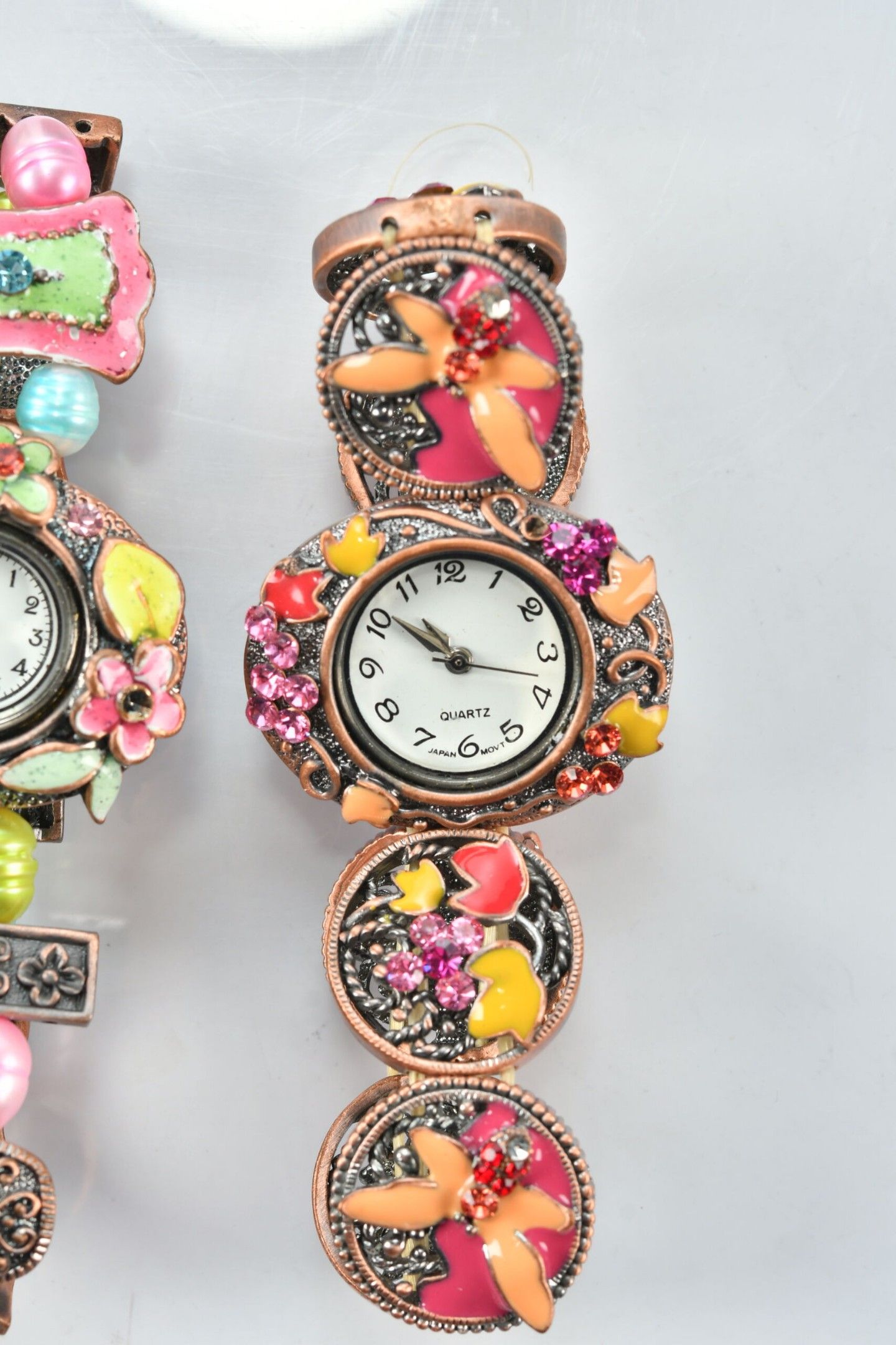 FANTAISIES JEWELLERY (lot of) metal, some enamelled, comprising: four watches, five bracelets and a ring