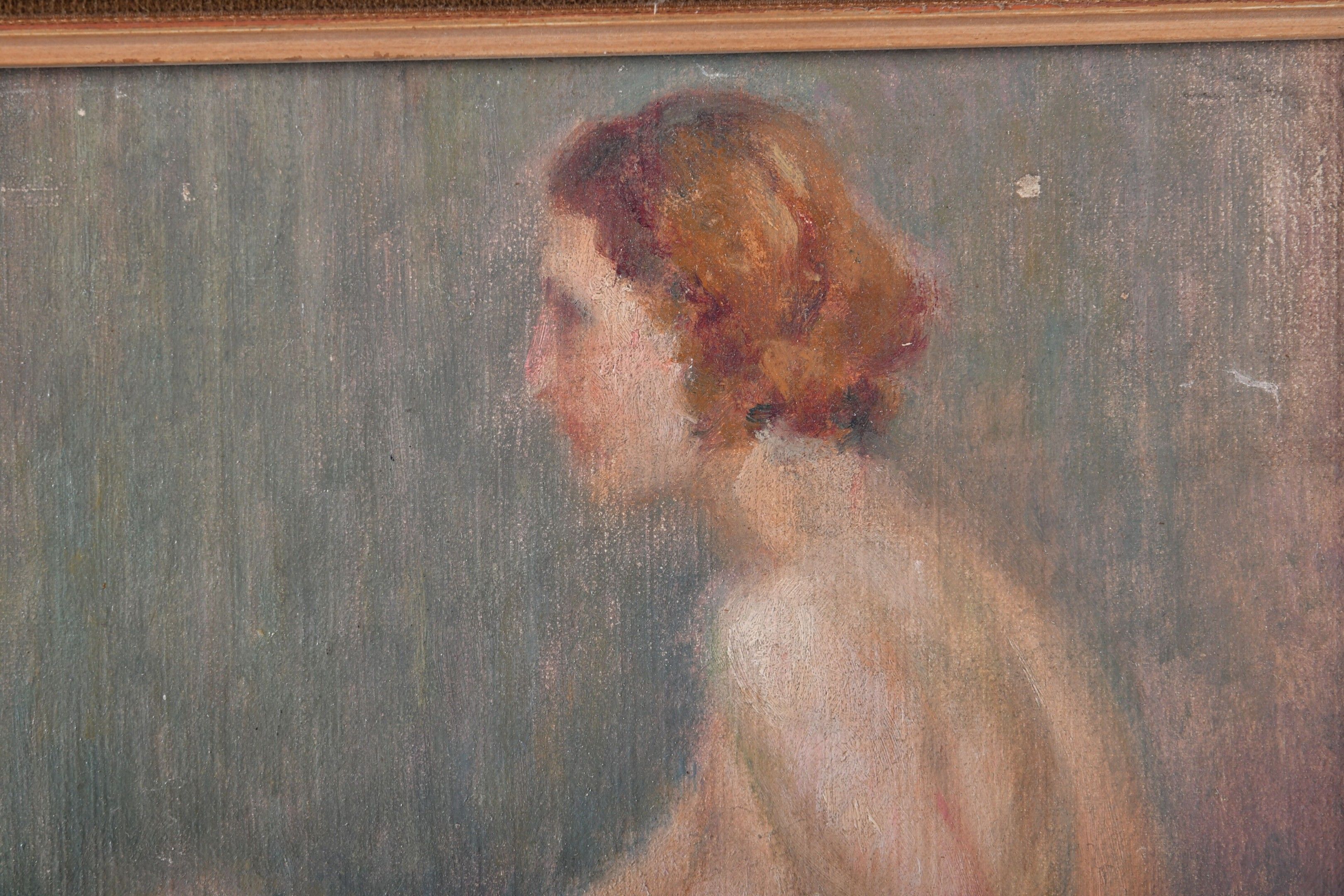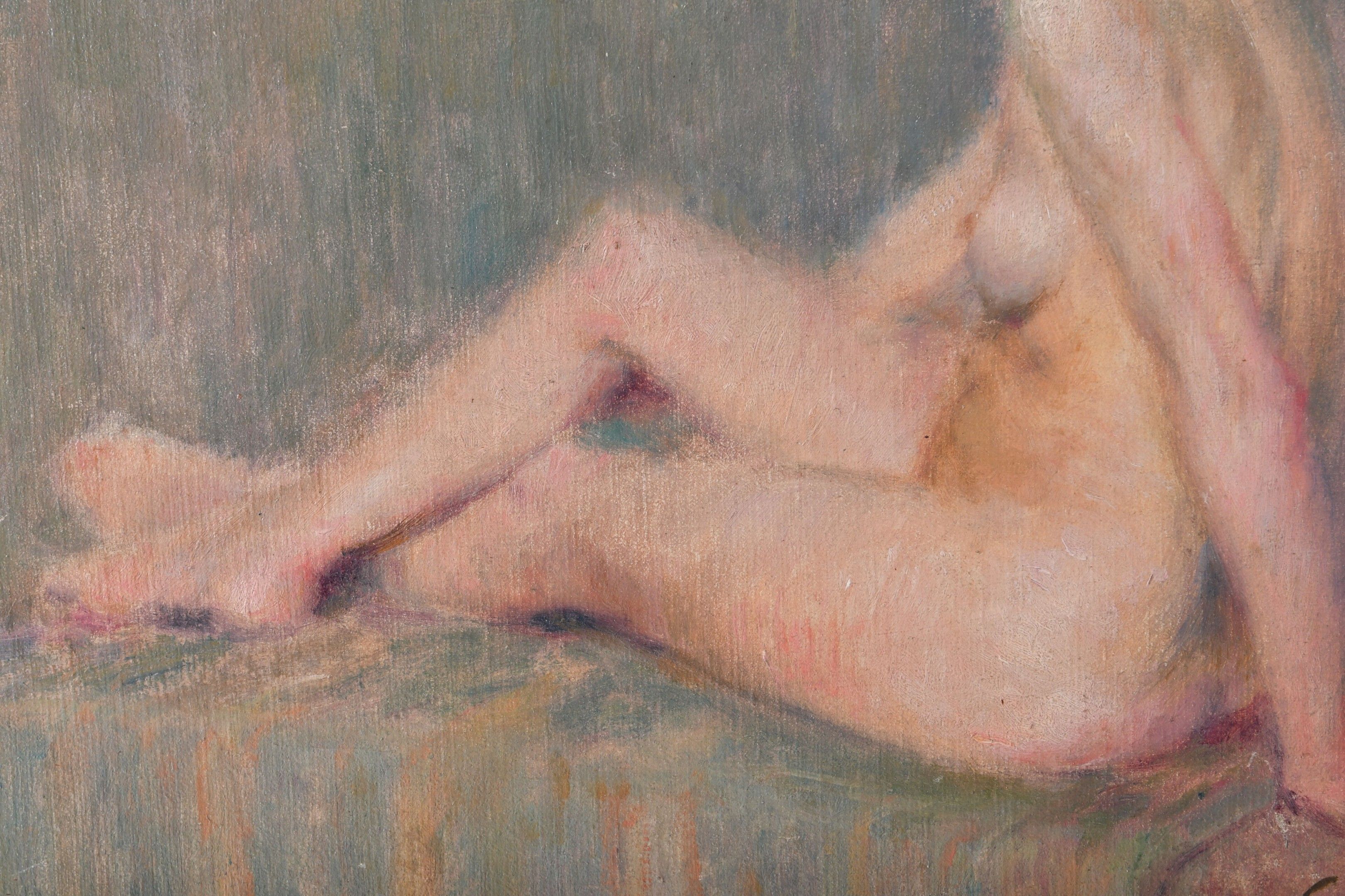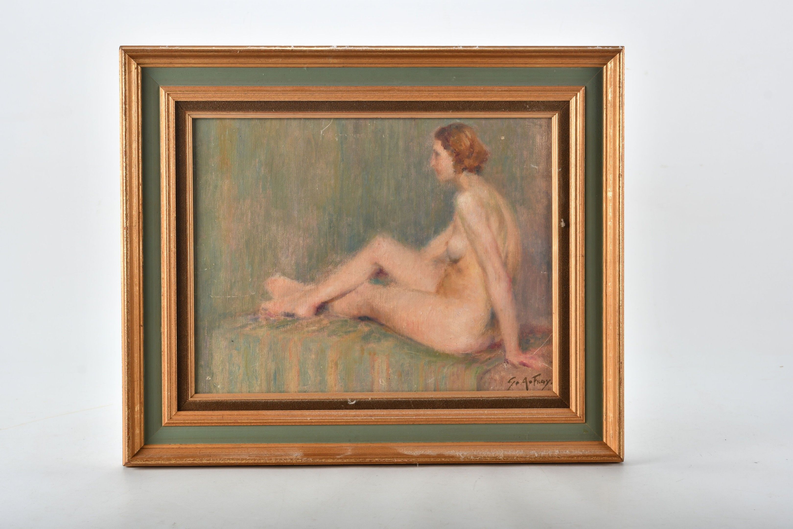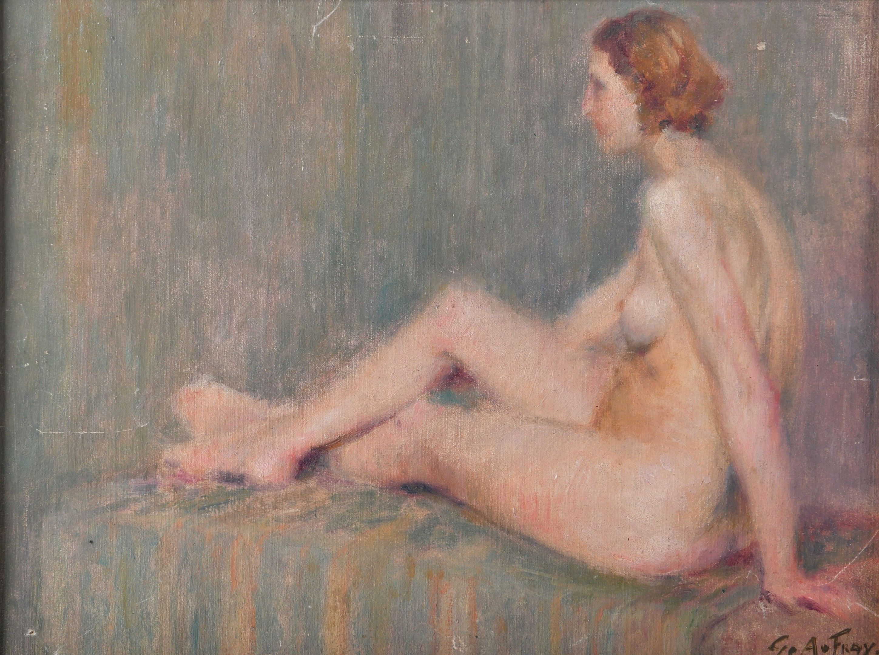 AUFRAY, Georges (1864-1941). Seated female nude. Oil on canvas signed lower right. 26 x 34 cm