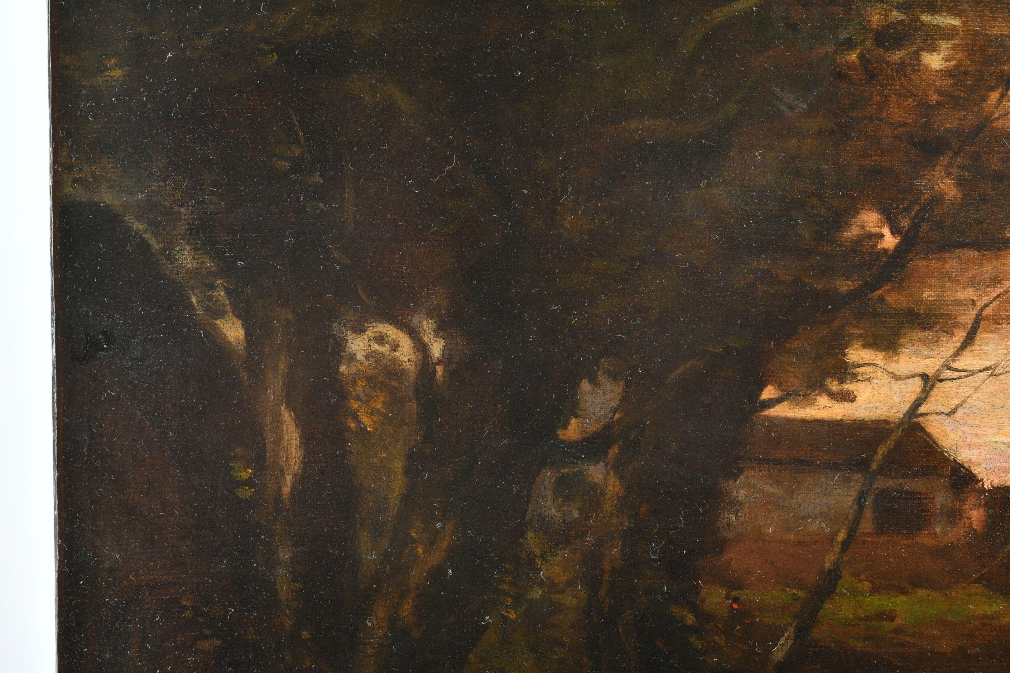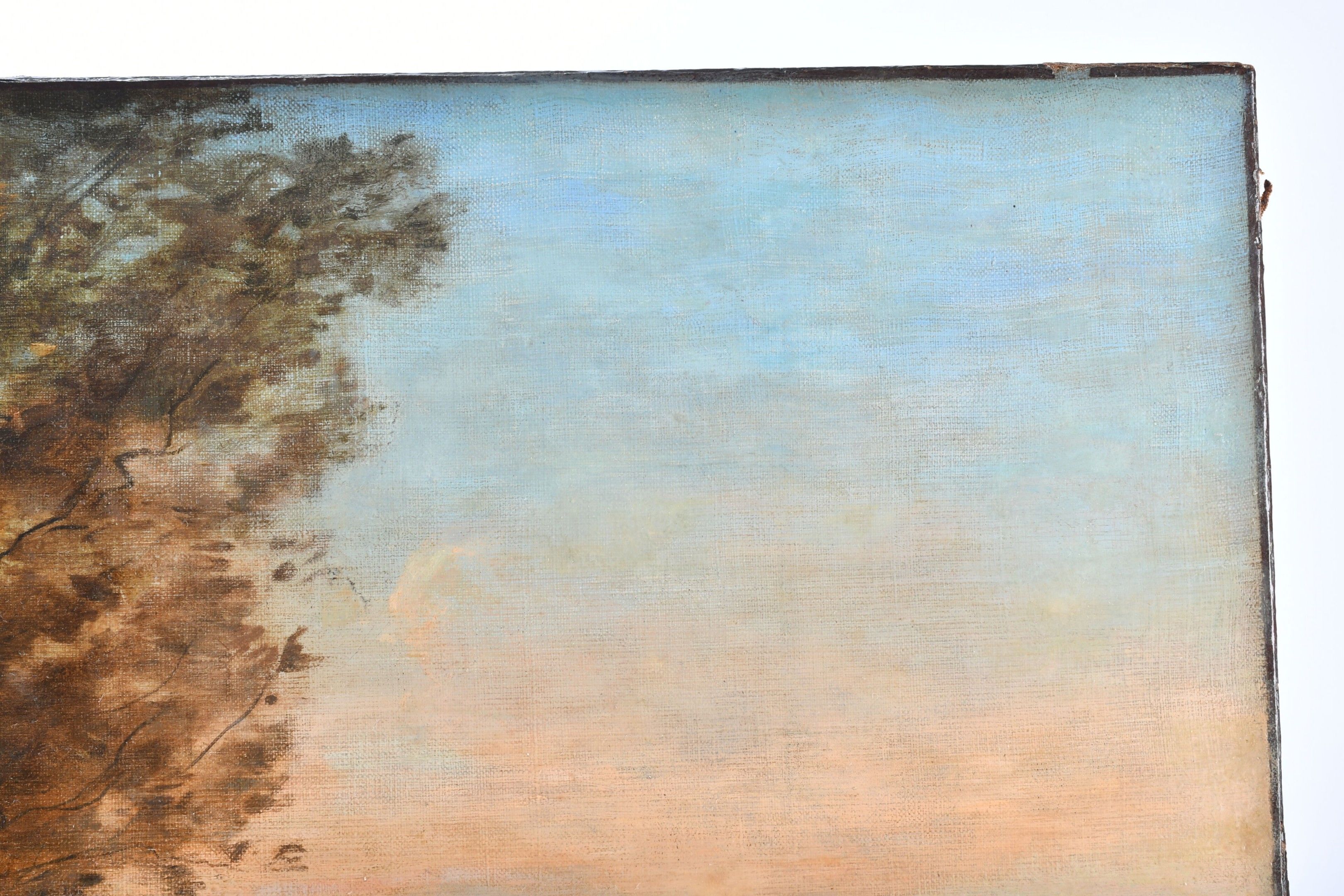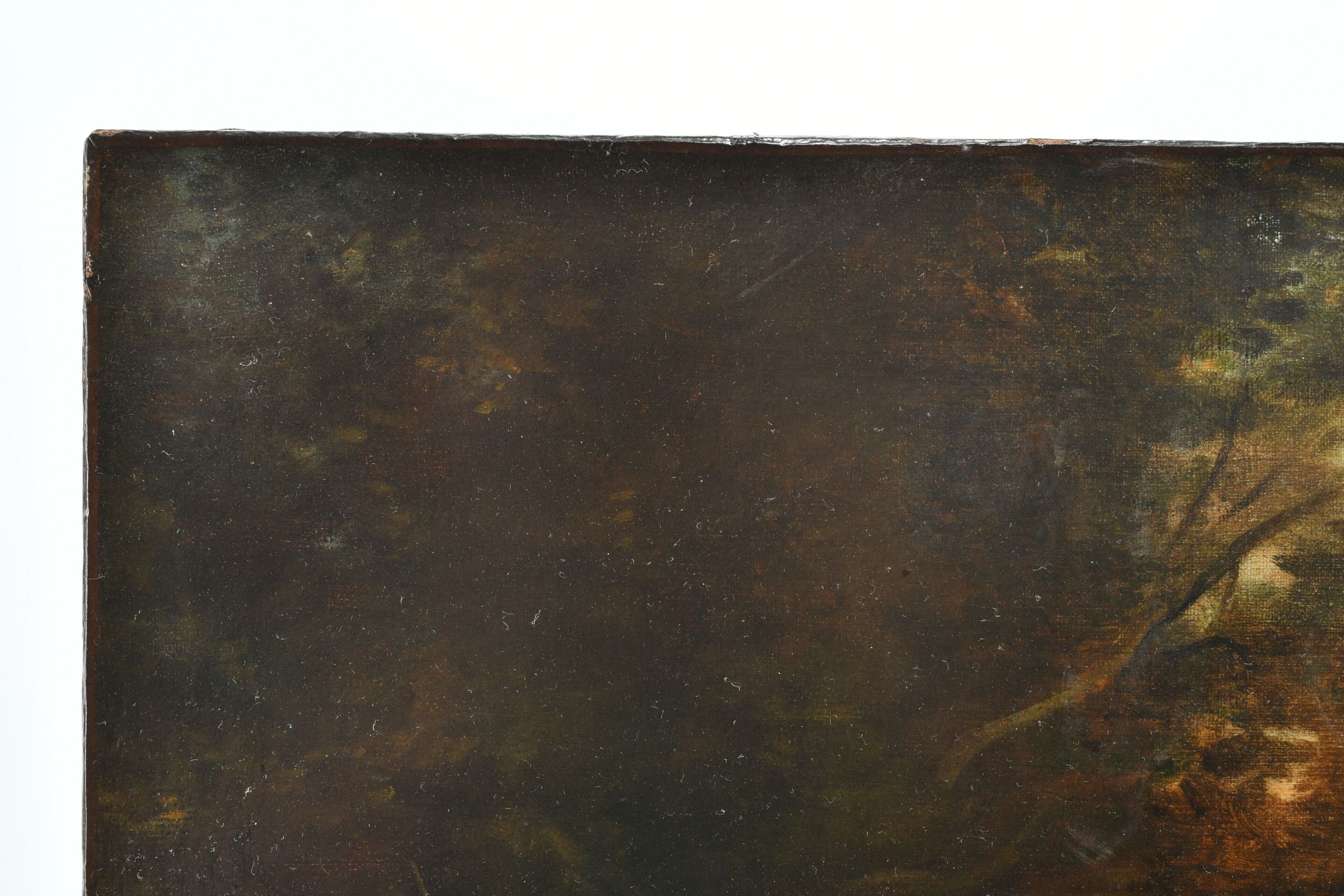 19th century FRENCH SCHOOL. Landscape with a boat. Oil on canvas, signed "Corot" lower left. Size 63 x 80 cm. Original wood frame and gilt composition.