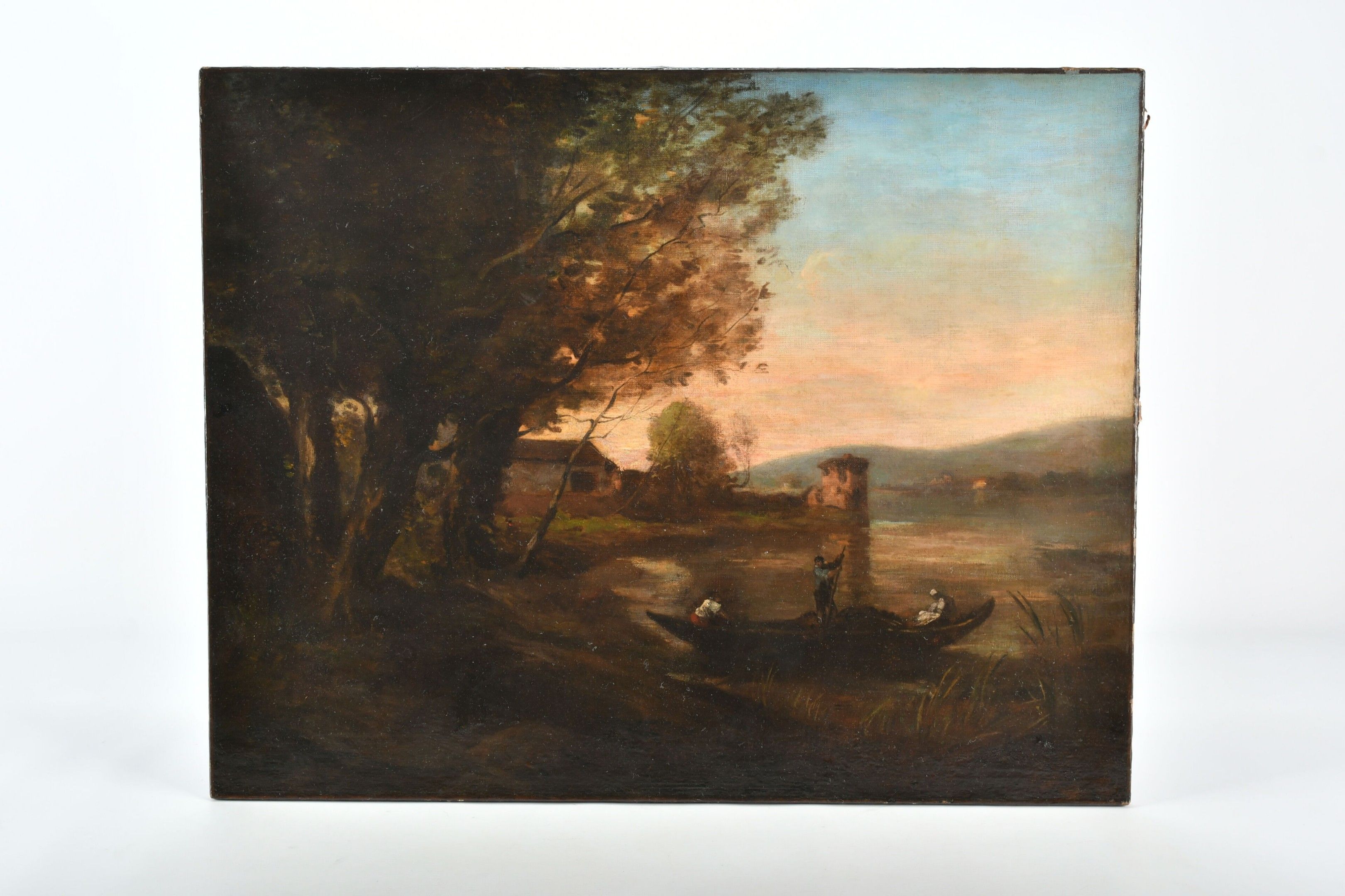19th century FRENCH SCHOOL. Landscape with a boat.