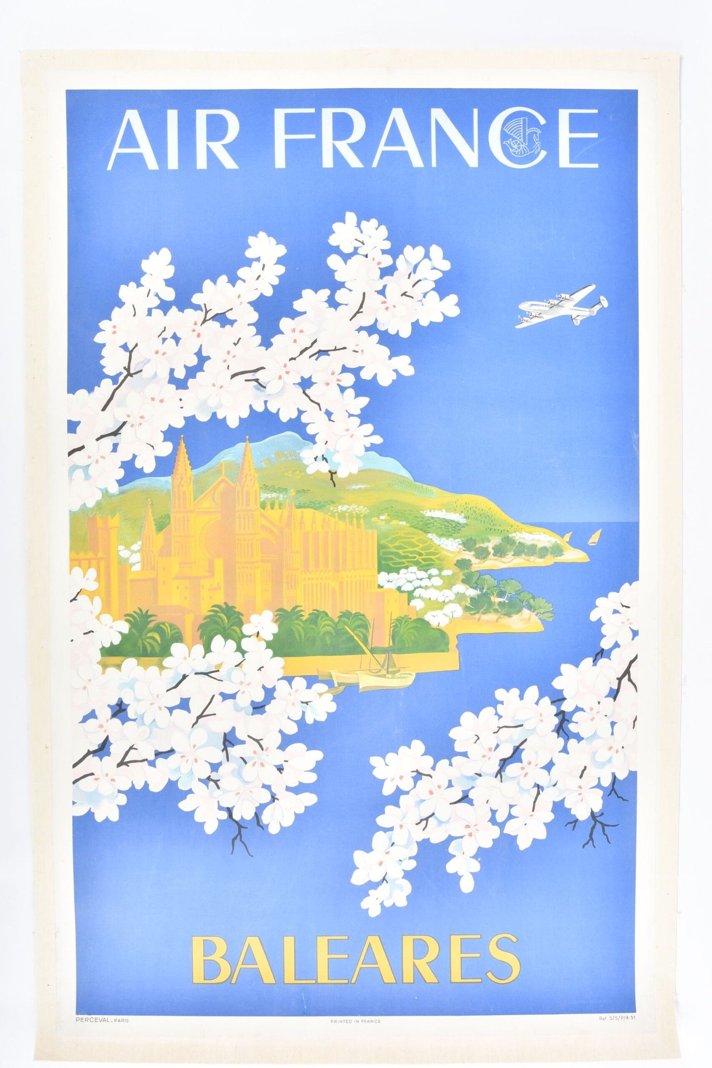 POSTER: Air France - Balearics, illustrated by Lucien Boucher and published by Perceval in Paris. Mounted on canvas. 100cm x 63cm.
