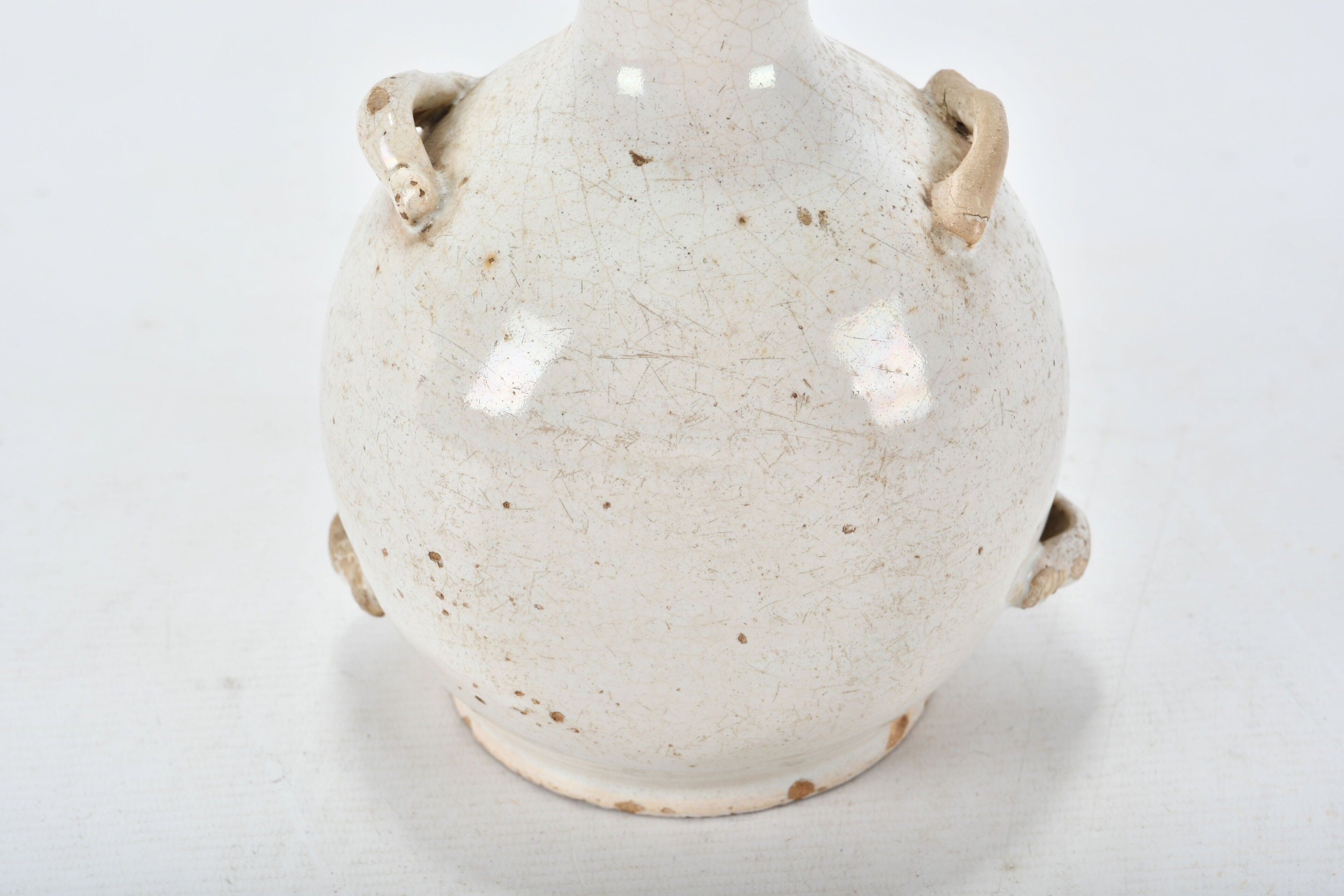 Ovoid goblet with high neck and four handles in glazed earth…