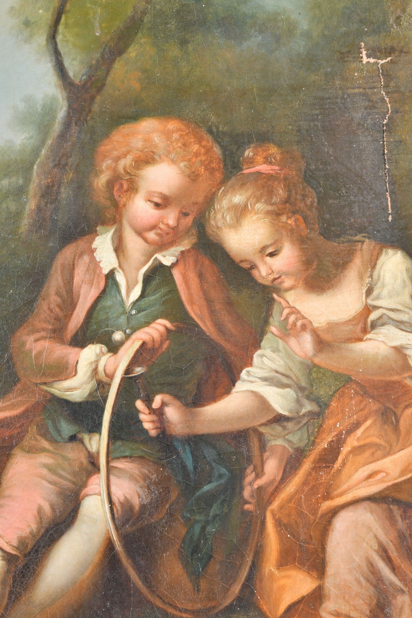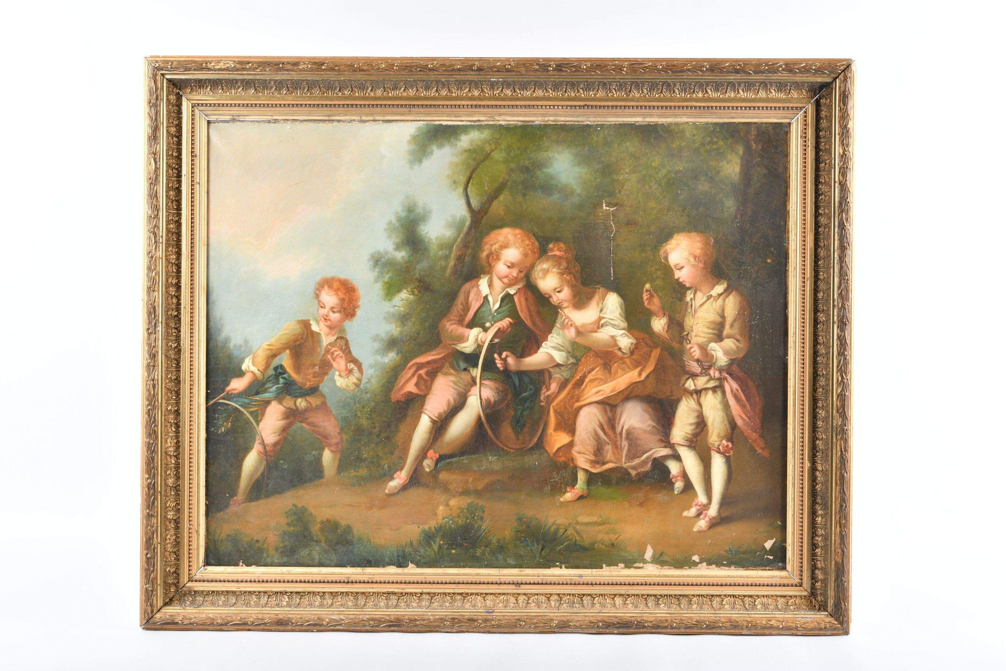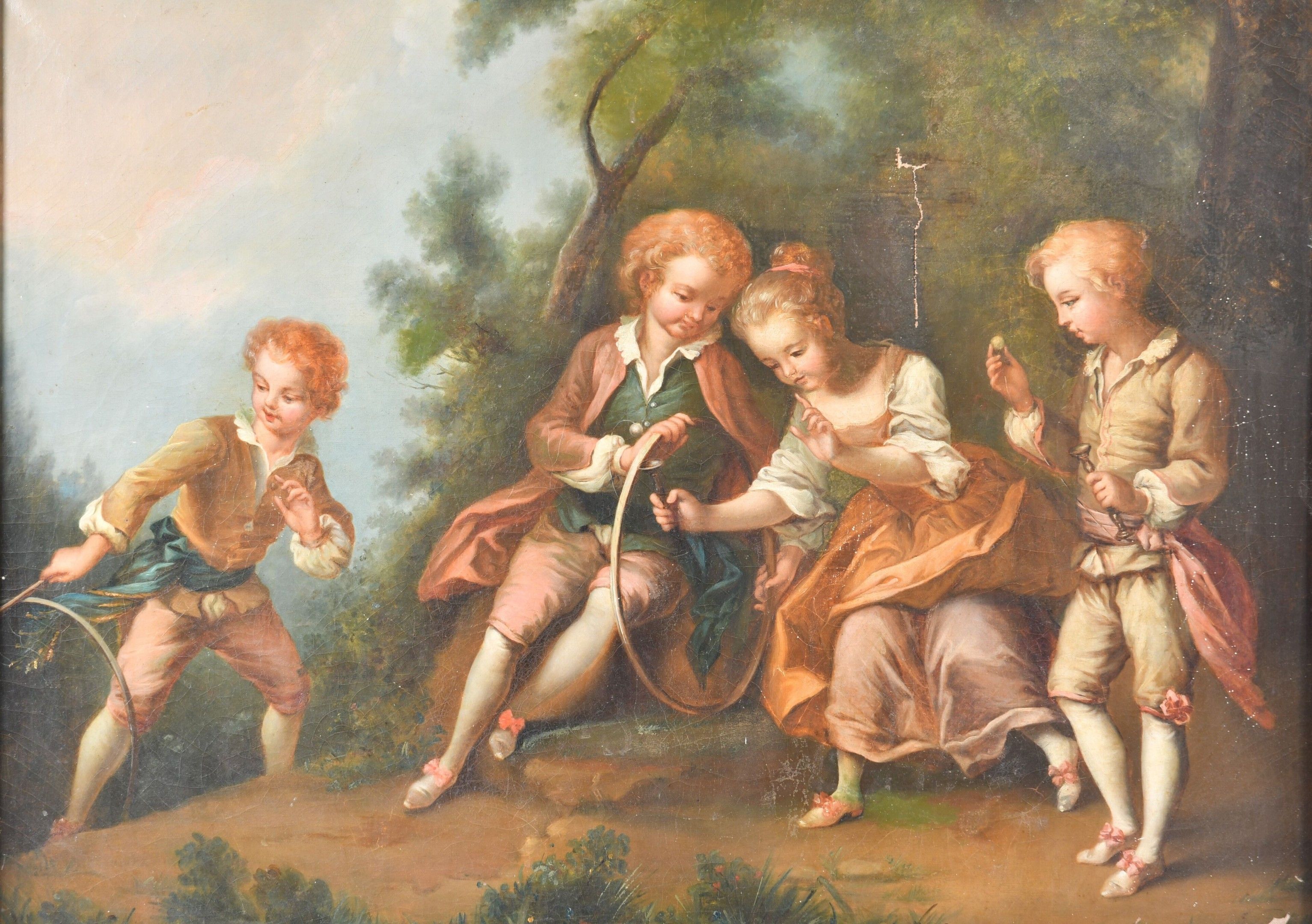 VALLIER, Lina (1811-1878) after LANCRET. Putti playing. Oil on canvas. 65 x 85 cm (tears and chips)