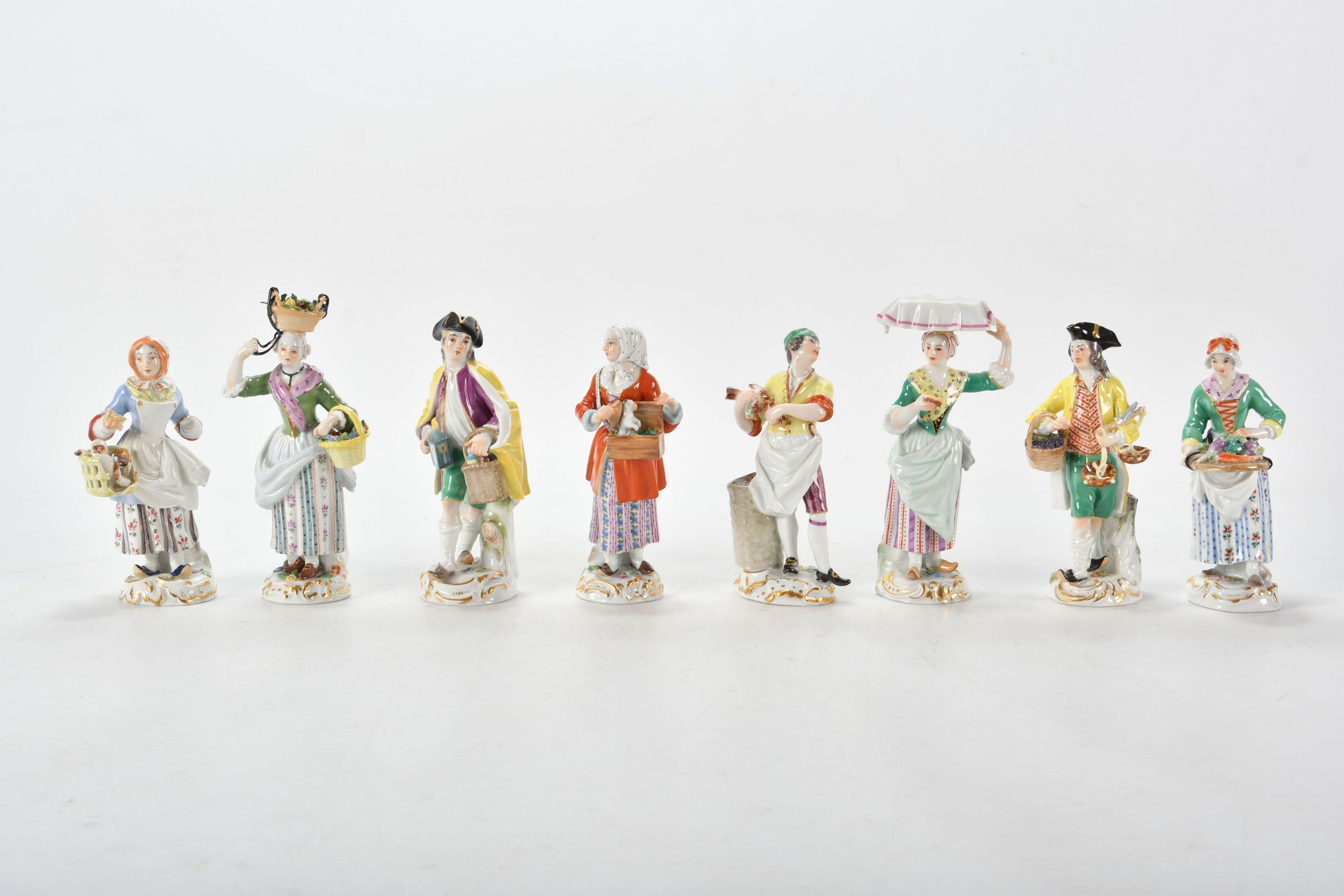 MEISSEN. Suite of eight porcelain subjects with polychrome e…