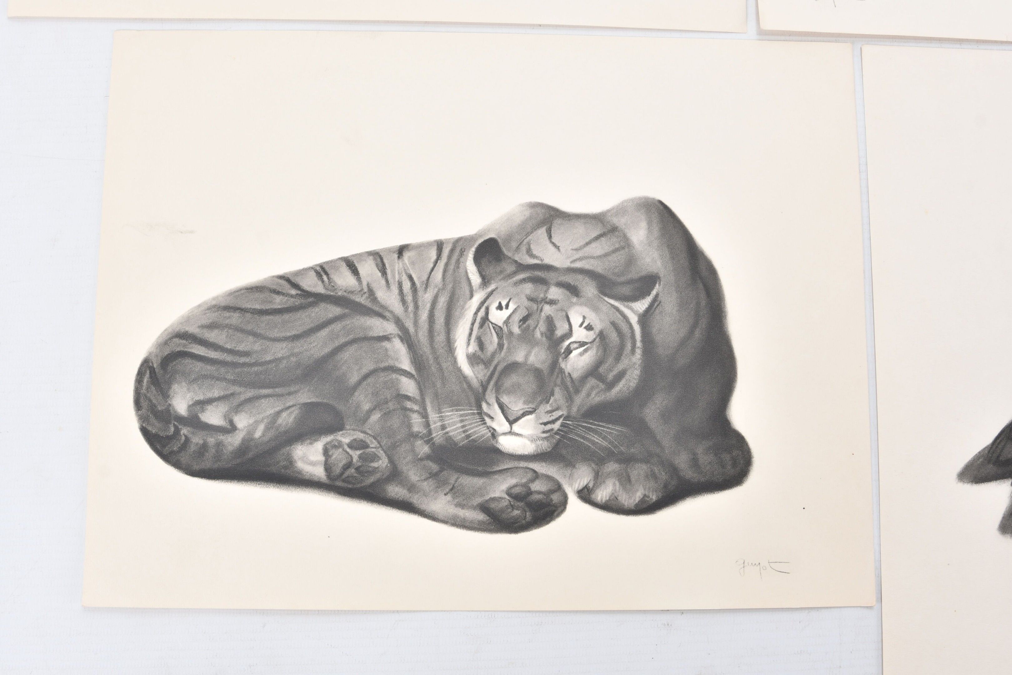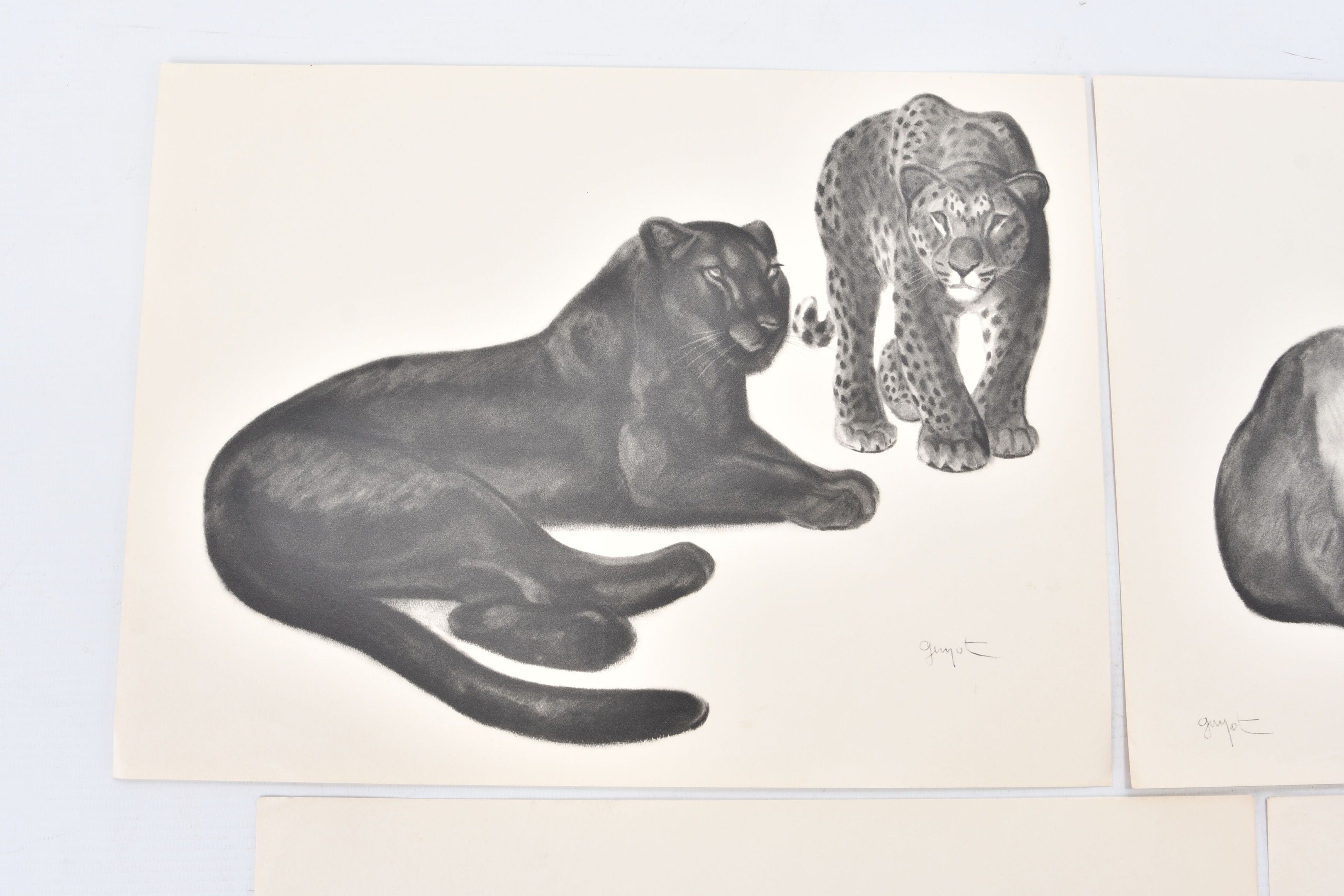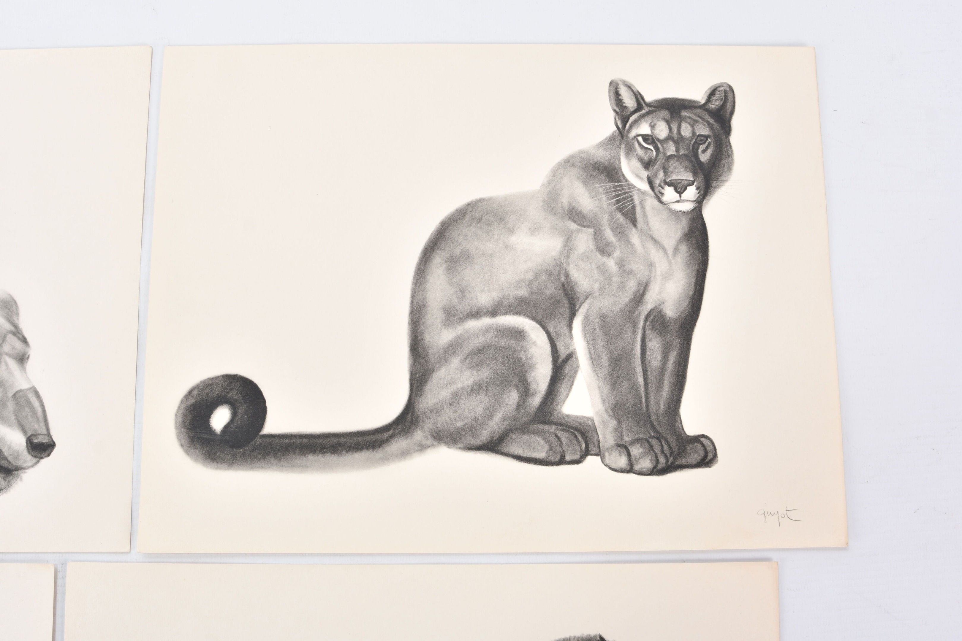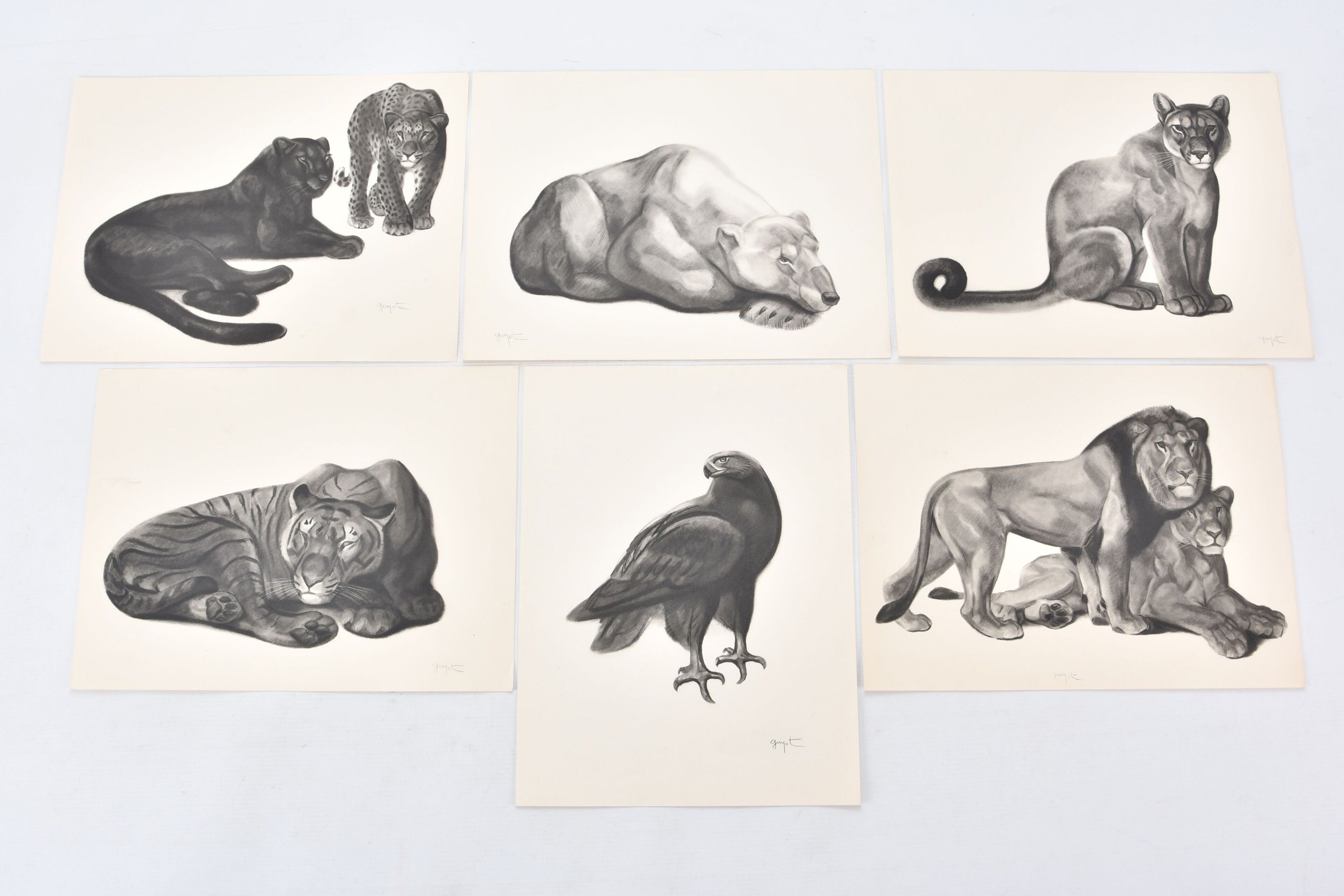 GUYOT Georges Lucien (1885-1973) Suite of six reproductions of drawings depicting wild animals, bears and eagles. Publisher LEMATTE et BOINOT 1937. 24 x 32 cm (stains)