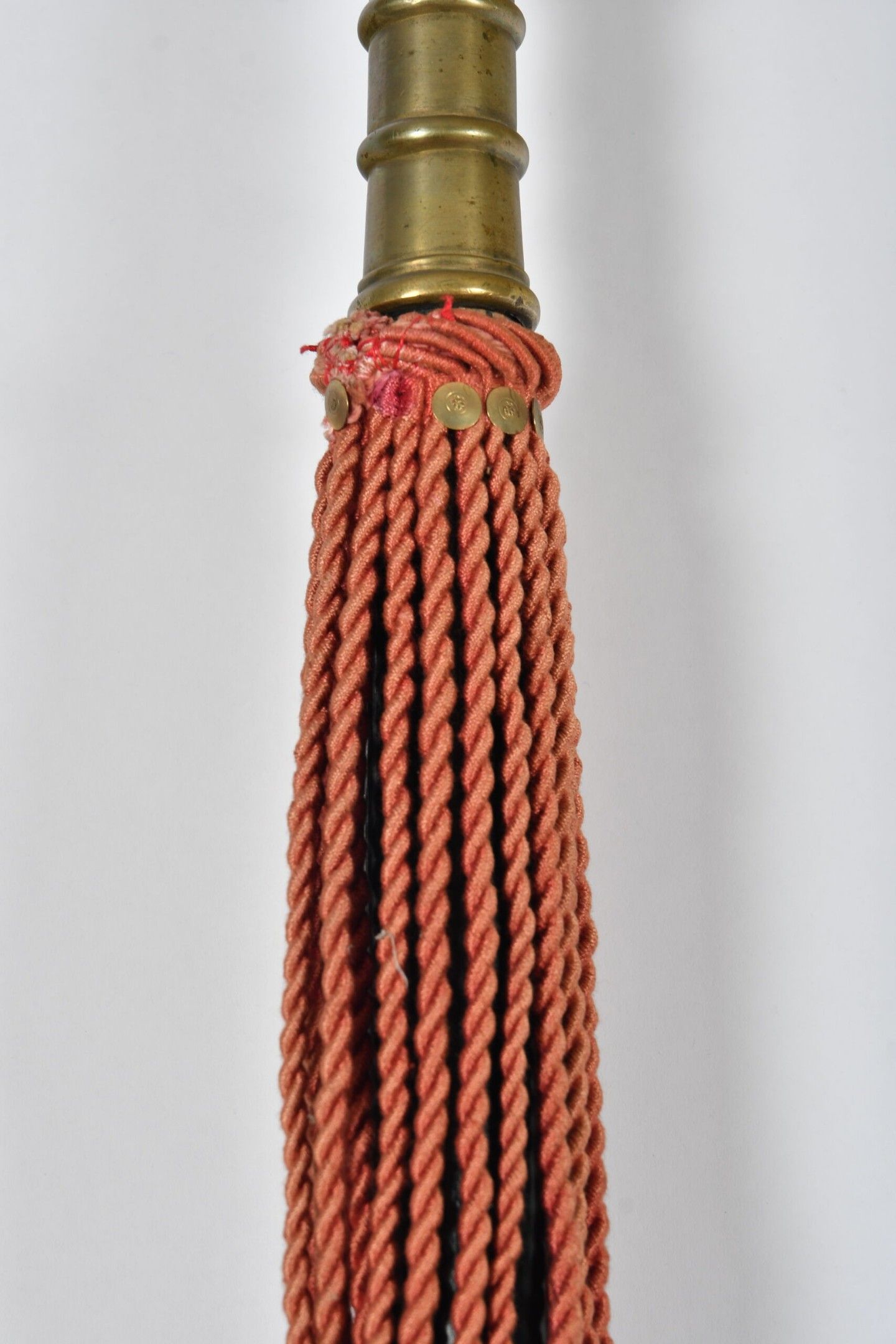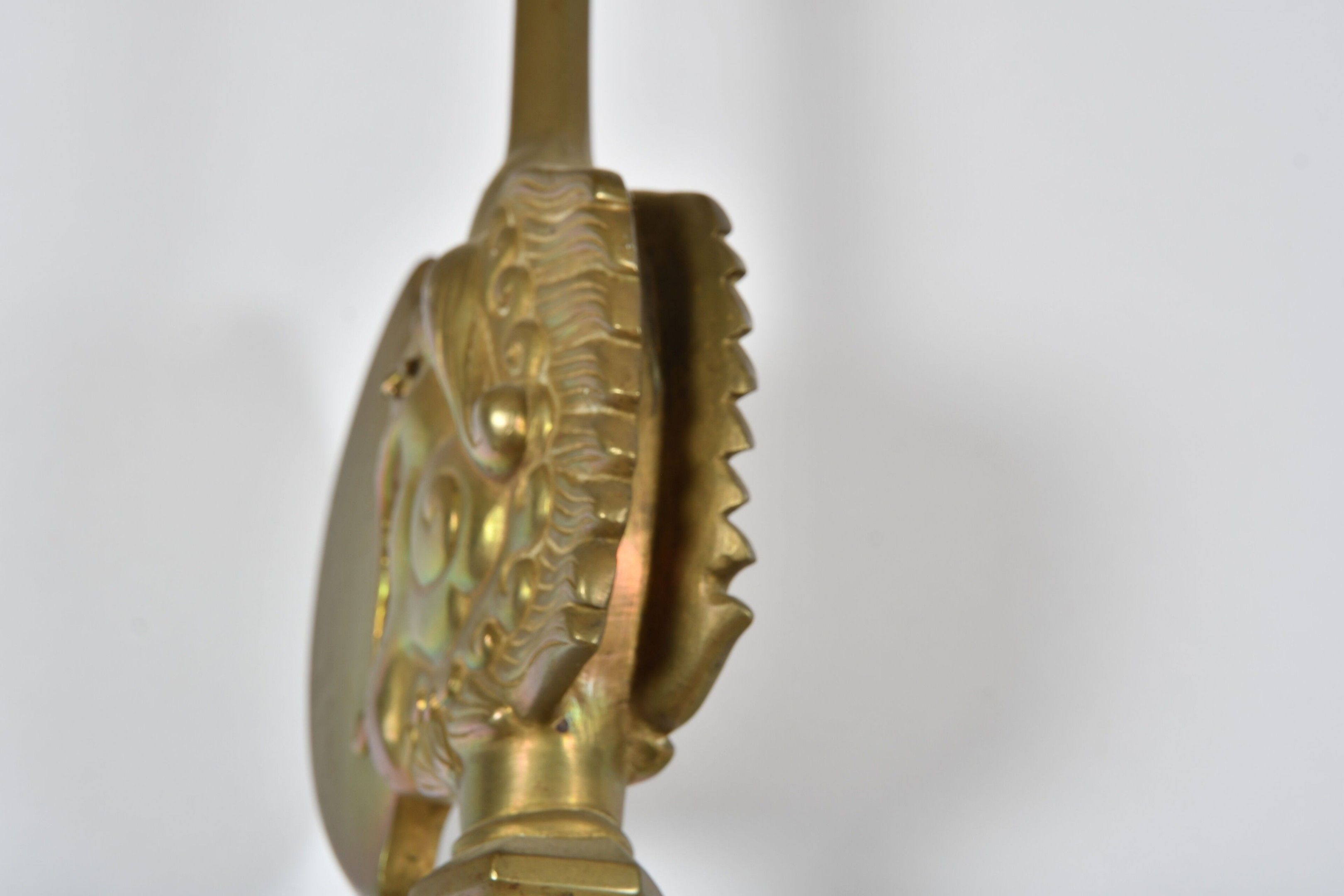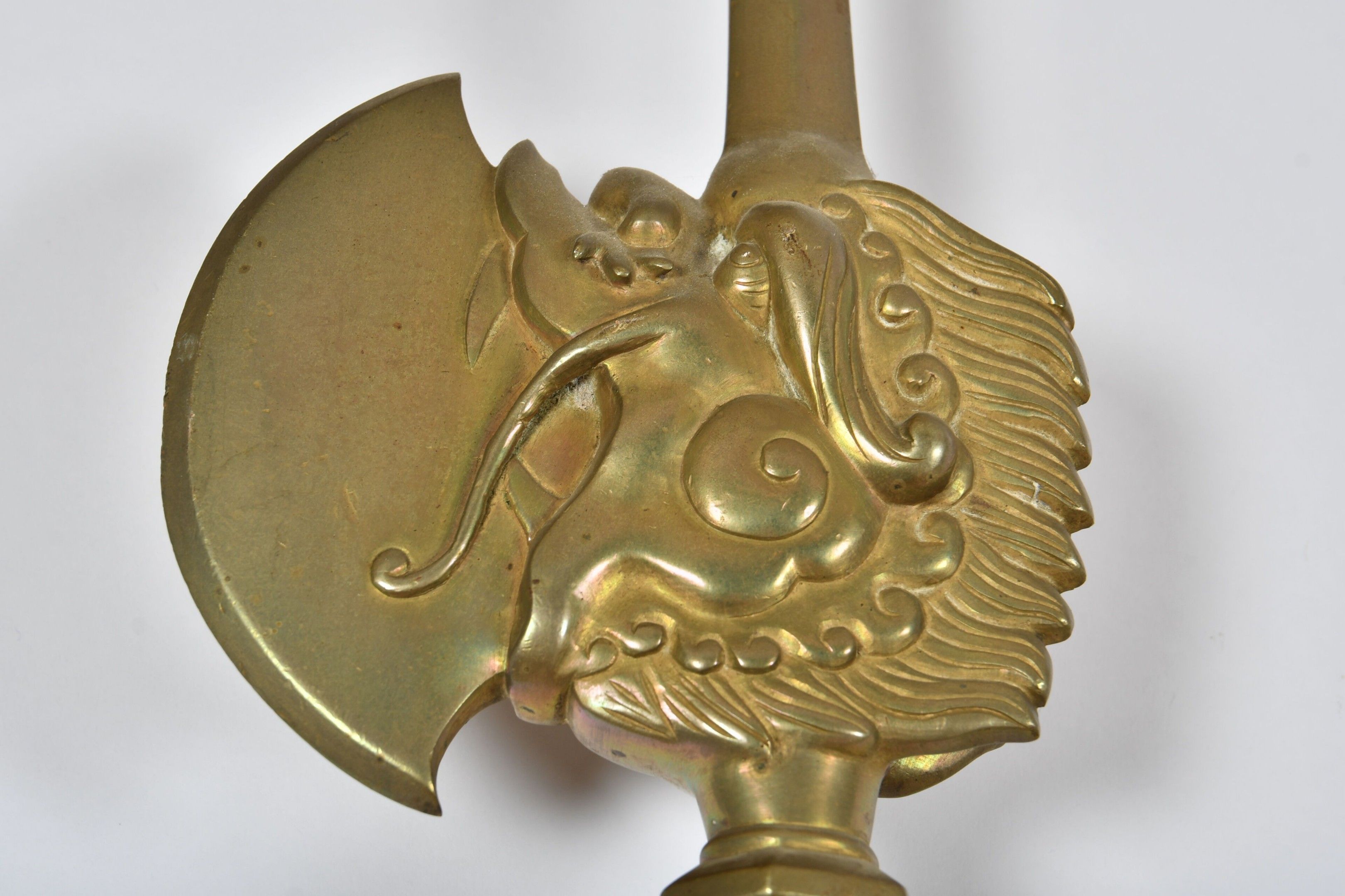 CHINA circa 1900. Halberd in blackened wood, the bronze head decorated with the head of a dragon with its mouth open. Height 244 cm