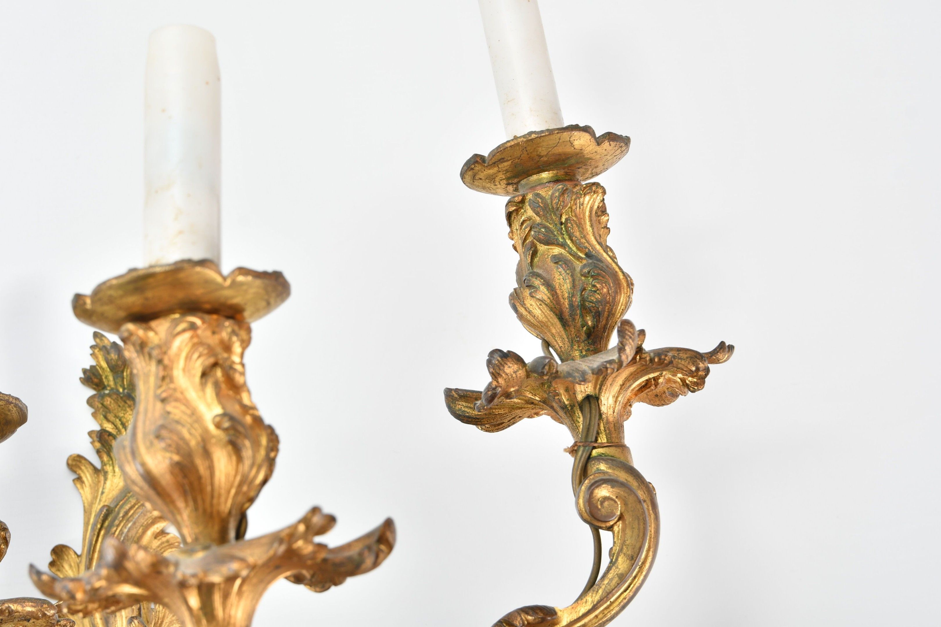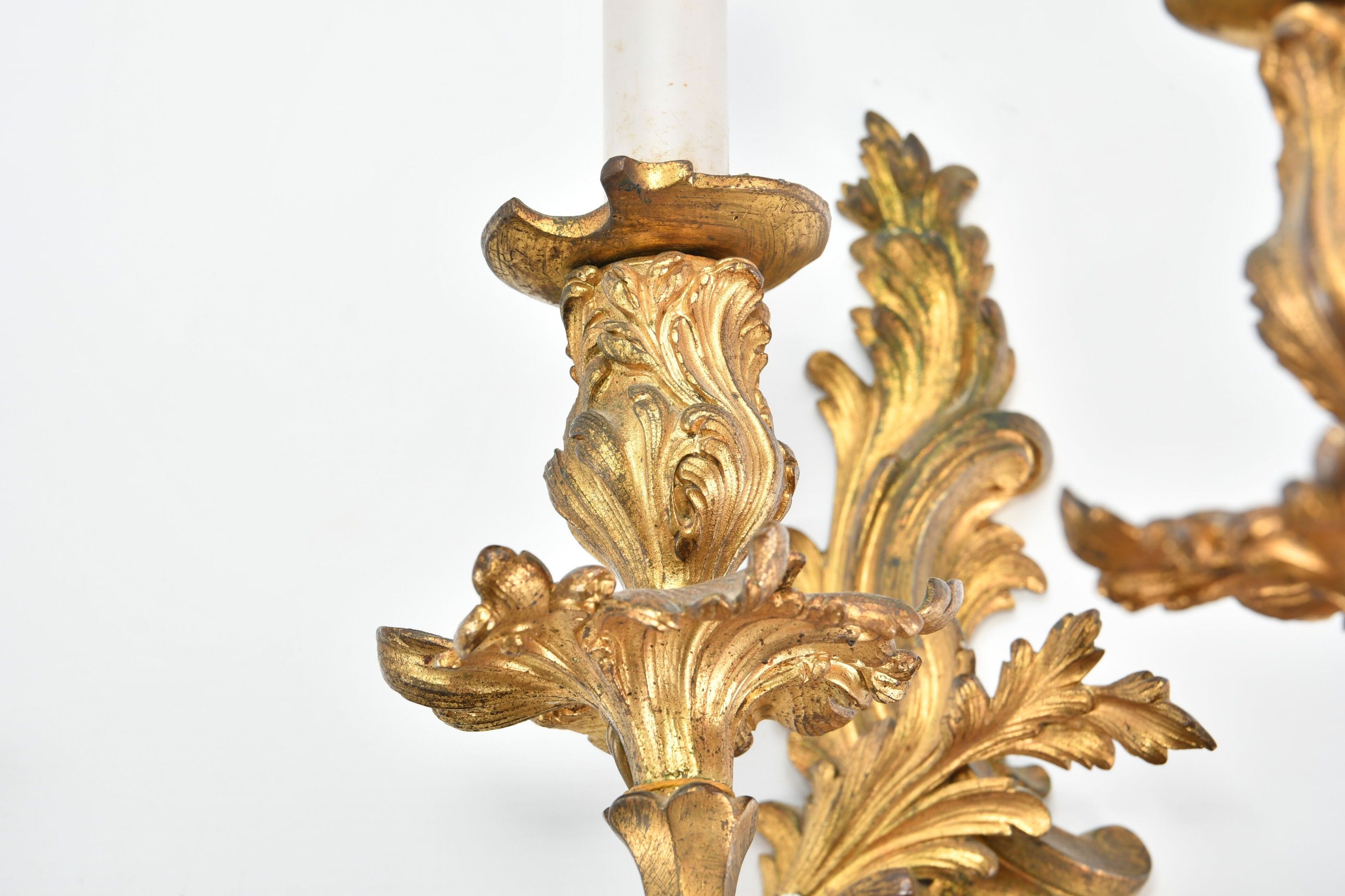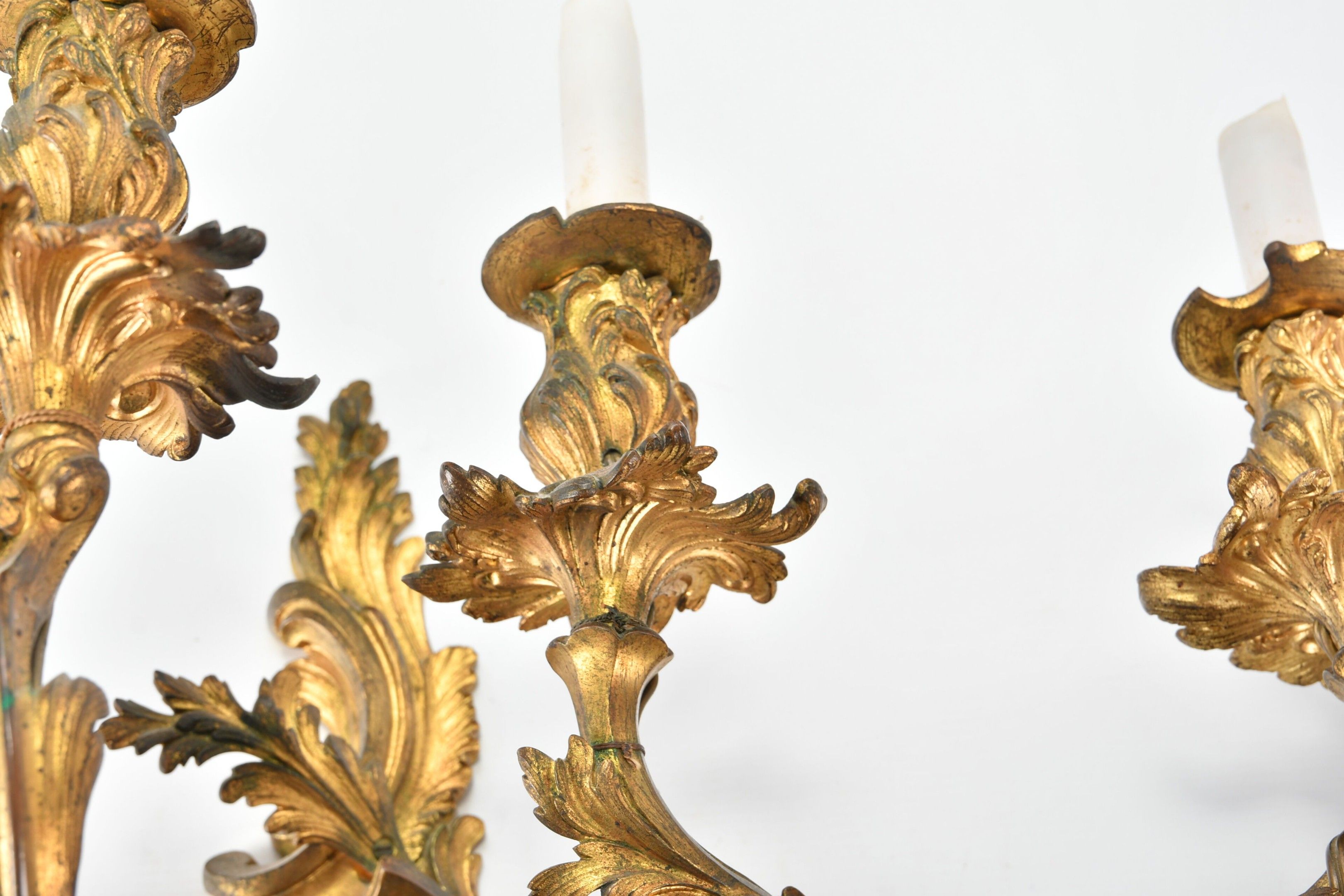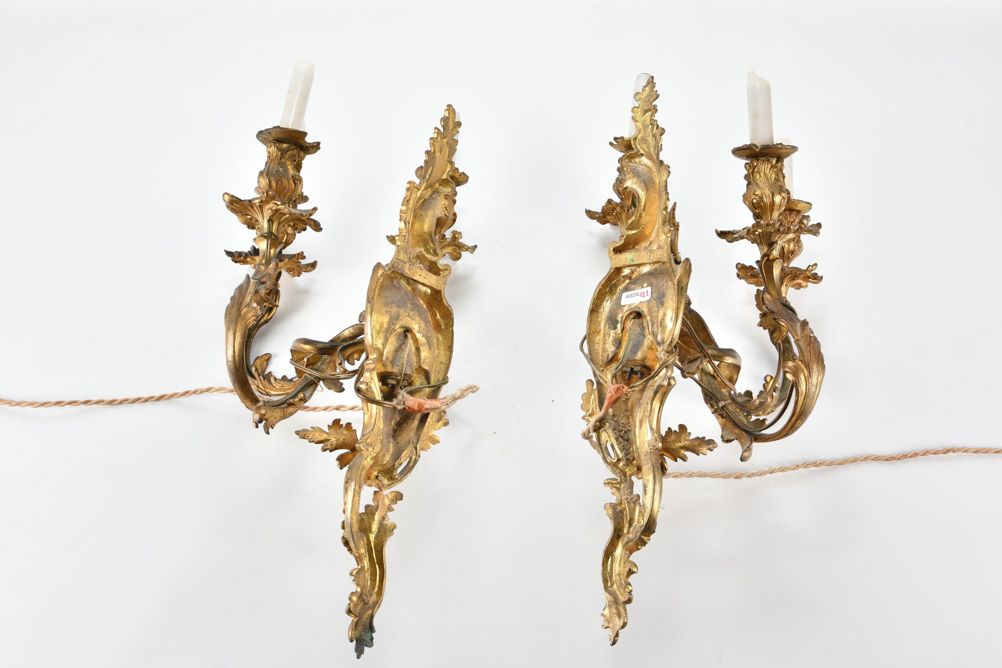 A gilt bronze wall light (large) with two arms of light and rocaille decoration of acanthus leaves and water leaves. Louis XV style, 19th century. H. 54.5 - D. 32 cm