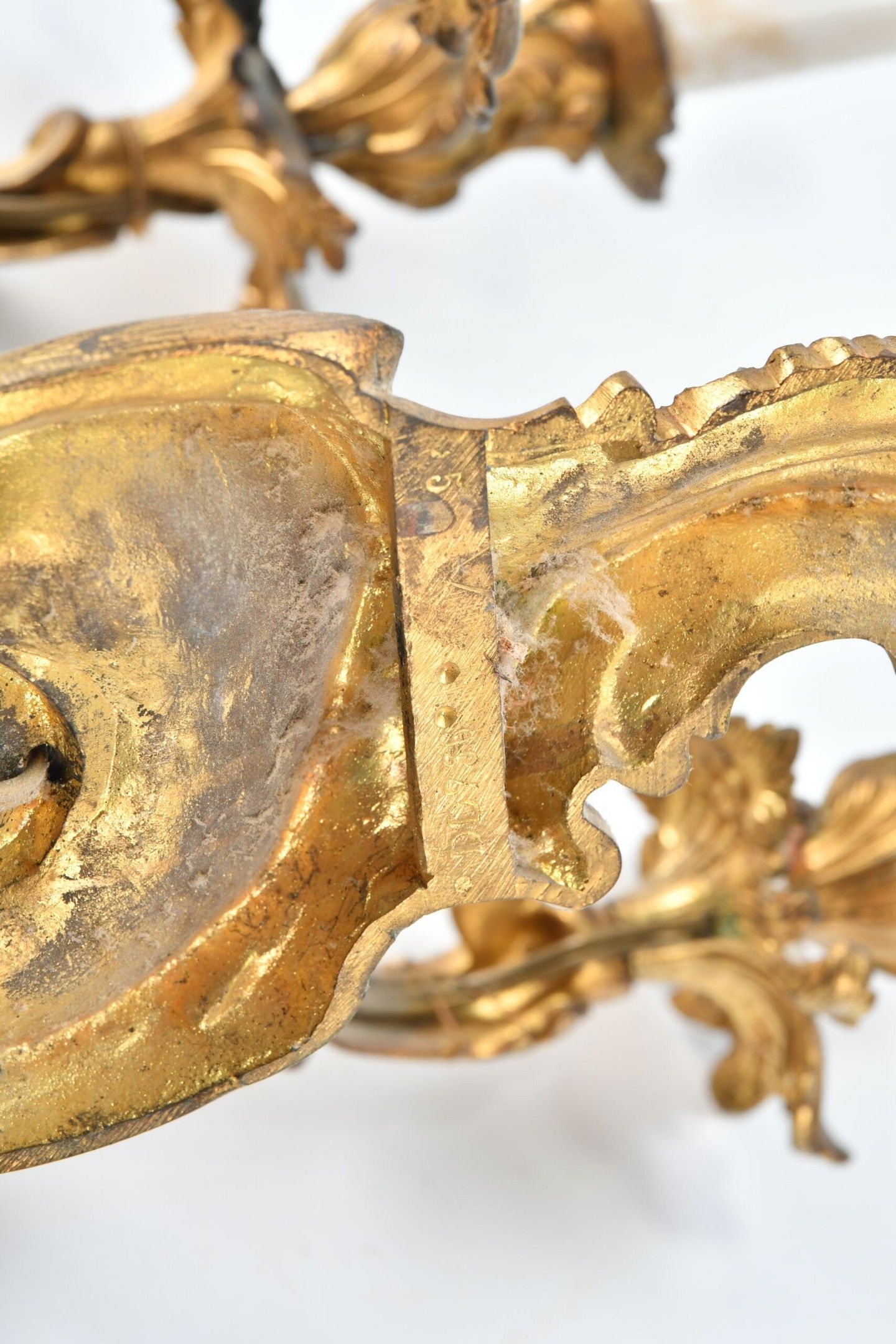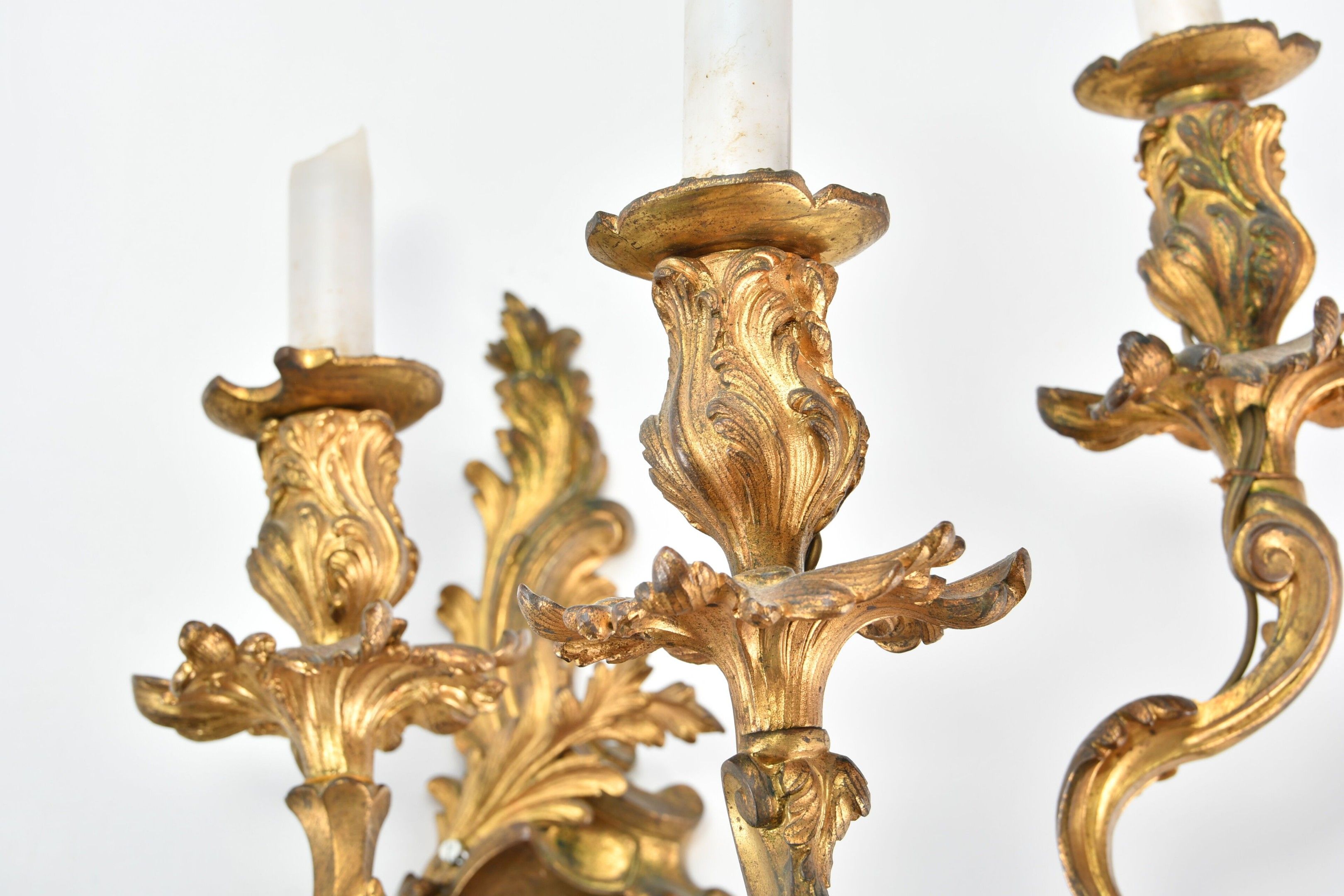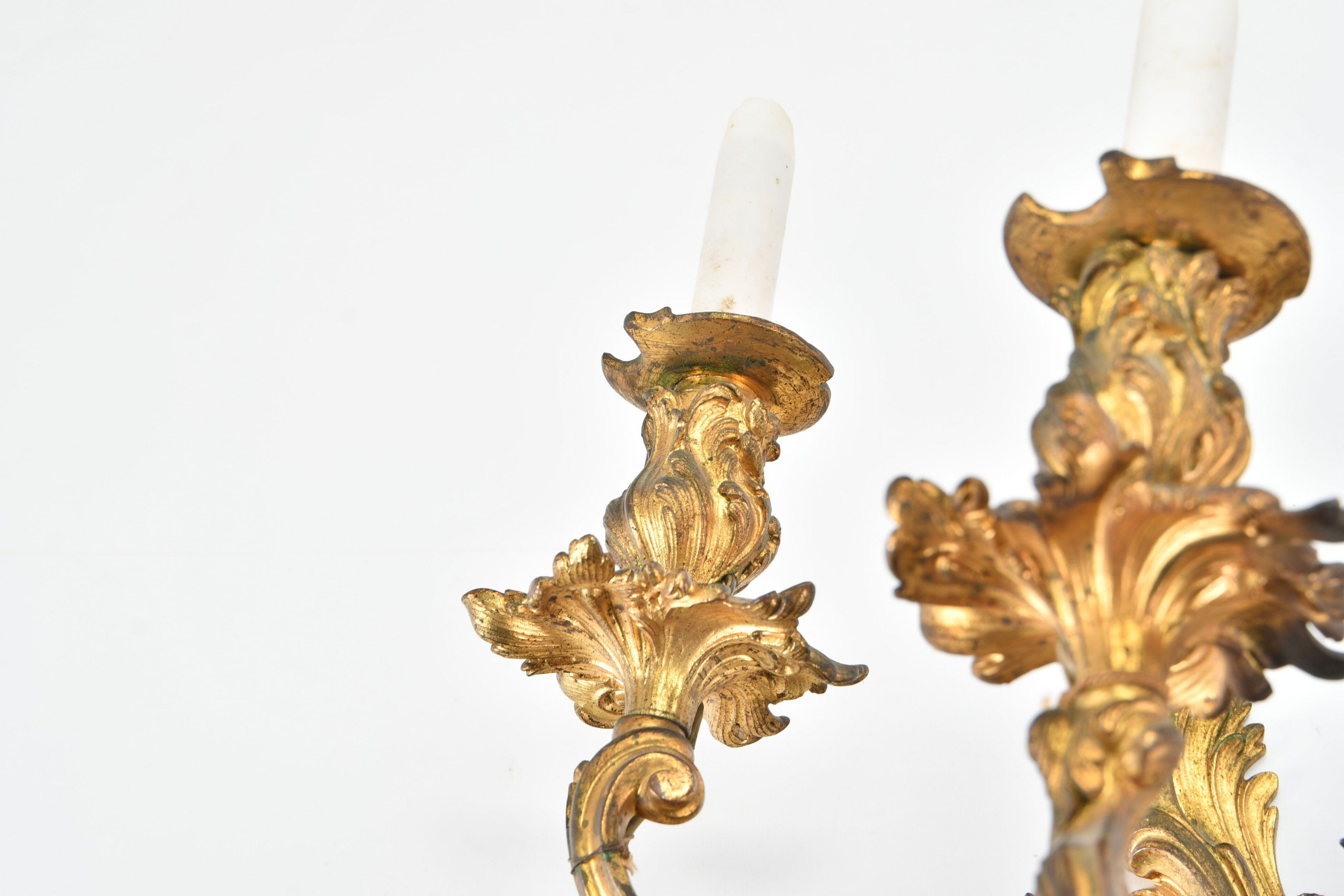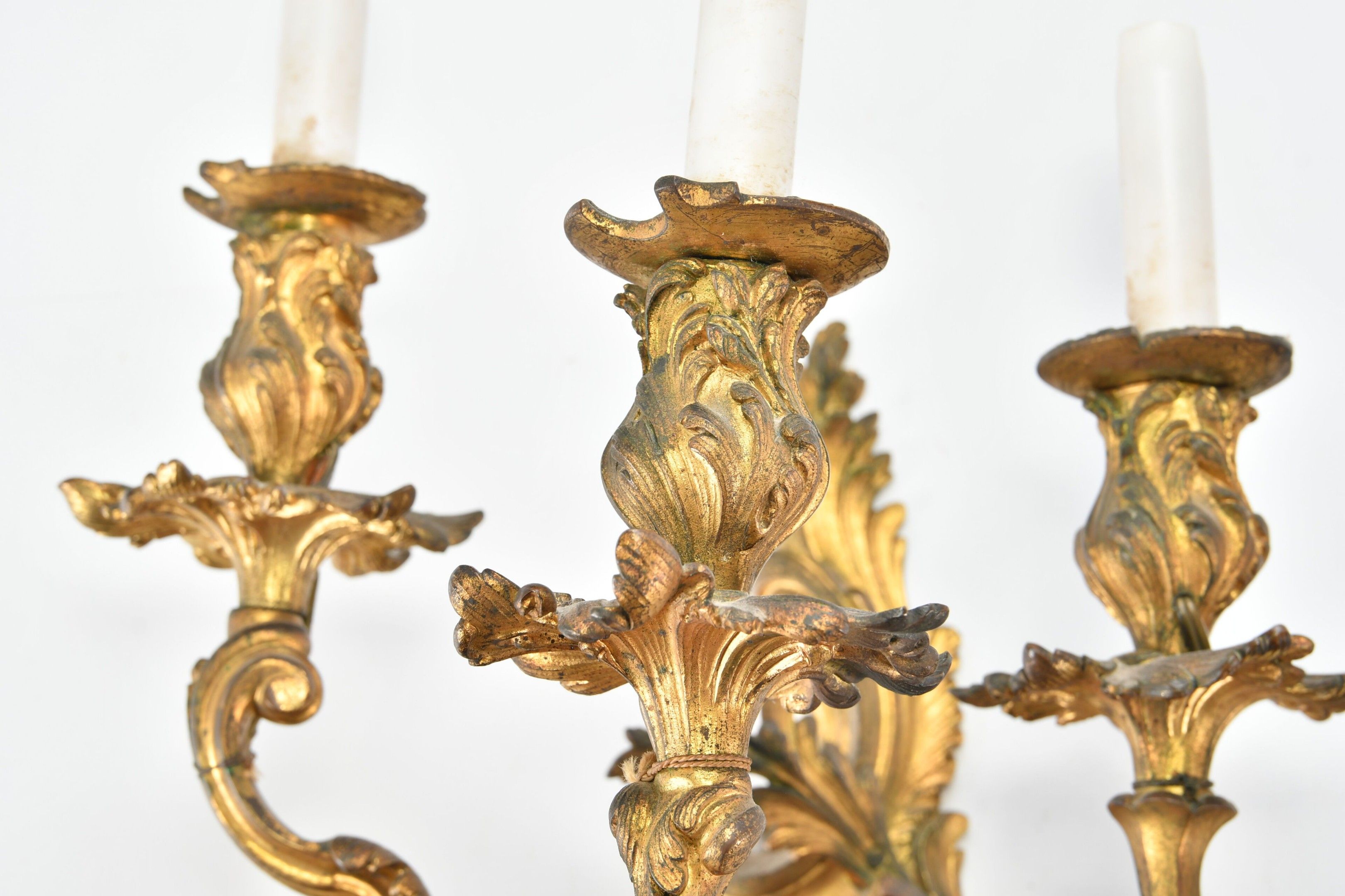 A gilt bronze wall light (large) with two arms of light and rocaille decoration of acanthus leaves and water leaves. Louis XV style, 19th century. H. 54.5 - D. 32 cm