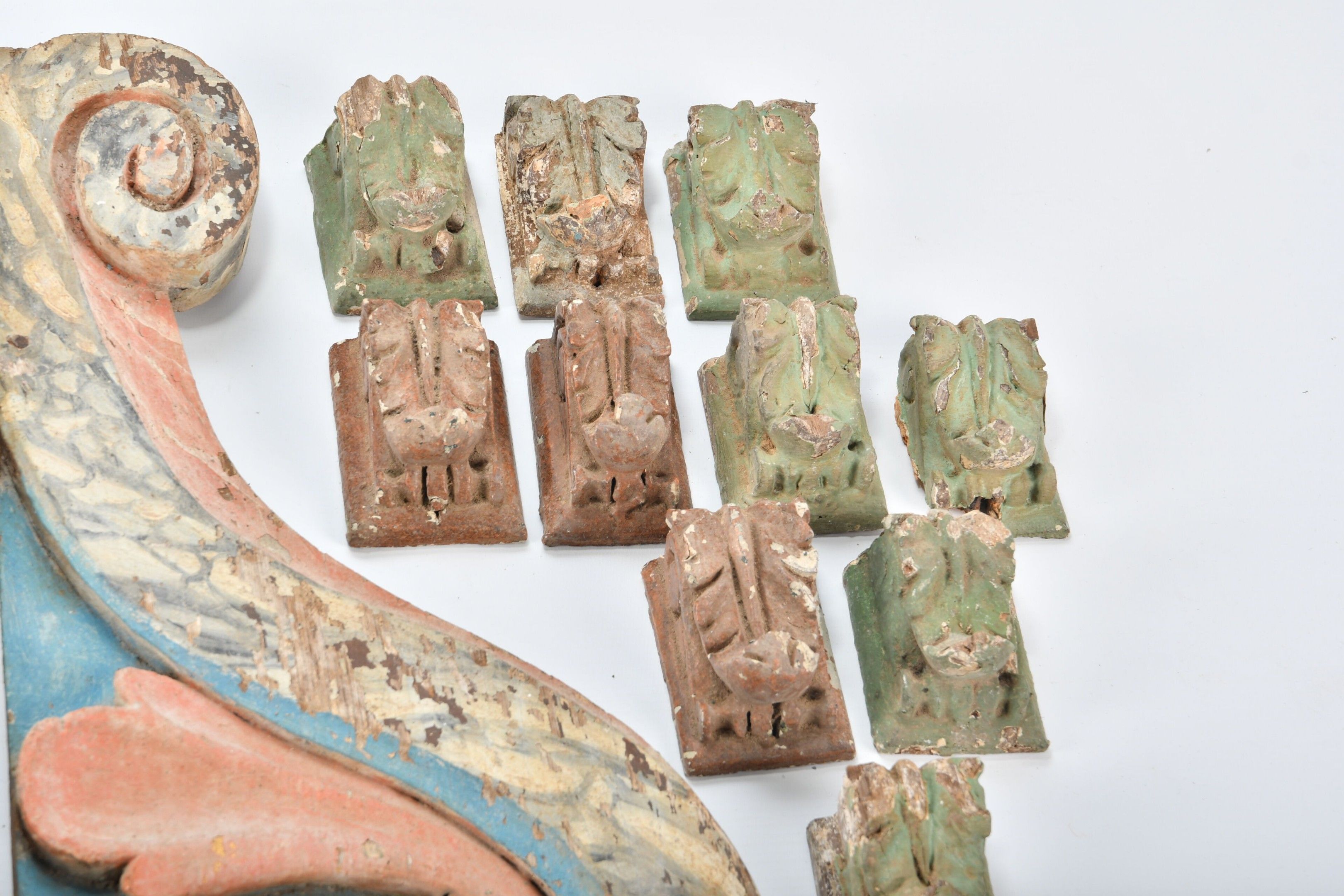 ELEMENTS of a polychrome carved wooden altarpiece comprising…