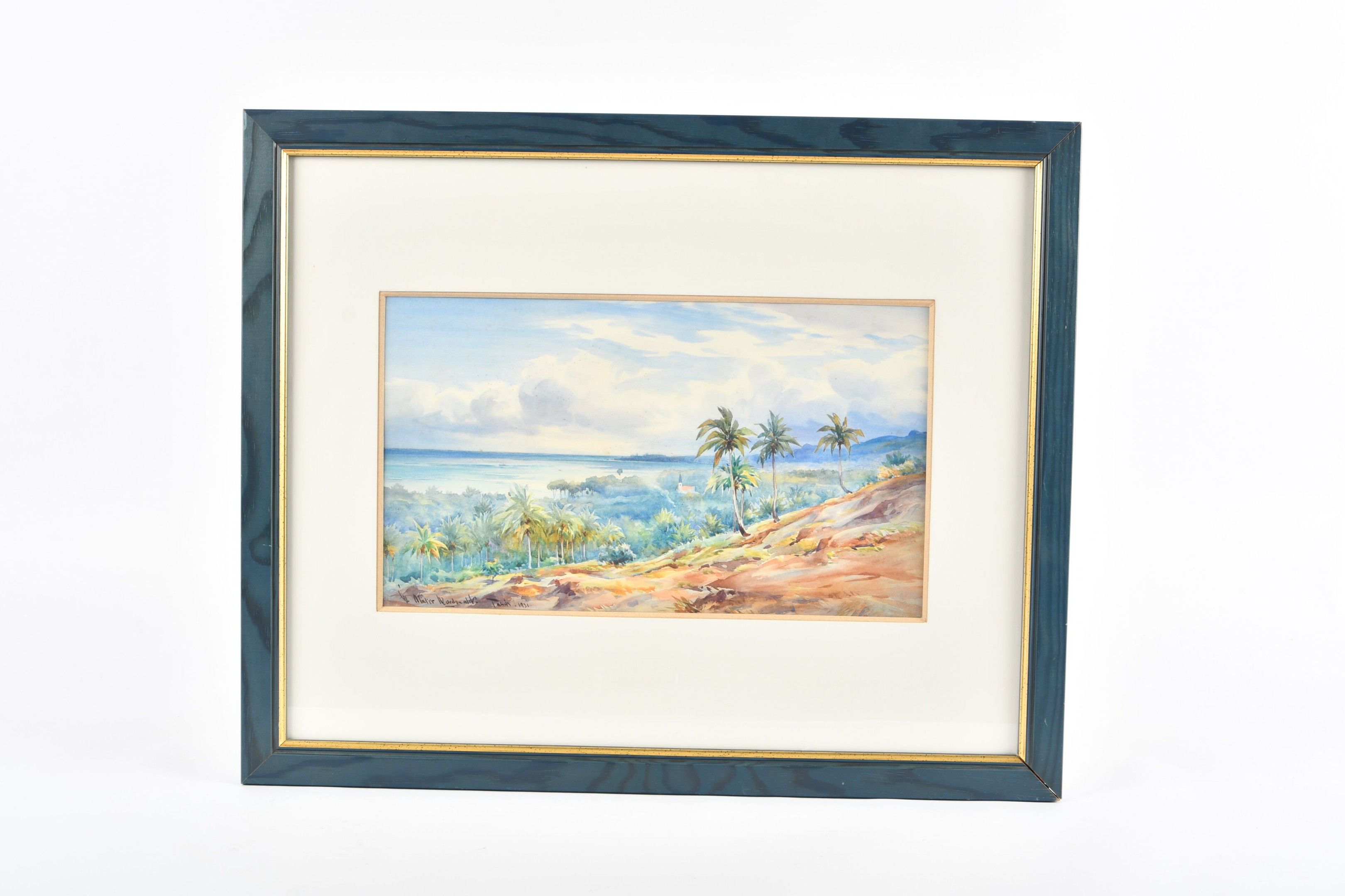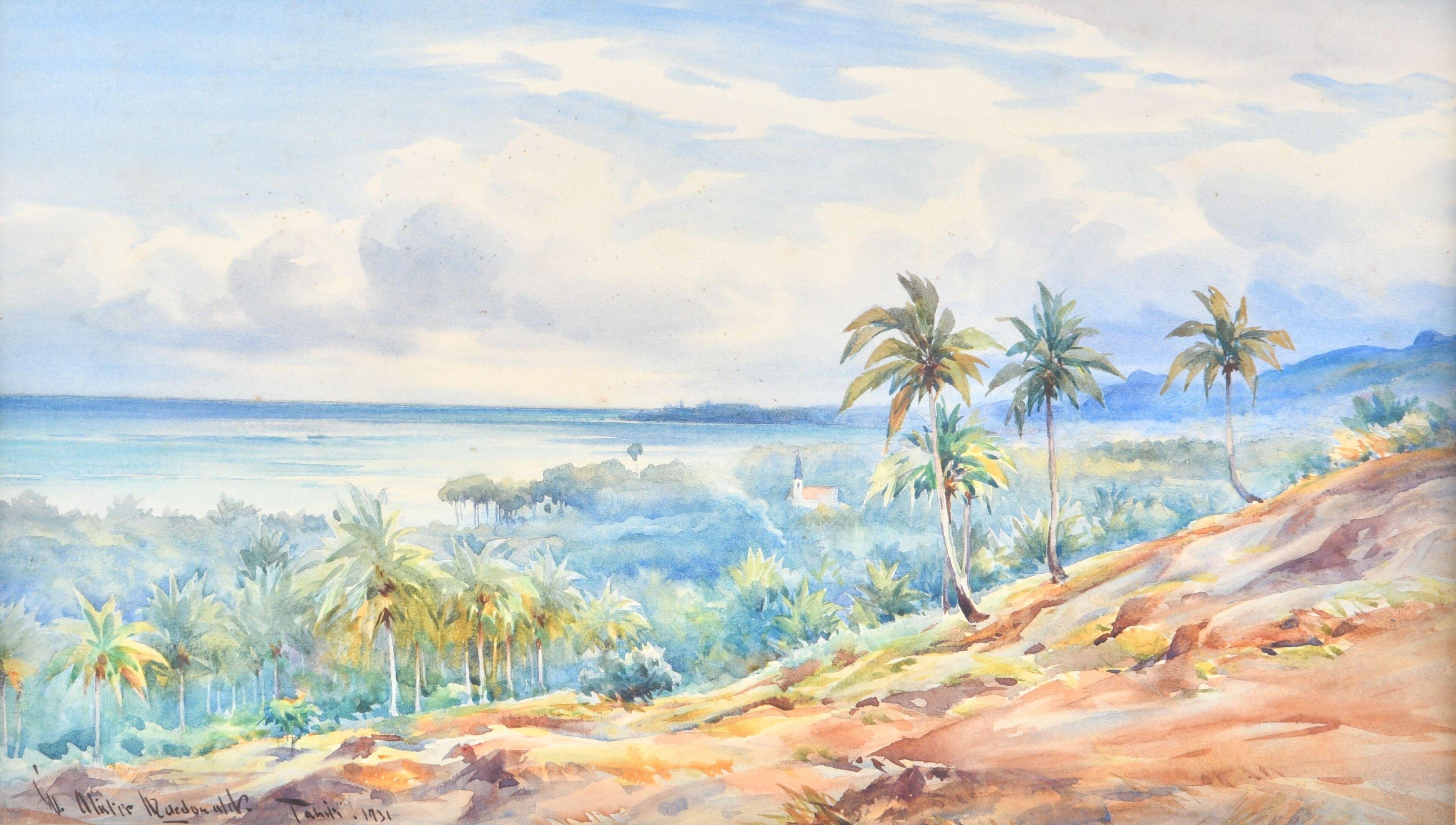 William Alister MACDONALD (1861-1948). View of Tahiti from inland. Watercolour on paper signed lower left and situated. 20.5 x 35 cm.