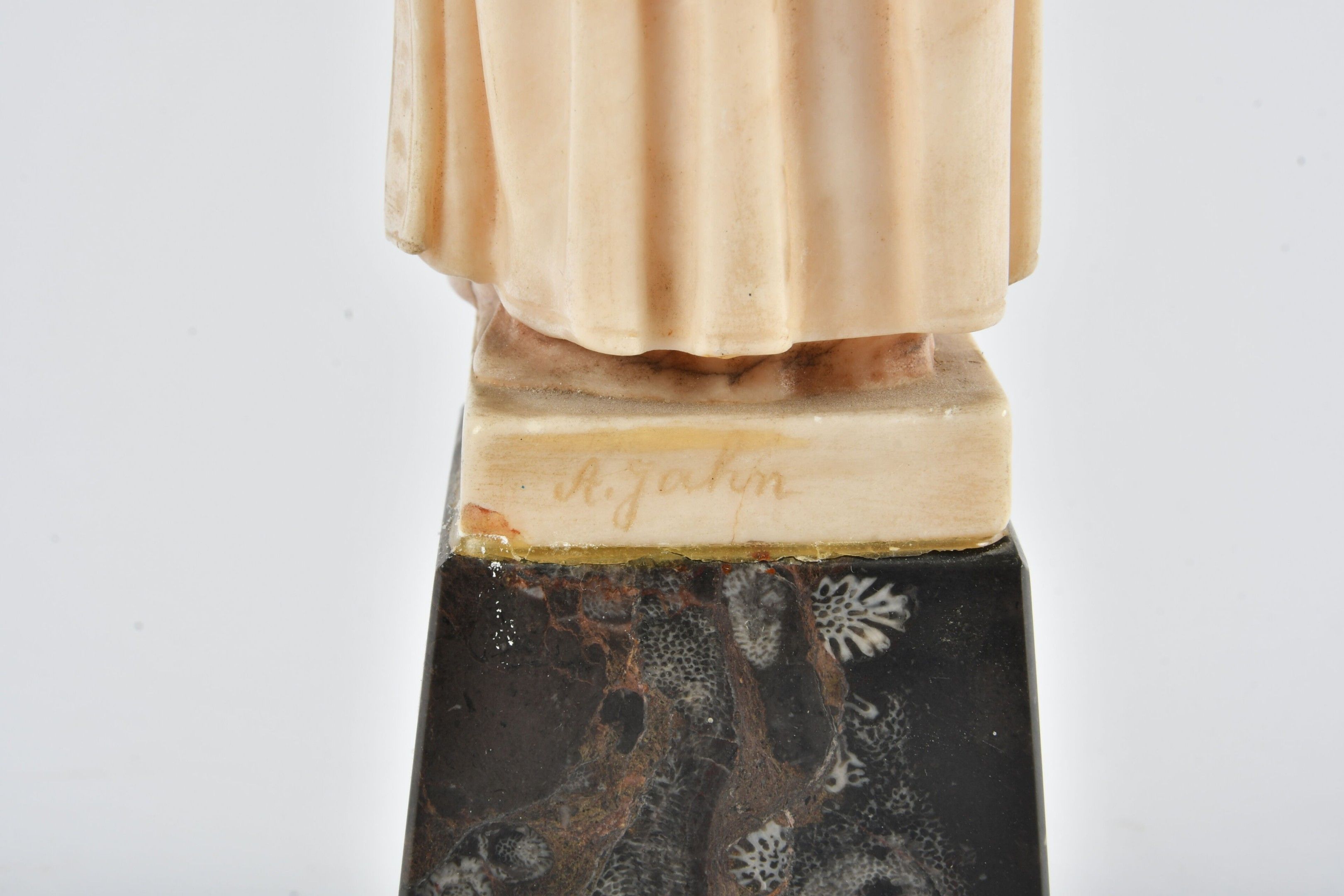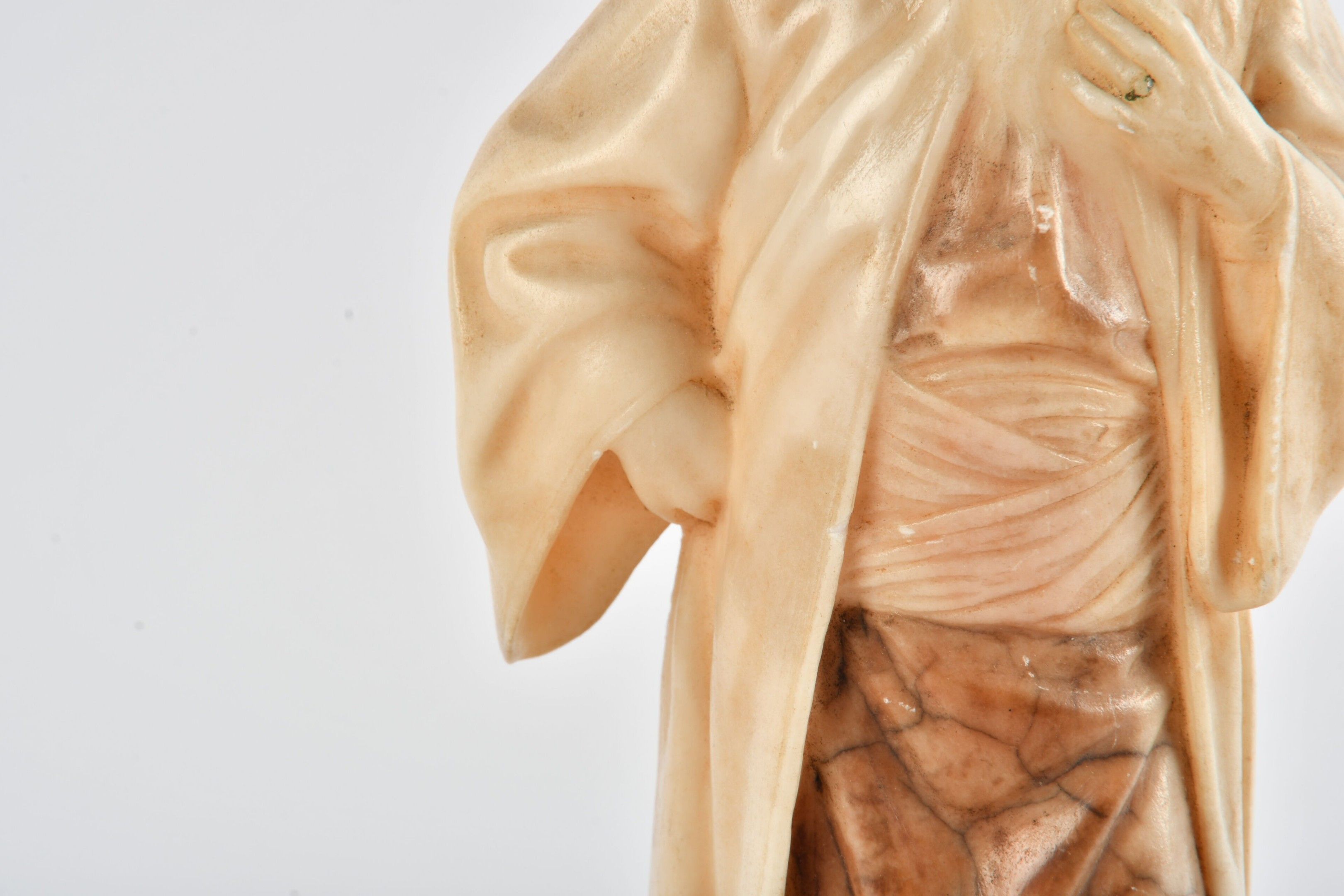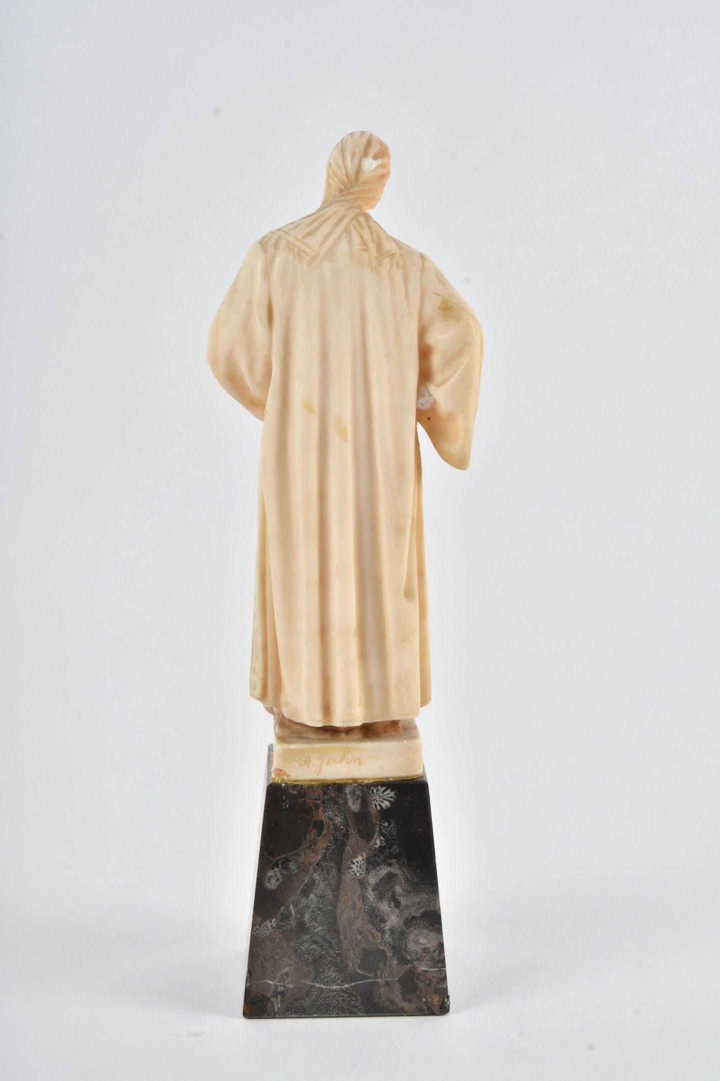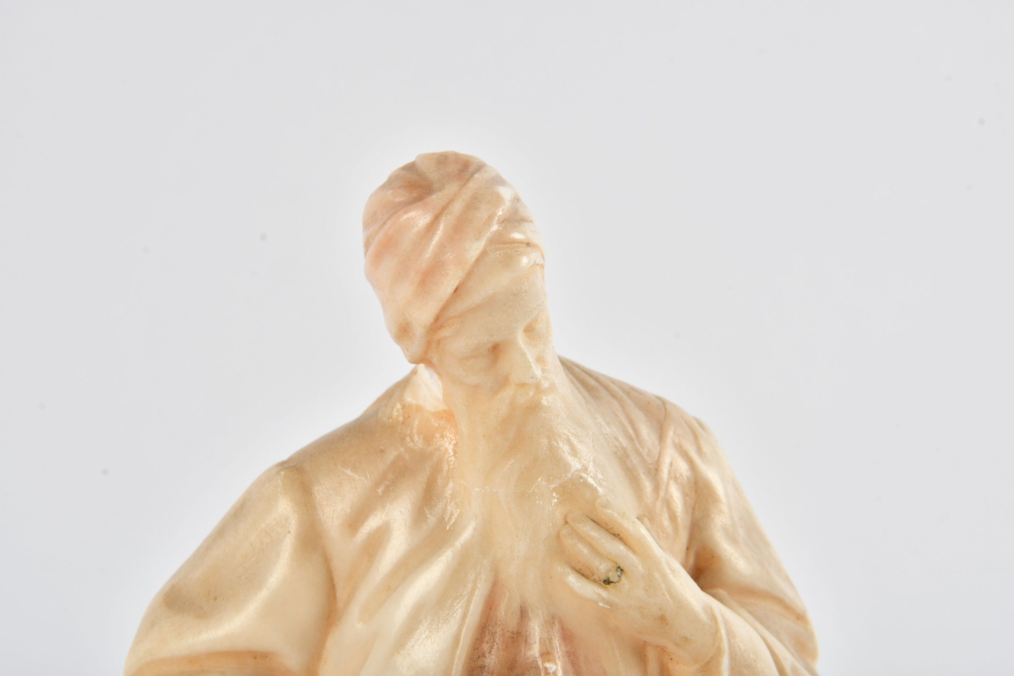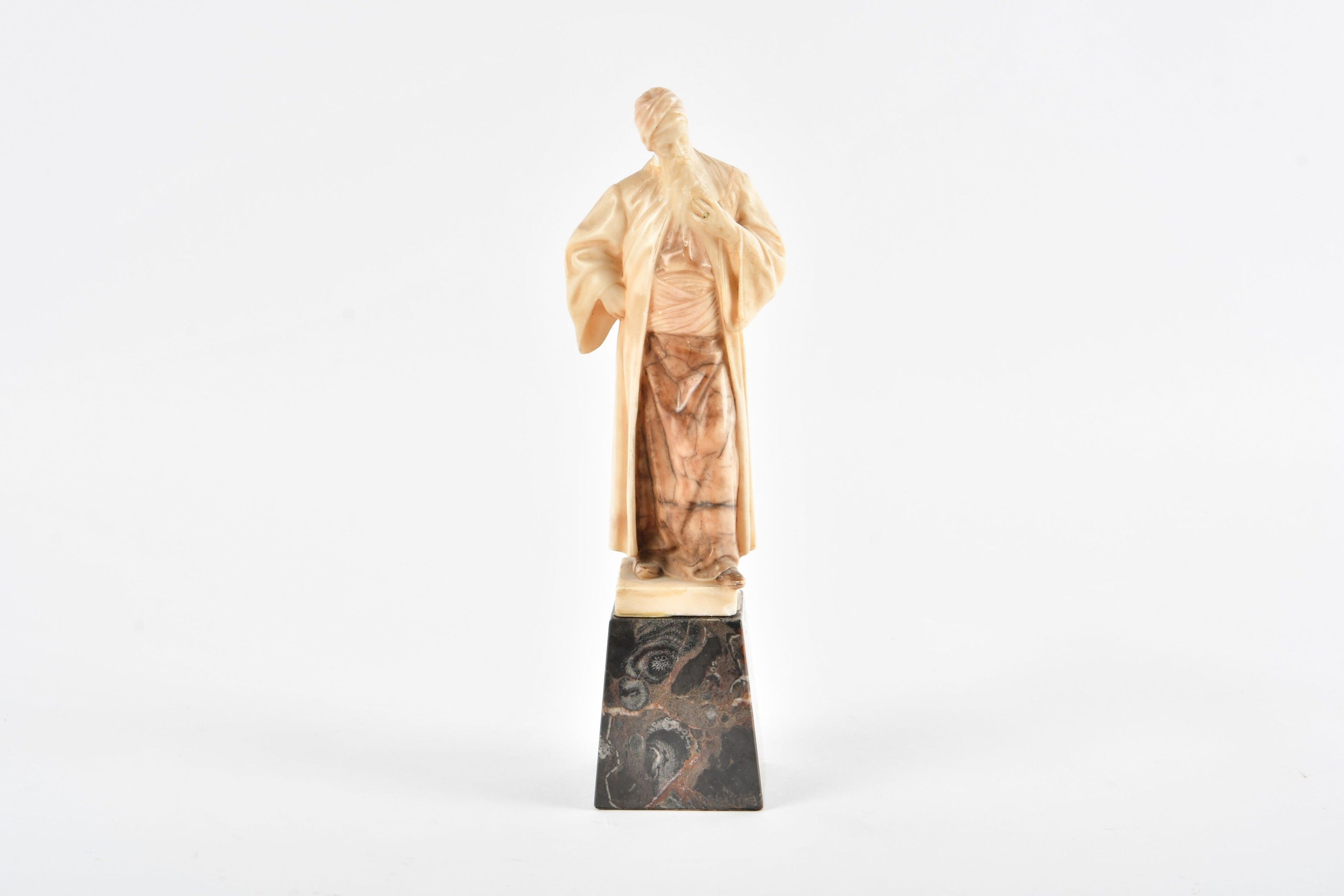 JAHN Adolf (1858 - 1941). Based on. Nathan the wise. Alabaster statuette in the round. Height 20.5 cm. Signed on the reverse. Head reattached. With a marble base (7.5 cm).