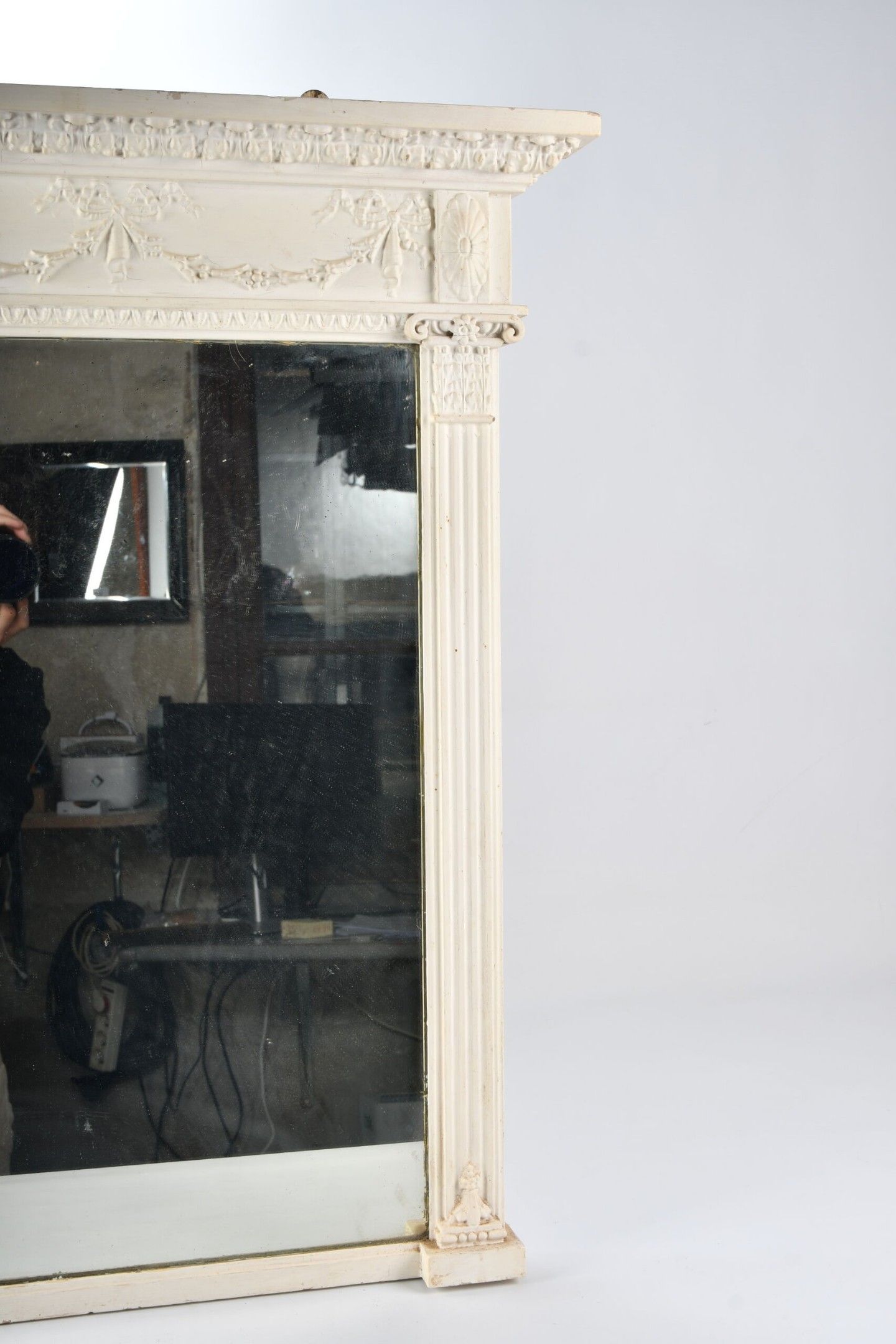 A white lacquered and carved wooden TRUMEAU decorated with a…