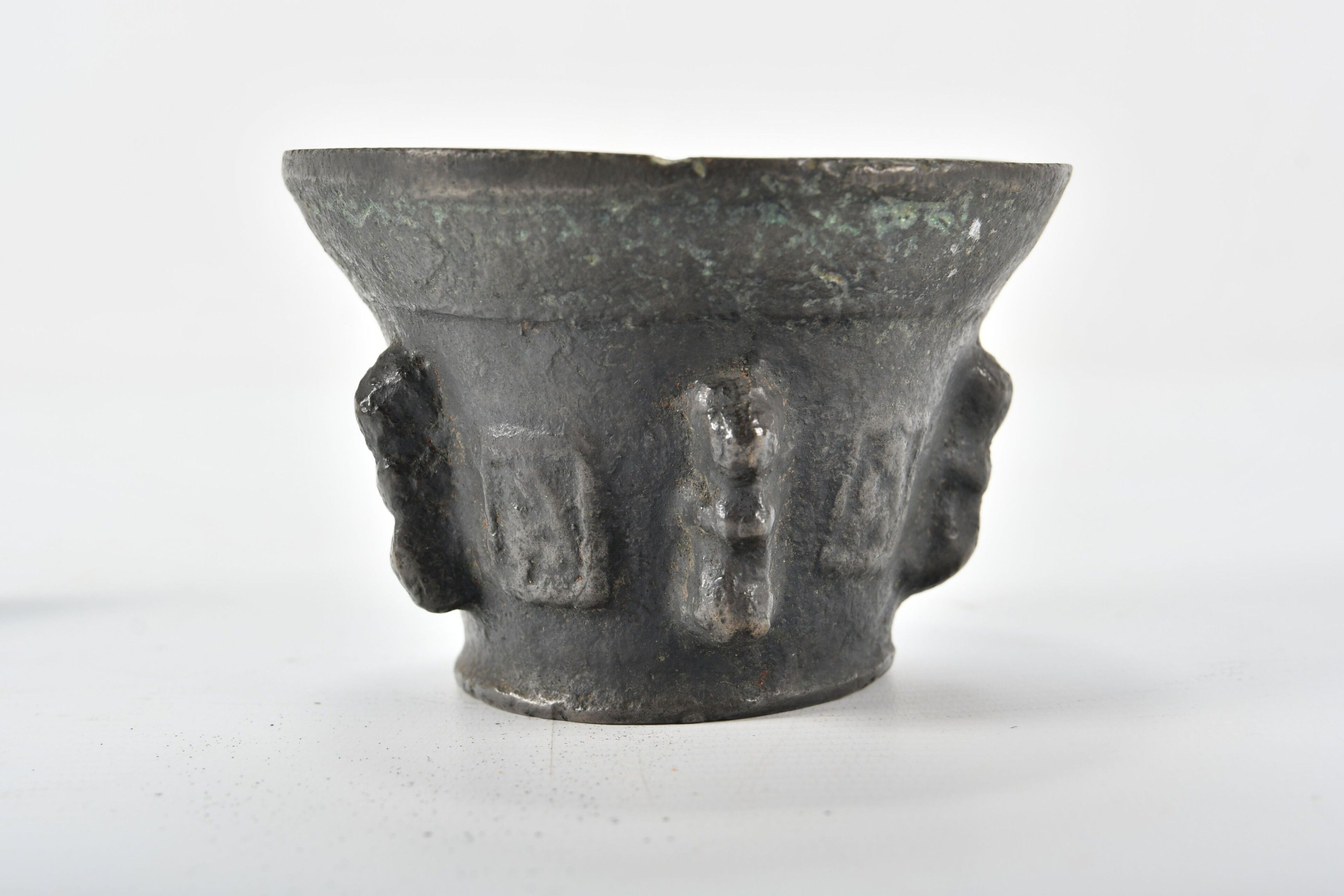 A bronze conical-shaped MORTAR decorated with small bas-reli…