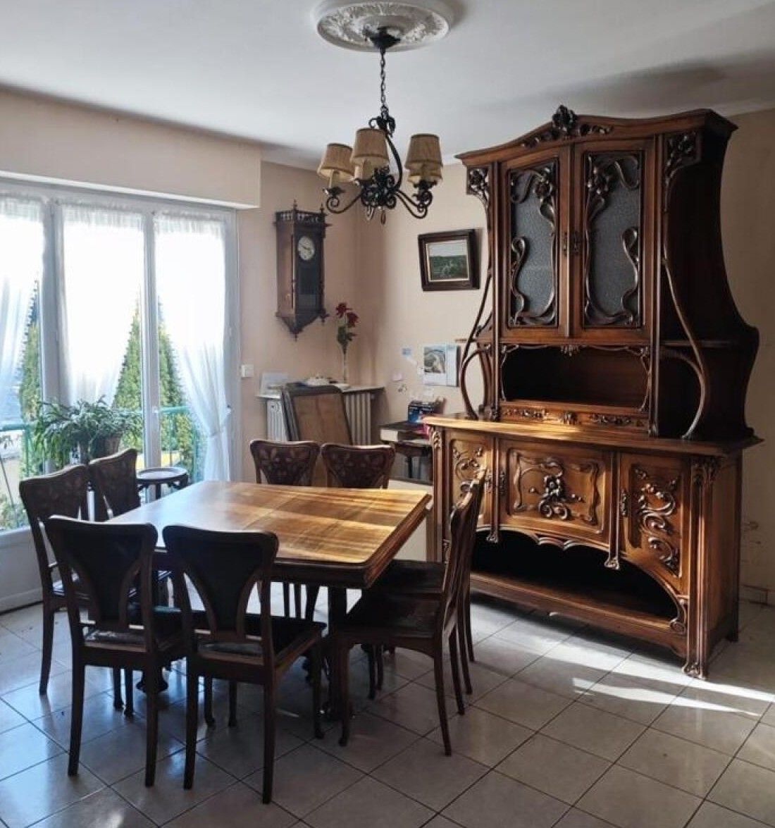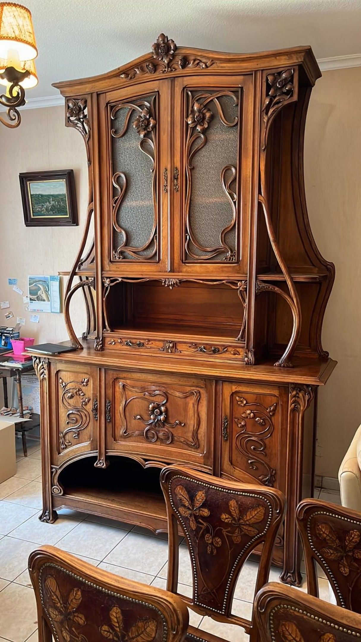 Natural wood DINING ROOM with rich carved plant decoration c…