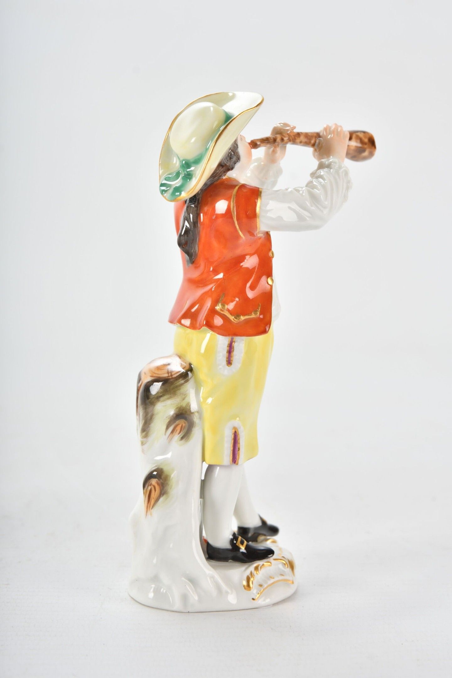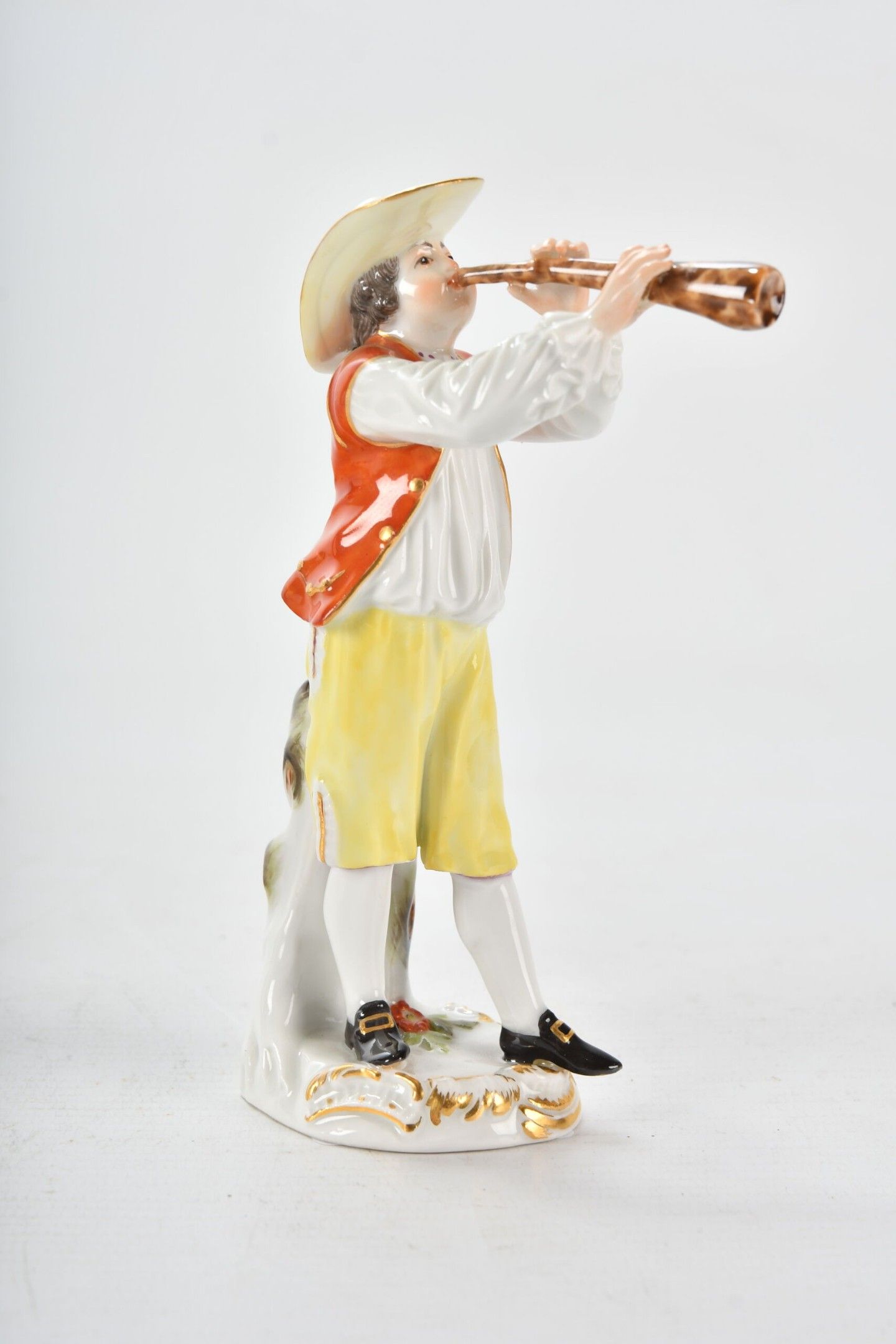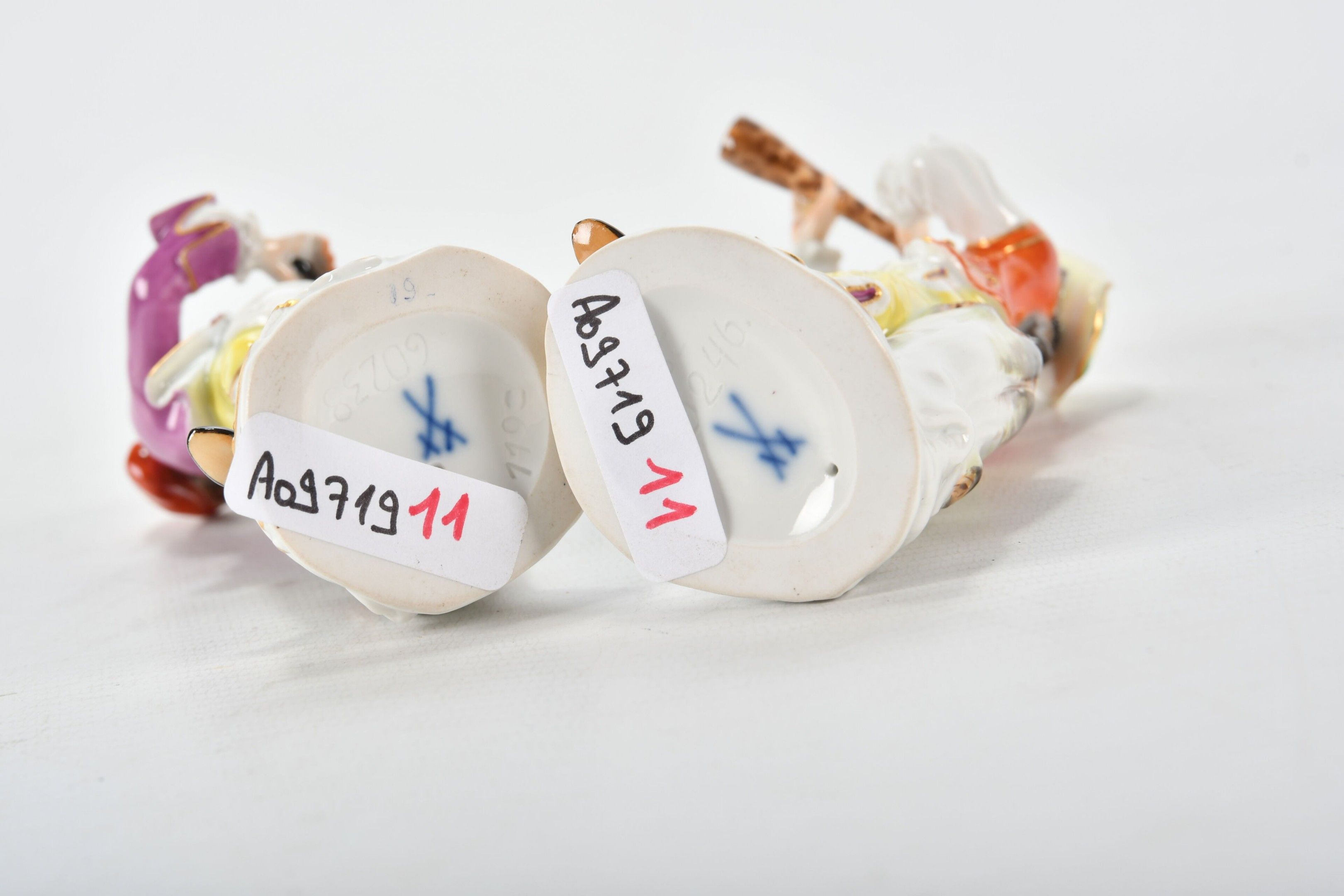 MEISSEN. Suite of two porcelain subjects with polychrome enamel depicting a flute player and a violinist. H. 14 cm. Mark with crossed swords in blue on the reverse.