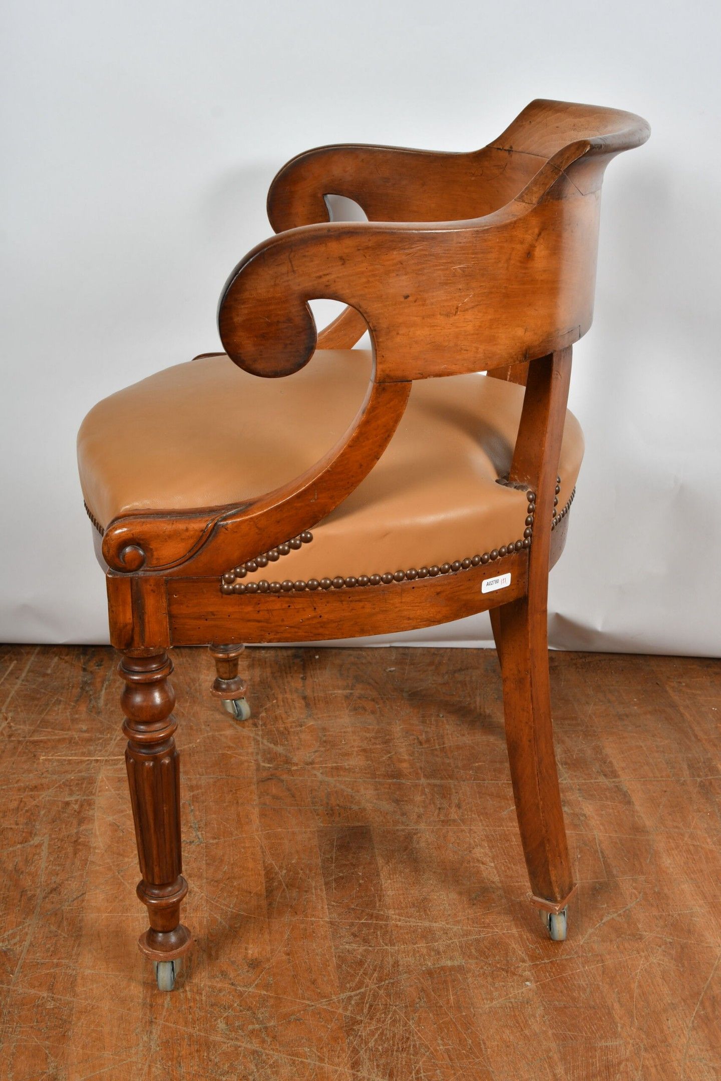 A mahogany and veneered OFFICE CHAIR with a banded back and …