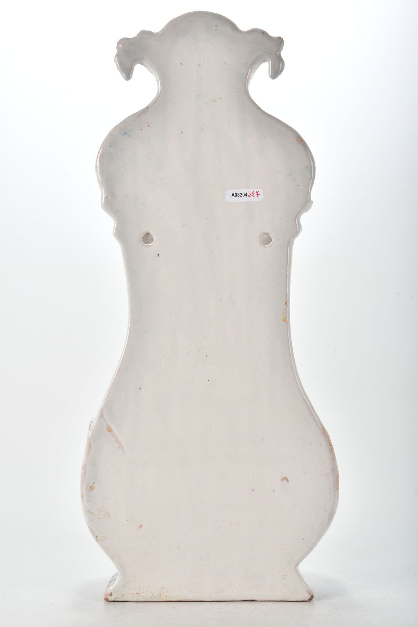 A baluster-shaped earthenware wall fountain decorated in blu…