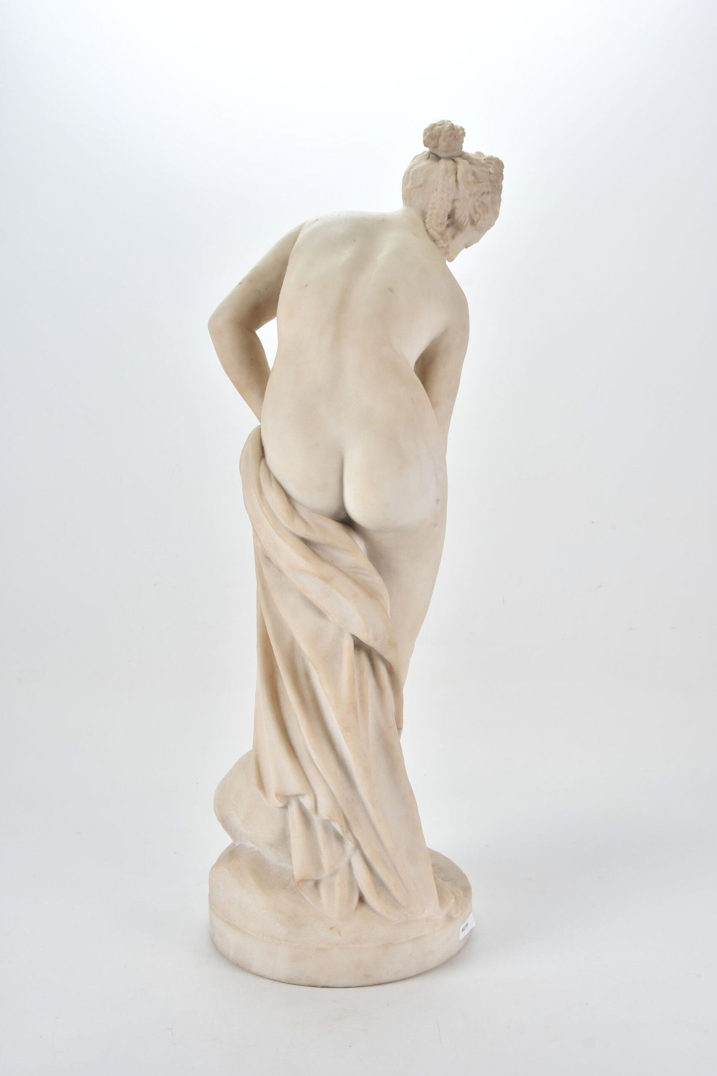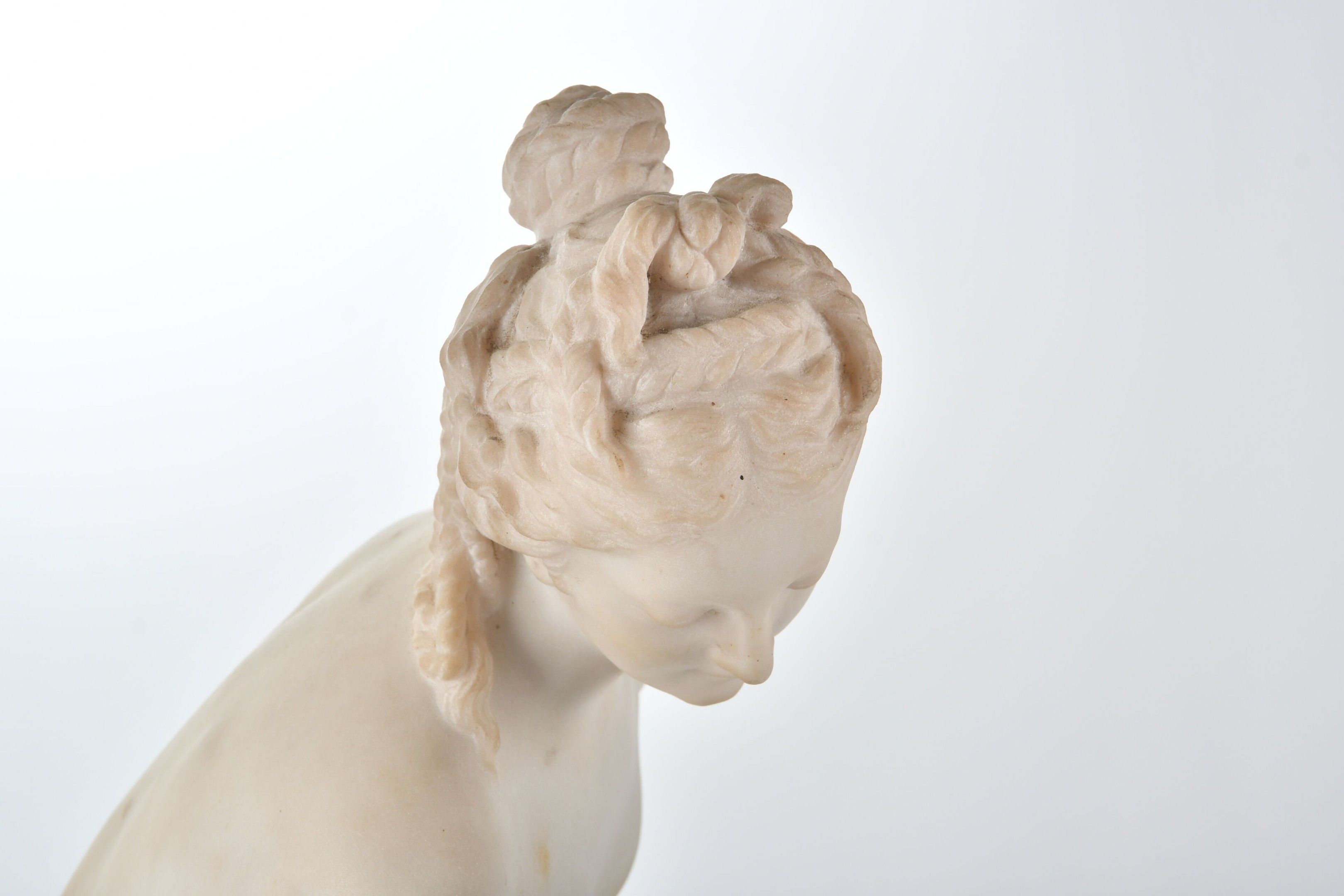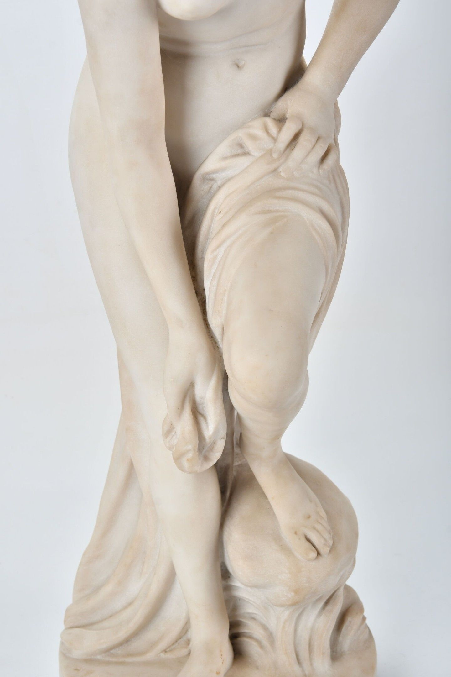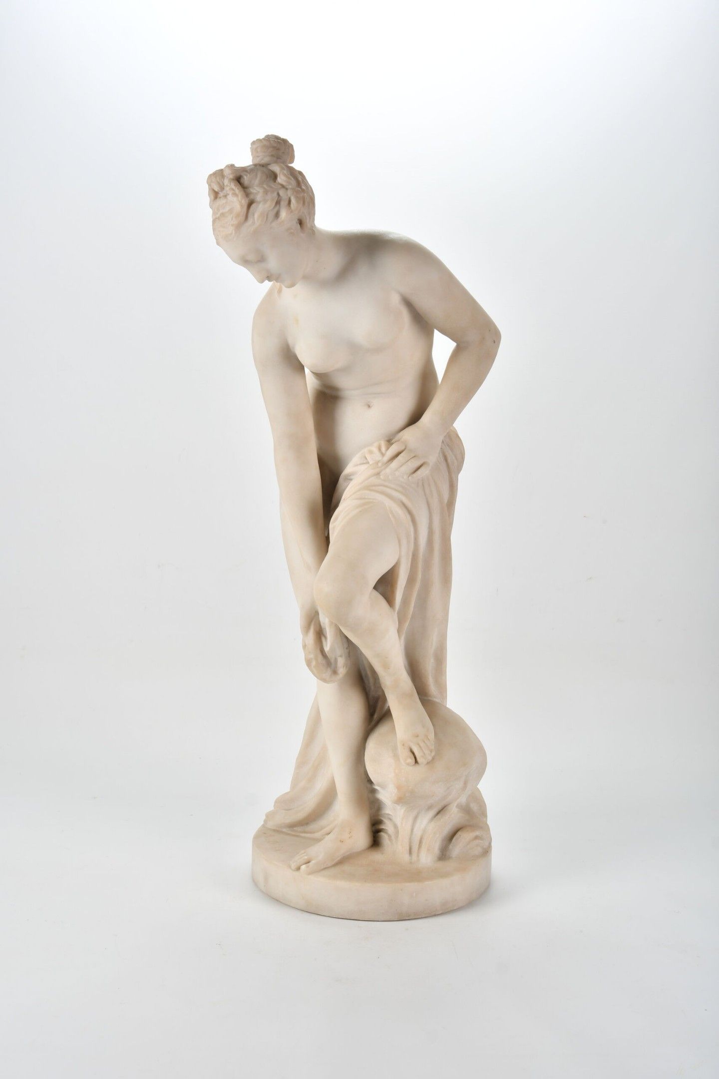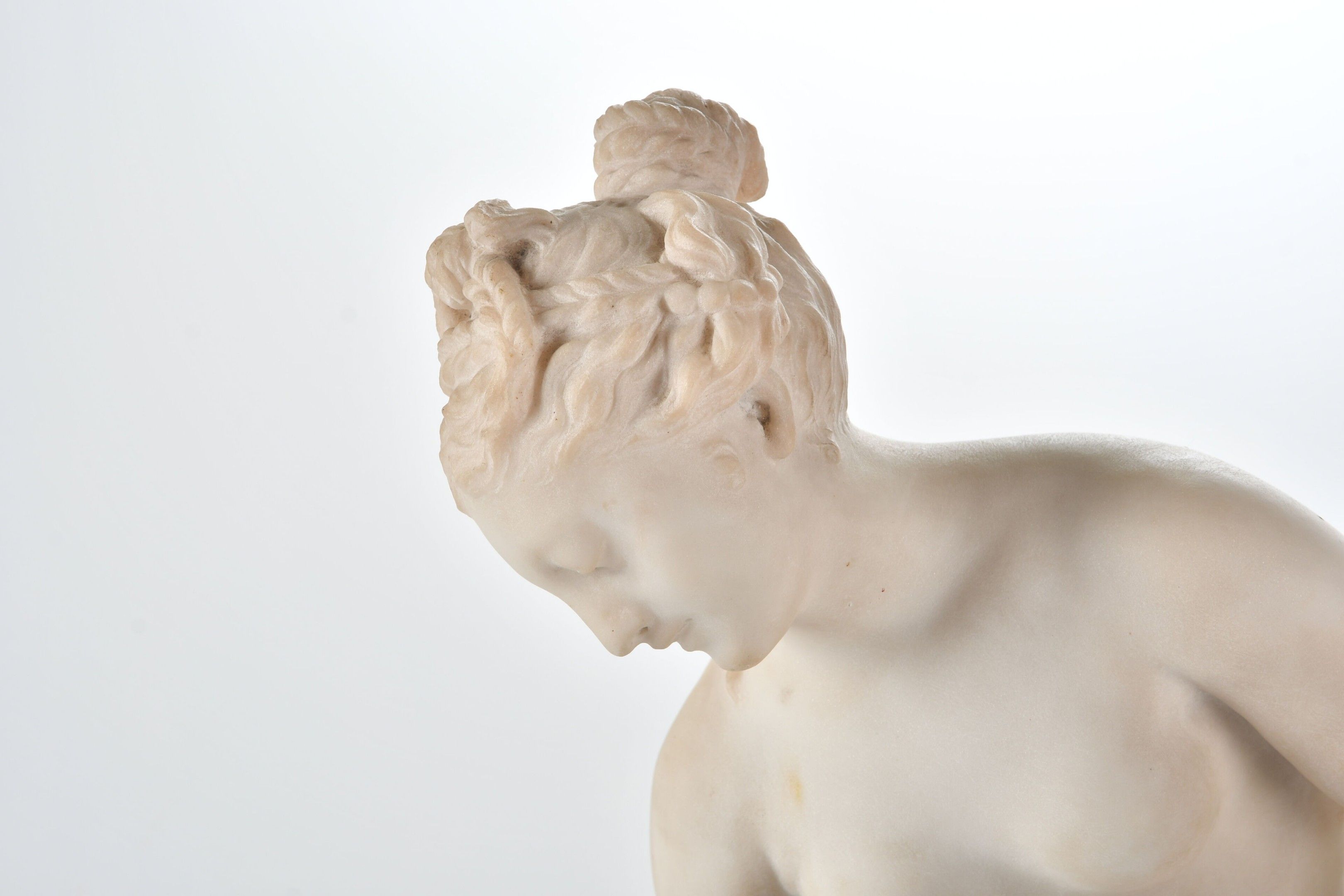 ALLEGRAIN Christophe-Gabriel. (1710-1795). After; SCULPTURE in white marble showing venus au bain. On a circular base signed at the point. Height 72 cm