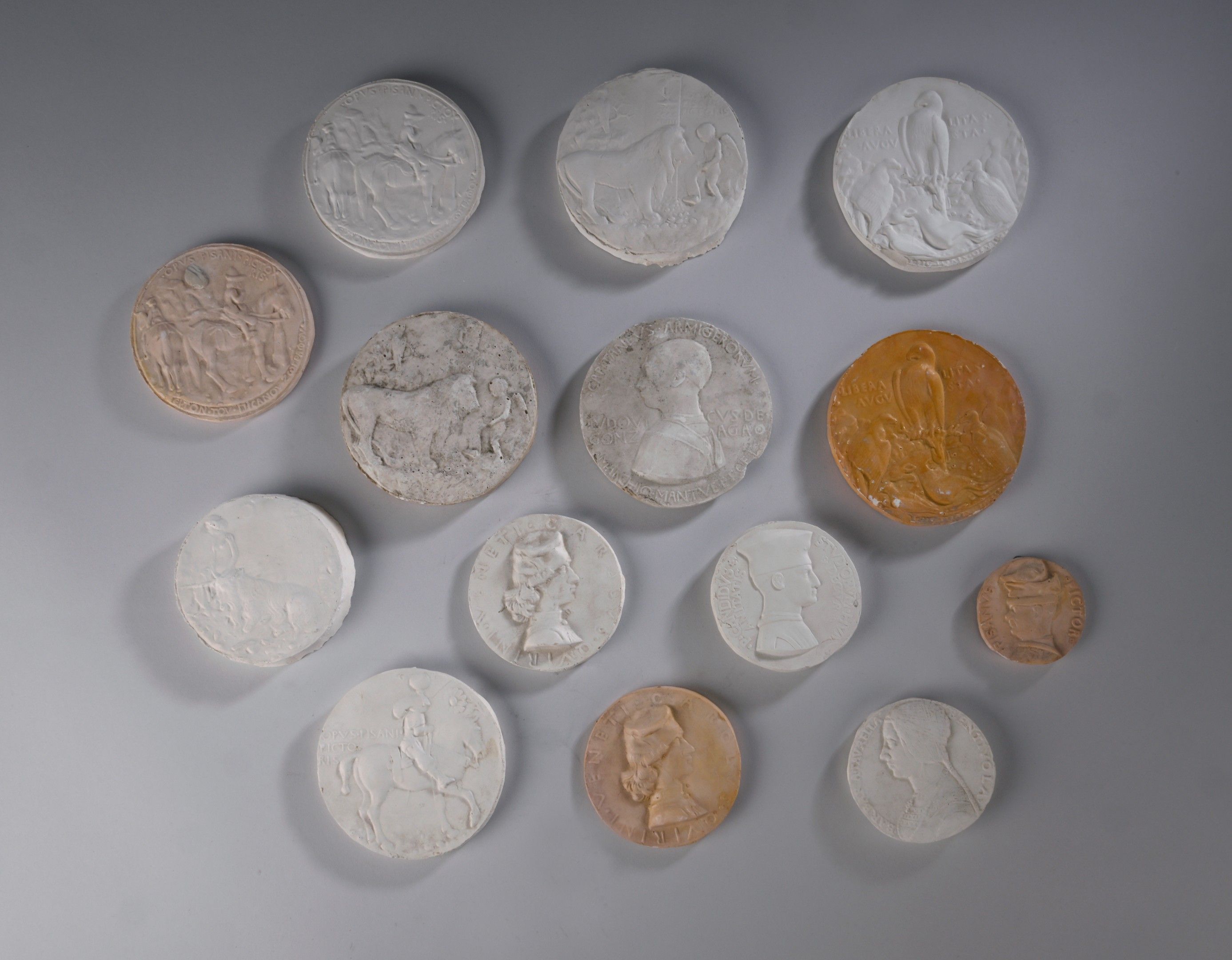 A set of fourteen plaster casts based on Renaissance medals, including some after Pisano.