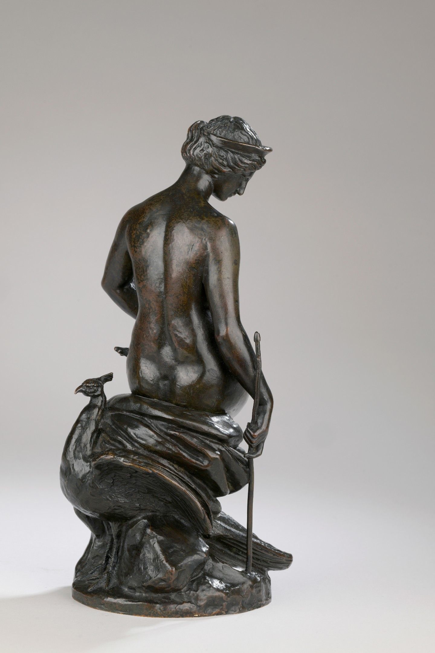 Along with Minerva and Venus, the figure of Juno is part of a group forming one of the nine-light candelabras of classical inspiration made to decorate the mantelpiece of the Duc de Montpensier around 1840. Around 1865, Antoine-Louis Barye made Juno an independent work. The isolated model was later published by the Peyrol foundry.