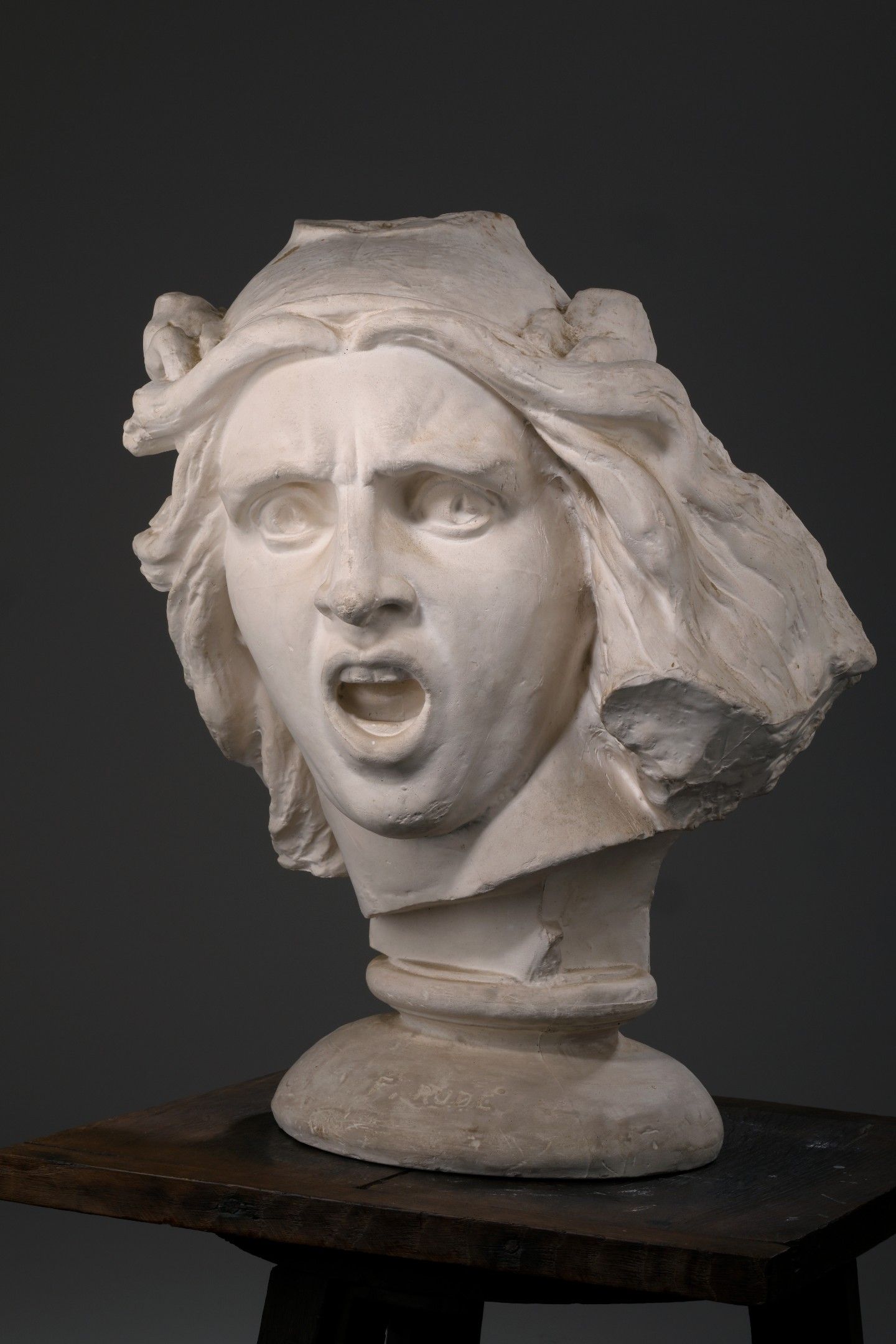 After François Rude (1784-1855) The genius of the fatherland known as La Marseillaise Plaster print Inscribed "F. RUDE" on the front H. 50 cm Dirt and dust Related work : -François Rude, Le génie de la patrie dit La "Marseillaise", 1834, stained plaster, signed "F. RUDE", H. 41 x W. 29 x D. 29.3 cm, Paris, Musée du Louvre, inv. RF 2199.