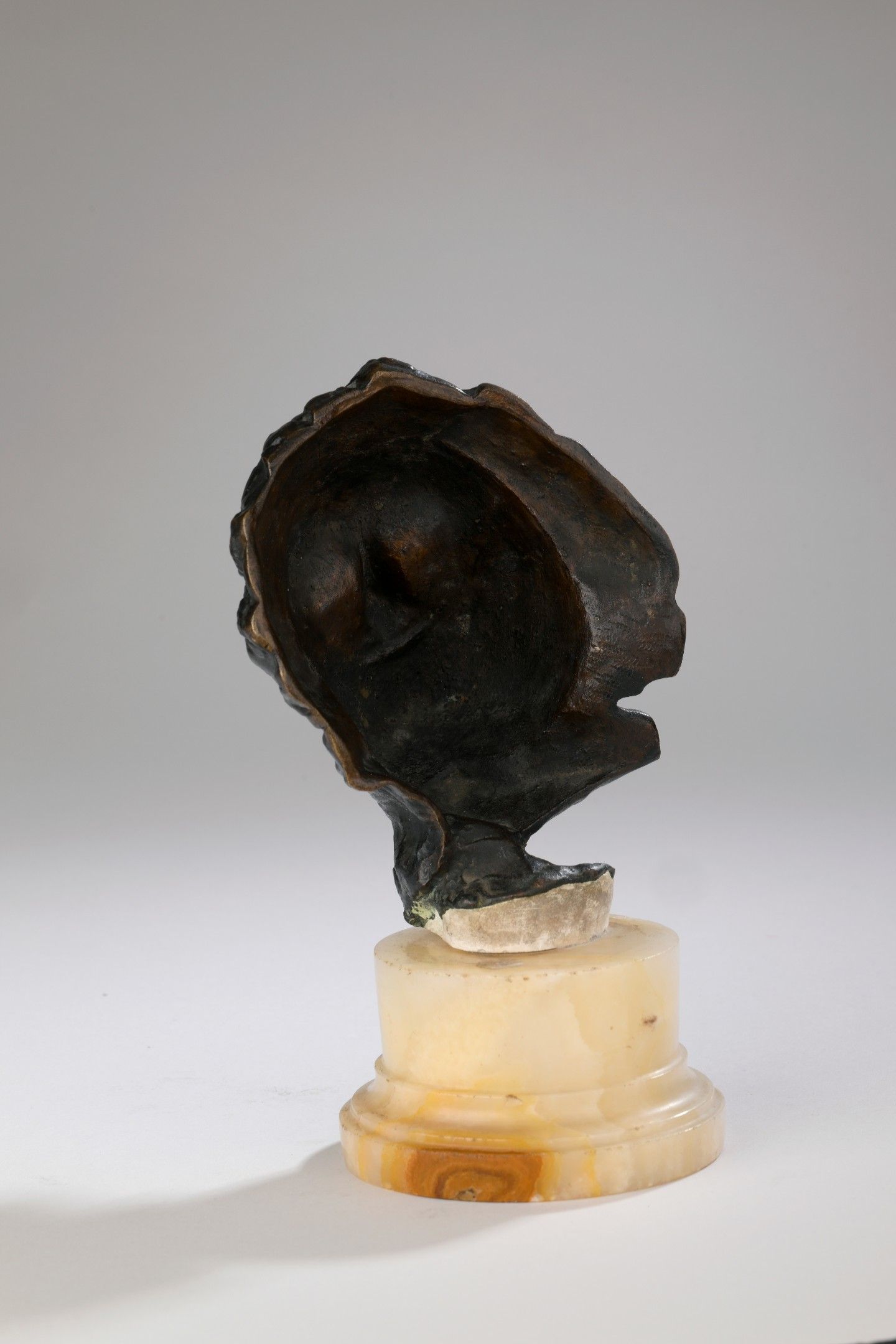 Auguste Griffoul was the son of Jean-Baptiste Griffoul who, for a time in partnership with François Rudier, worked almost exclusively for Rodin. Auguste, for his part, encountered financial difficulties and although he continued to work for Rodin at the end of the 1890s, he immigrated to the United States where his talent and skills enabled him to obtain numerous commissions. Our Minna mask is a rare and beautiful testimony to Rodin's artistic and benevolent relationship with his founders. The sculptor, who must have been attached to this intimate portrait, kept a copy and had himself photographed around 1900 in Meudon, at his work table, face to face with Minna's mask (Anonymous photo, around 1900, Paris, Musée Rodin, inv. Ph.721).