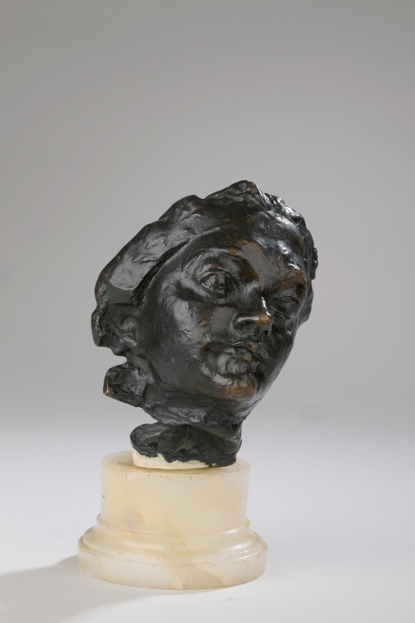The model for this Small Head with Snub Nose is undoubtedly Minna Schrader de Nyzot, whose history and identity are somewhat unclear. The most we know is that she also posed for Saint Marceaux and Raffaëlli. Rodin sculpted her portrait, with its gentle, peaceful expression, around 1880, as a continuation of his work on the small heads of the Damned that he intended to incorporate into the tympanum of the Gates of Hell. There are different versions of this small bronze, which is more like a mask.